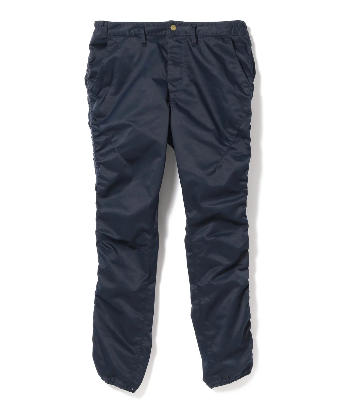 The line-up consists of a bespoke blue or grey colorway of this seasons offerings from nonnative which includes a wool tee and a tank top, an explorer puff vest, an explorer puff blouson, two sets of trousers and the cow suede trainer.