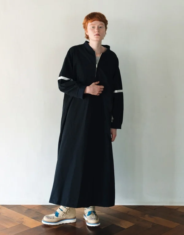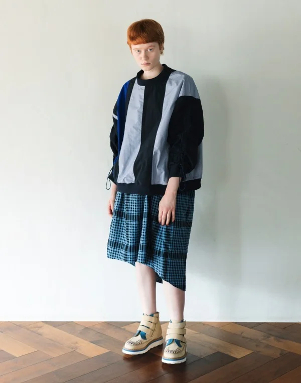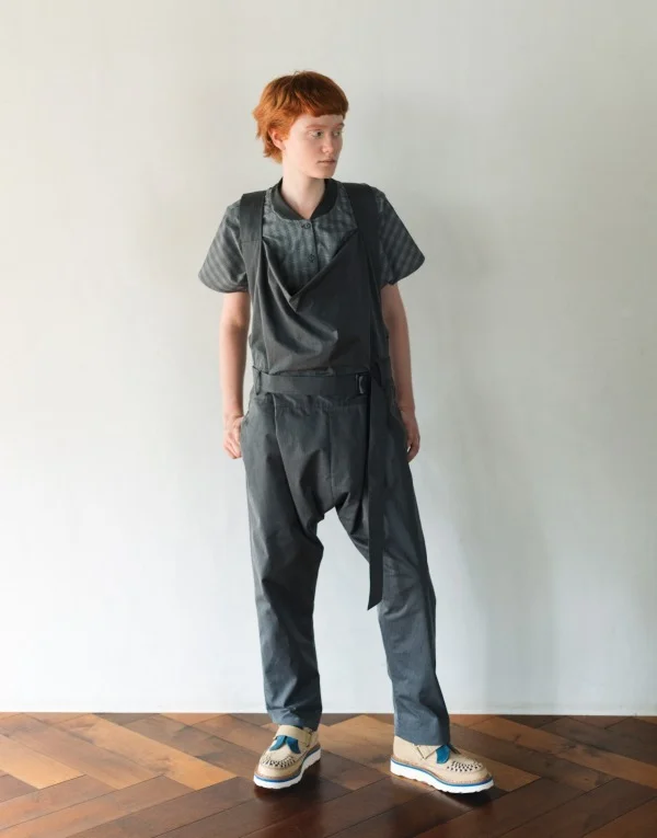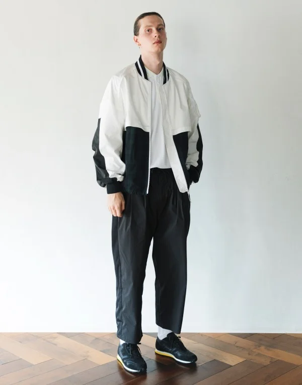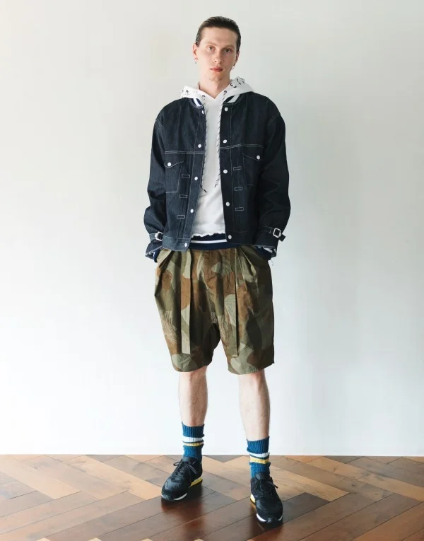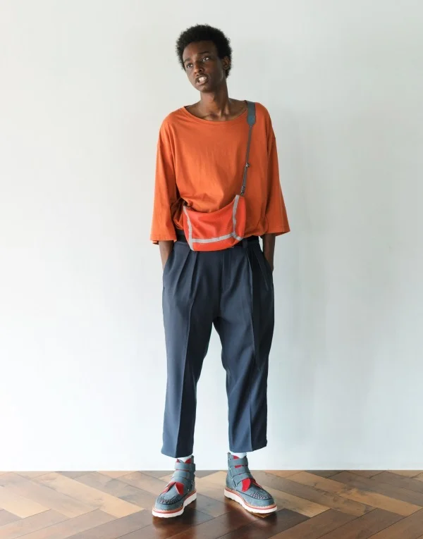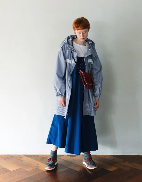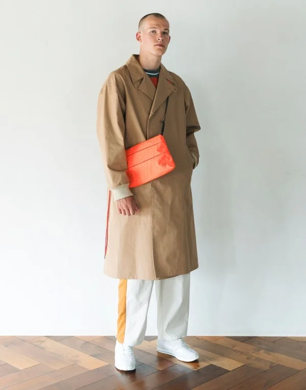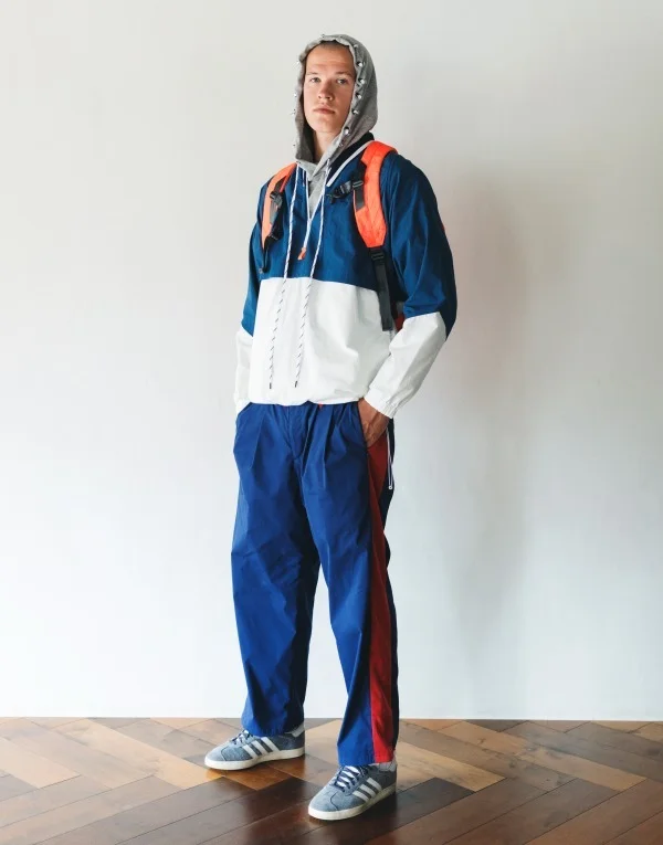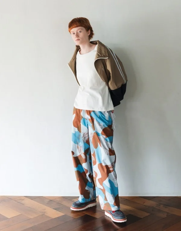The collection takes inspiration from various styles from active-wear to classic pieces while aiming to achieve convenience and comfort for every day wear. Colored-outseam pants mimicking track pants are paired with half-zip jackets and sweaters. On the opposite spectrum, models are fitted with plaid flannels or dresses, brightly colored camo patterns, and elegant full-length coats. Accessories showcased include shoulder bags, daypacks, and belts.