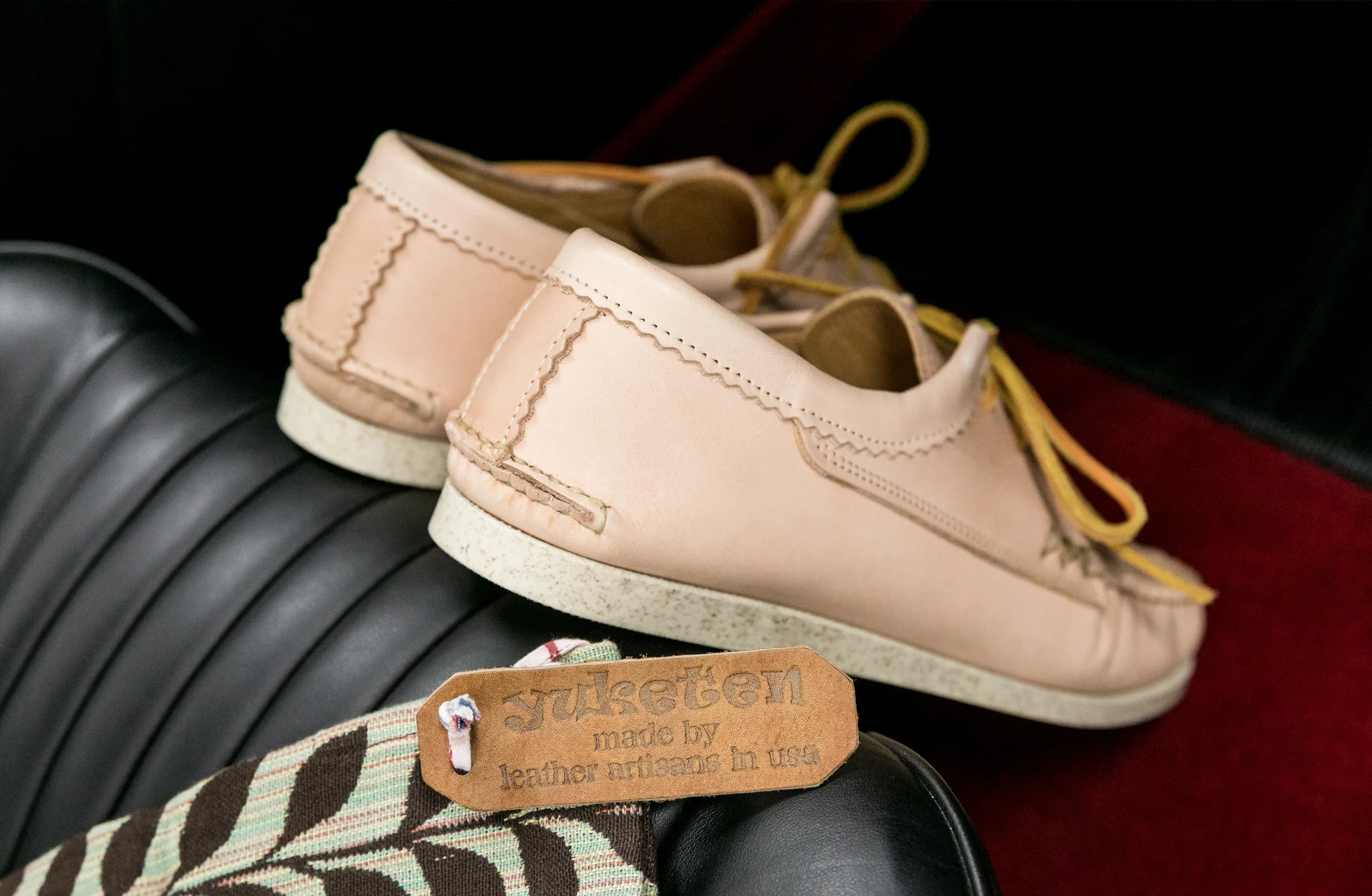 Yuketen is known for its relentless commitment to quality and timeless craftsmanship. The custom P.C. LM style is hand-made in USA from the best materials available. The shoe features a lace-in kiltie nestled under the signature blucher piece, a baseball stitch overcast, and a decoration on the heel seam cover, all of which come together elegantly in a classic moccasin style silhouette.