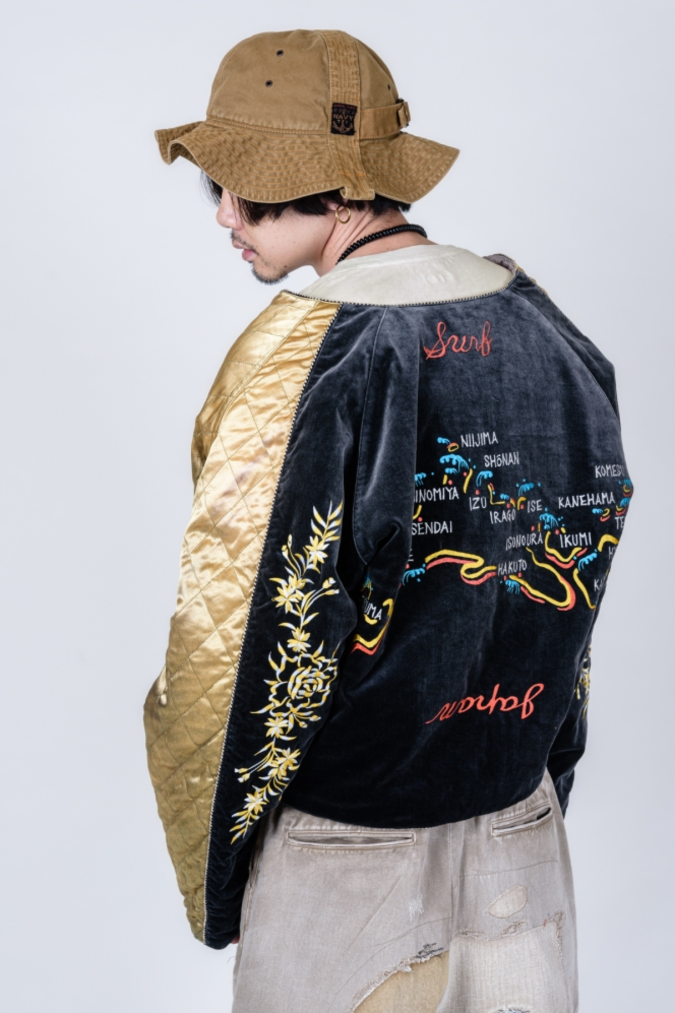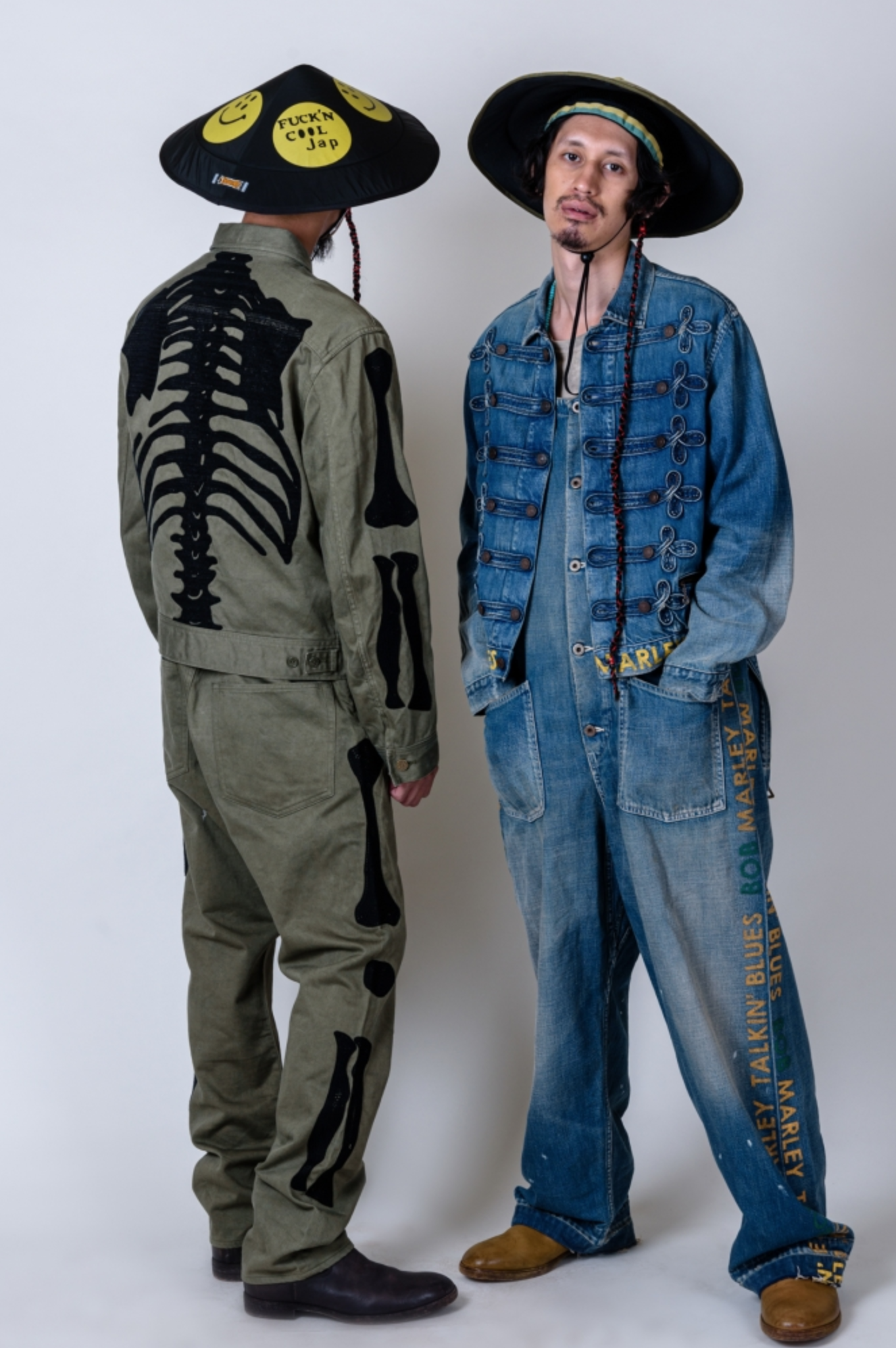 No signs of slowing down, and with popularity still yet to come close to its peak, the brand has amassed quite a few fans worldwide who enjoy some of their louder pieces. As such, they’ve brought different variations of their skeletal tops with the most daring being the aloha shirting -- in short and long-sleeve variations -- though the label also shows a bit of restraint with the same treatment translated over to distressed knit vests, pullovers, and a full trucker set. Elsewhere, graphics are most certainly at the charge with categories from outerwear to skirts affixing to a wide assortment of different themes. Robes are ornate in their silken constructions and elegant, gold-threaded embroideries while collar-removed souvenir jackets play on the once massively trending next to hanten coats that feature the same graphic concept but in what is effectively a more widespread display of various locations throughout Japan. Patchwork a la their Kountry line, bandana print tees, indigo-laden western tops, and so much more will be coming around in a few months, so sit tight and check out a few standouts from the range just below.