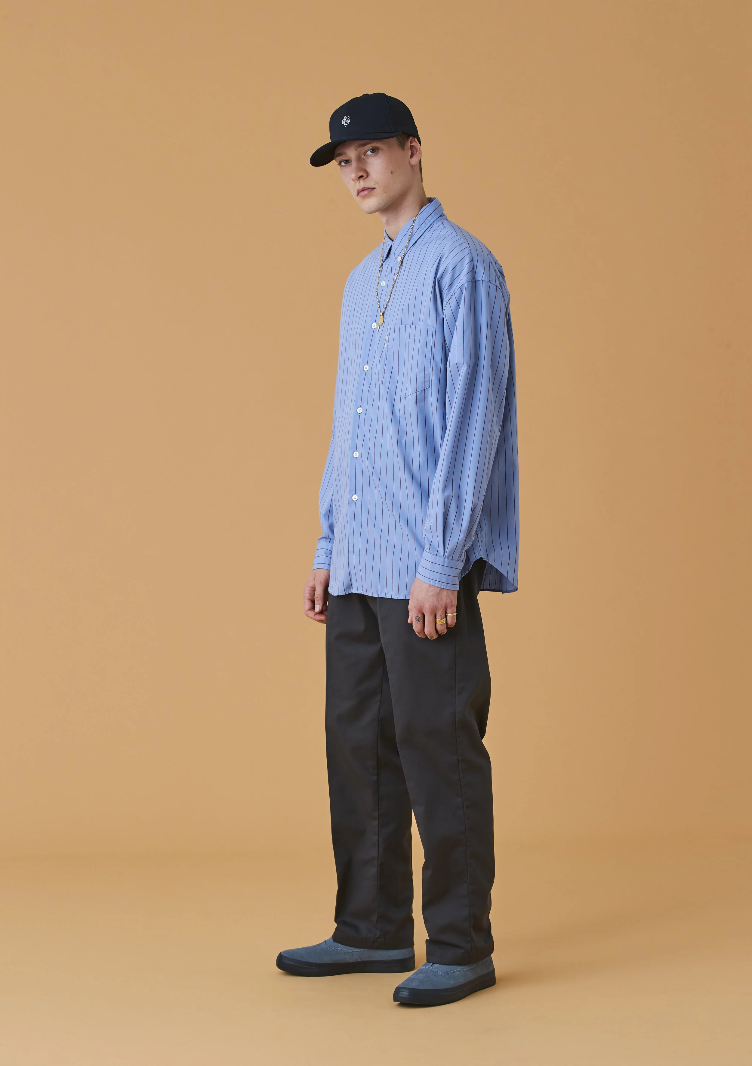 Boxy cuts weave their way throughout every category, dressing down an assortment of garments in unison with casual-leaning accents. A subtle take on the drug rug appropriates the unstylish piece found commonly in unsavory subcultures, while slacks, polos, and lapel donning coaches jackets tackle the opposite end of the spectrum. Often blending diverse influences, the forthcoming range is packed with even more variety, dosing out a wide array of knee length shorts and wide, cropped trousers alongside an assortment of tops. Graphic plays hit the latter — both long sleeve and short — by way of classic typography as well as more bold floral prints, stripes, and jacquard patterns. Collared shirting is heavily inspired by workwear in their overall look yet the casual air of a Guayabera finds its way in perfect contrast.