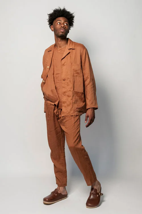 Focusing on olive, khaki, and navy colorways, Monitaly maintains its signature draped silhouettes among outerwear pieces such as the Military Smock and Voguar Coat. The layering Cincho Vest returns in an multiple colorways but is also revamped with patchwork and Navajo patterns to the front panel. To brighten the collection, pocket tees and crewneck sweaters are printed with 60-70’s rock-n-roll concert posters found in designer Yuki Matsuda’s home. Additionally, floral patterns on the Hawaiian-inspired Weekend Shirt and bright-orange camo patterns on the Short Sleeve Zip Neck Pullover can be paired with their Drop Crotch Shorts for a relaxed, Summer vibe.