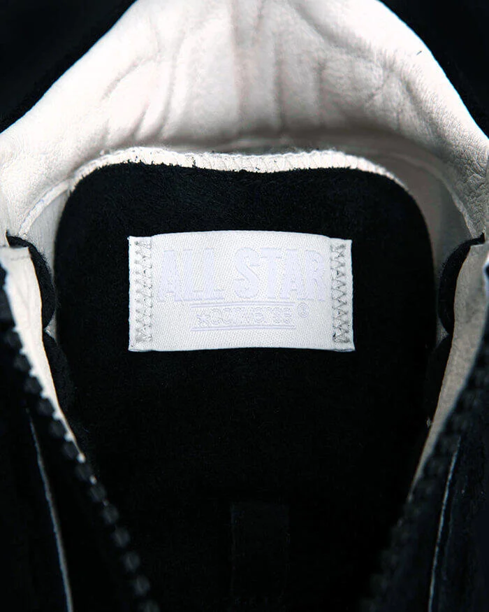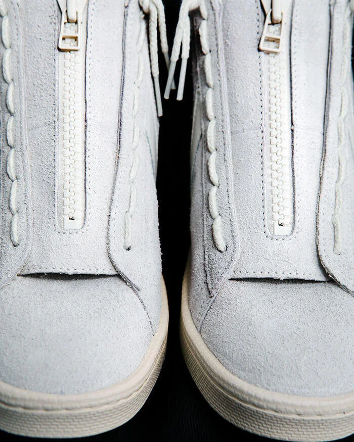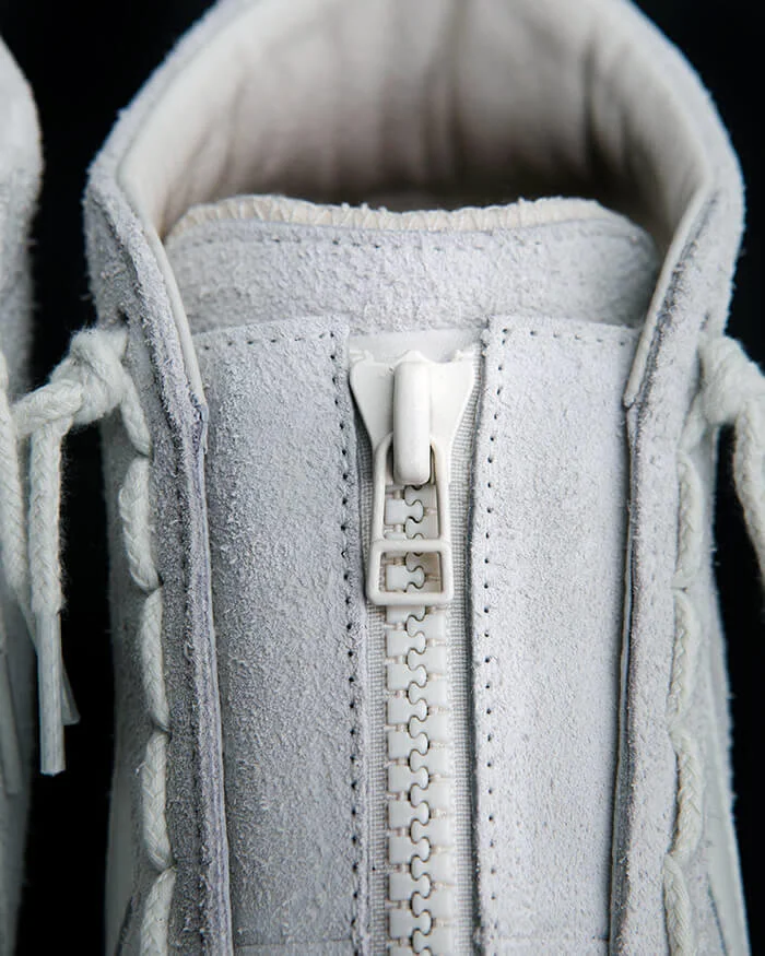 Originally designed to provide high ankle support and protection, the latest iteration features an upper constructed in nonnative’s signature long-grain hairy suede in both black and white colorways. The single-tone colorway follows down to the EVA midsole, rubber outsole, and trademark “Chevron & Star" logos. Even the military-inspired vertical zip fastening down the center of the tongue, which is a returning feature from previous models but coming in a VISLON® material for smoother fastening., retains the color palette. nonnative’s attention to detail and functionality is central to the design with an elastic strap applied to the forefoot allowing the shoes to be securely worn even without laces and the zipper open.