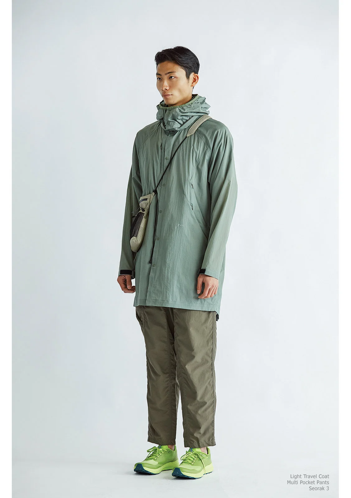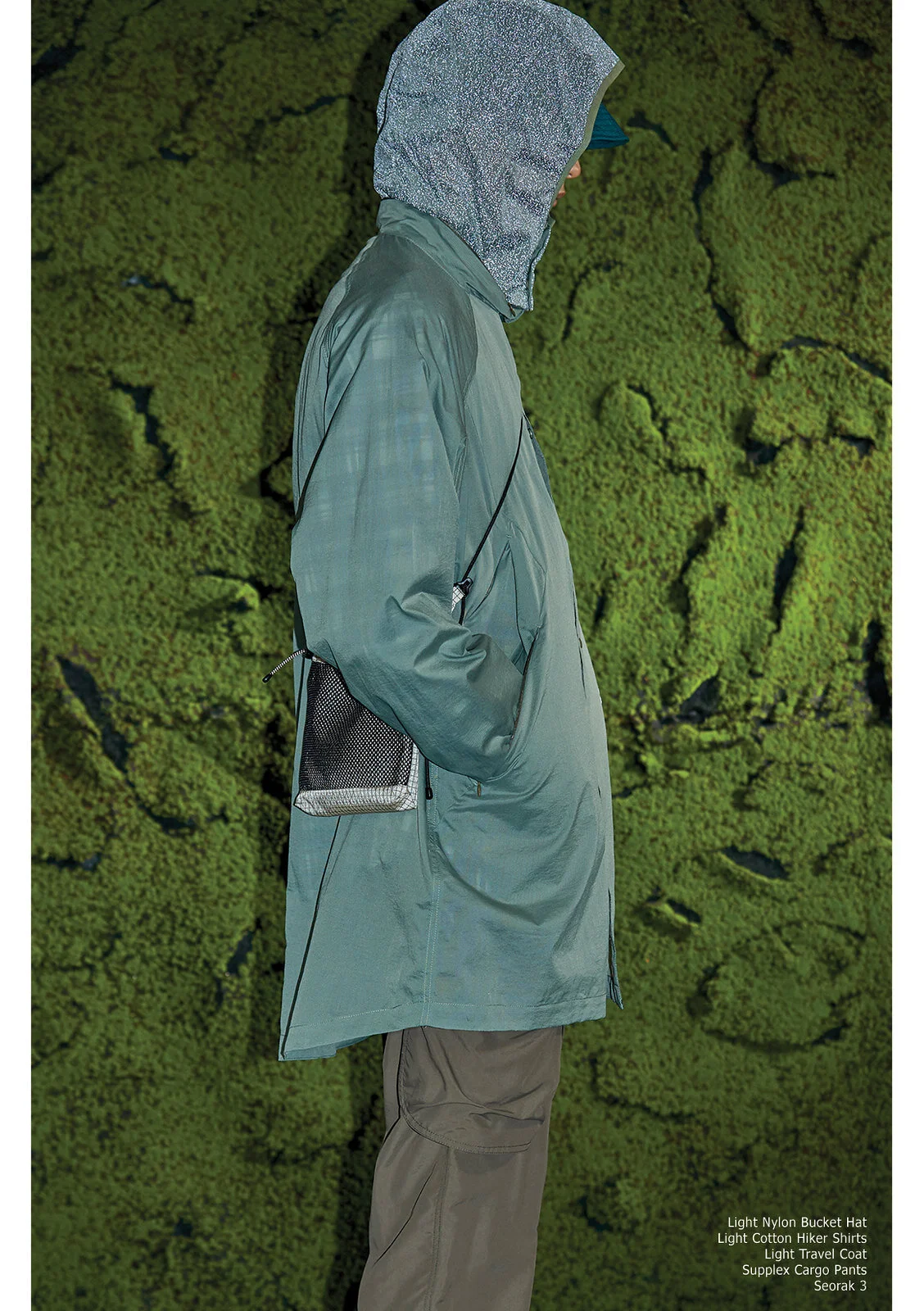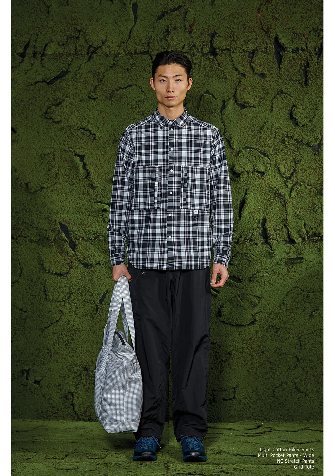 Always prioritizing functional and adaptable design over any fashion statement, CAYL updates existing silhouettes for the warmer weather conditions while introducing new lightweight styles. Alongside its usual Buckle Jacket, multi-pocketed lightweight jackets, and slightly transparent travel coat, flow coach jackets and half-zip pullovers provide extreme breathability while still equipped with hidden backpocket storage. Their take on everyday wear pieces such as the plaid cotton hiker shirt and nylon-cotton stretch pants allow for smooth transition between the city life and nature. Never shy of the zip aesthetic, the Korean brand continues to showcase their knee-zip cut off pants, now introduced in an aqua colorway. Their popular accessory line now features the Seorak 3, an easygoing shoulder bag, the Grid Tote, and the Baekdu 2, a 55L pack designed for long distance hiking in any condition.