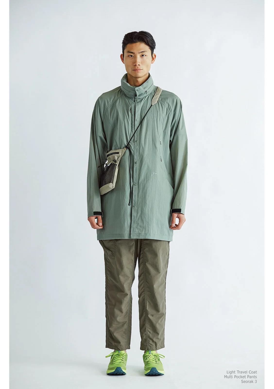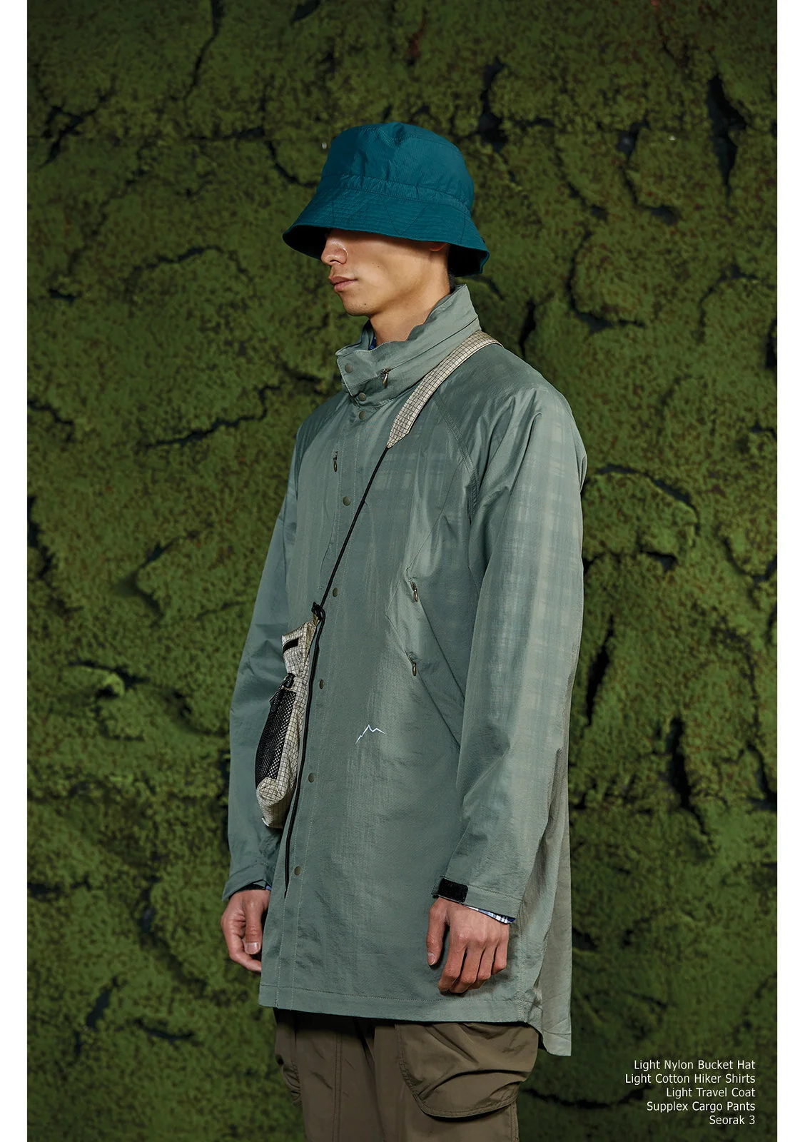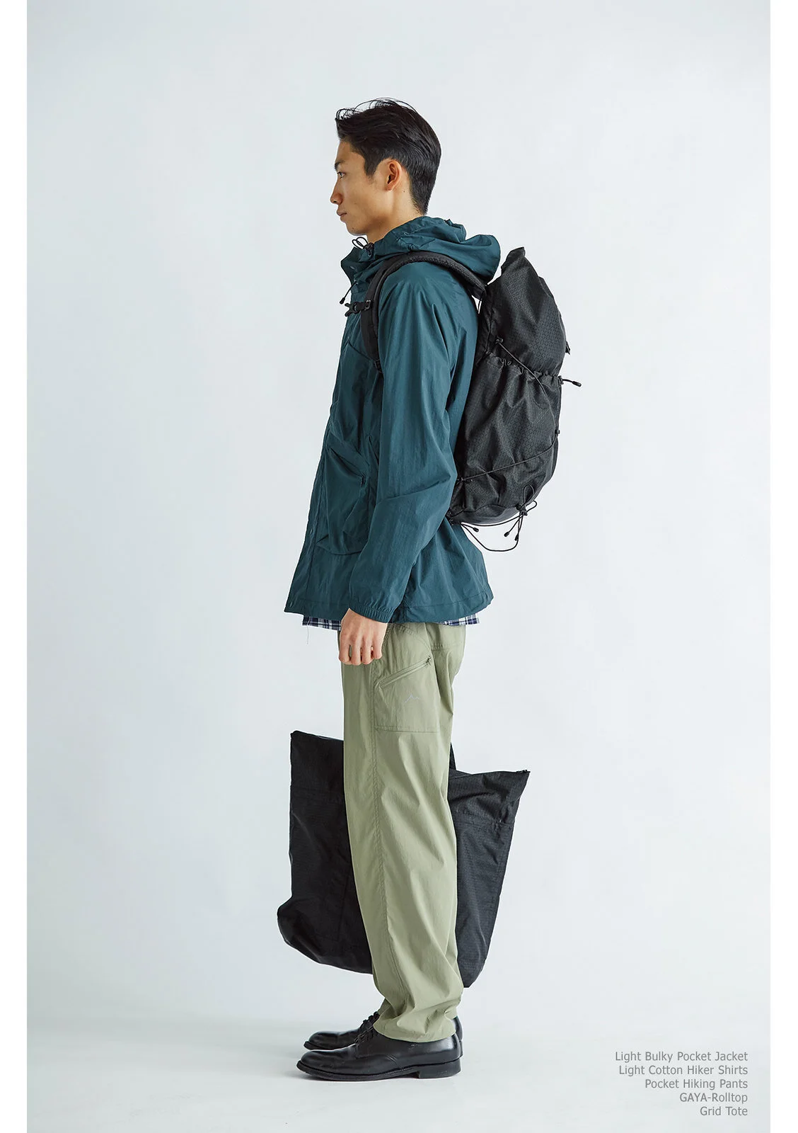 Always prioritizing functional and adaptable design over any fashion statement, CAYL updates existing silhouettes for the warmer weather conditions while introducing new lightweight styles. Alongside its usual Buckle Jacket, multi-pocketed lightweight jackets, and slightly transparent travel coat, flow coach jackets and half-zip pullovers provide extreme breathability while still equipped with hidden backpocket storage. Their take on everyday wear pieces such as the plaid cotton hiker shirt and nylon-cotton stretch pants allow for smooth transition between the city life and nature. Never shy of the zip aesthetic, the Korean brand continues to showcase their knee-zip cut off pants, now introduced in an aqua colorway. Their popular accessory line now features the Seorak 3, an easygoing shoulder bag, the Grid Tote, and the Baekdu 2, a 55L pack designed for long distance hiking in any condition.