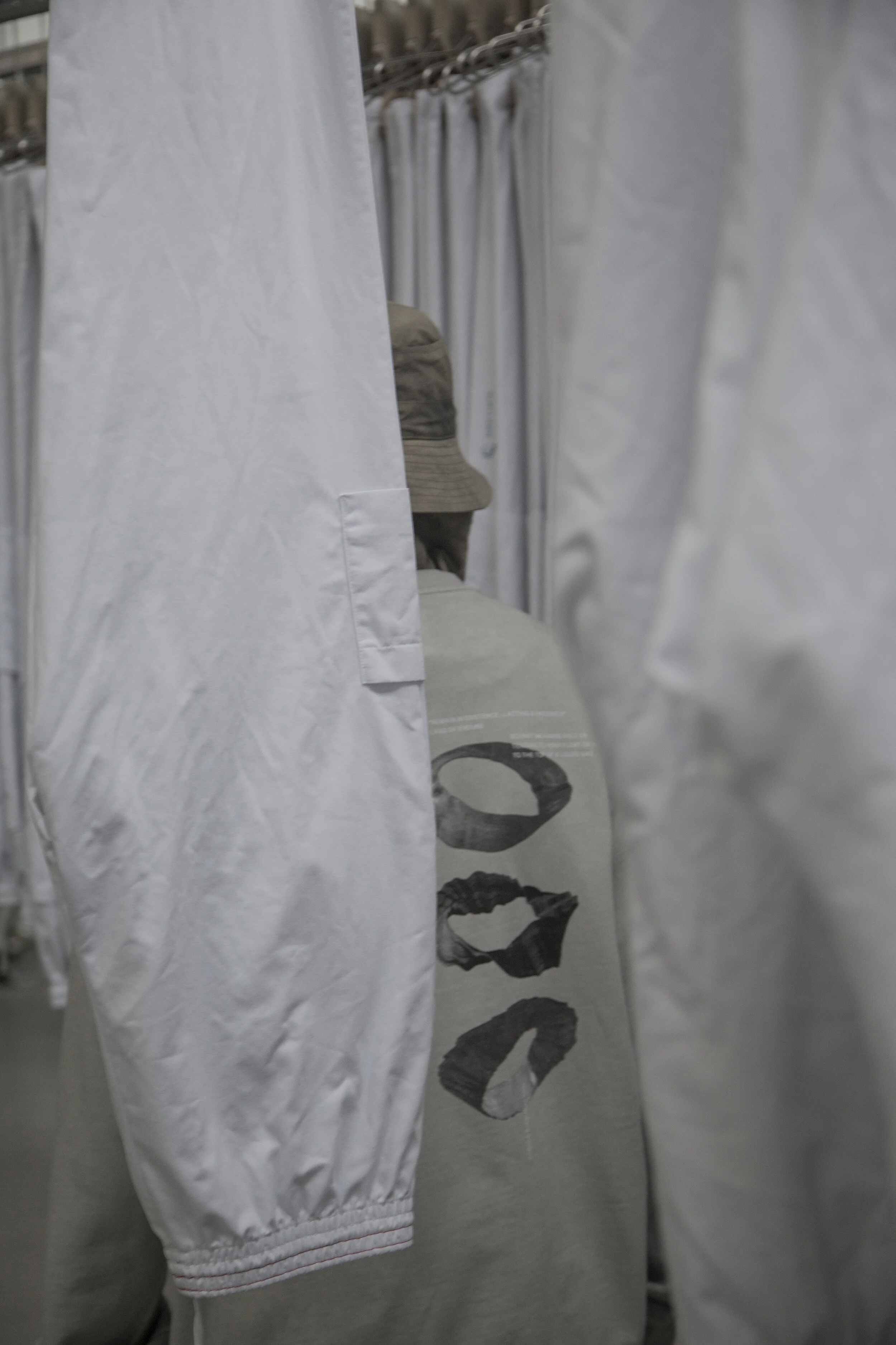 Entitled “COIL 50/1000,” the range explores a vast avenue of universal styles infused with a sense of personality that appears every so often by way of unique silhouettes, cuts, and fabrications. Interwoven throughout, there’s a large reliance on basics -- e.g. graphics tees, hoodies, etc. -- though each arrives tweaked in a manner unique to the overarching themes. Light cream bases as well as blacks and adjacent neutrals all refine the palette of such garments, creating a base for accenting strings, portraiture-heavy prints, and even layerable accessories. The latter, which takes the form of sling bags as well as vests, arm with compartments of varying size -- some making due with smaller, pocket-esque capacity while others opt for rucksack level utility. Moreover, outerwear seems to align near totally in aesthetic as the same tones and treatments stand out via various BDU-inspired jackets as well as thin yet weather resistant anoraks. Hats of bucket, beret, and cowl varieties then seamlessly pair quite well, rounding off the selection alongside the bottoms whose drop crotch shorts and skirts shapes are significantly more bold.