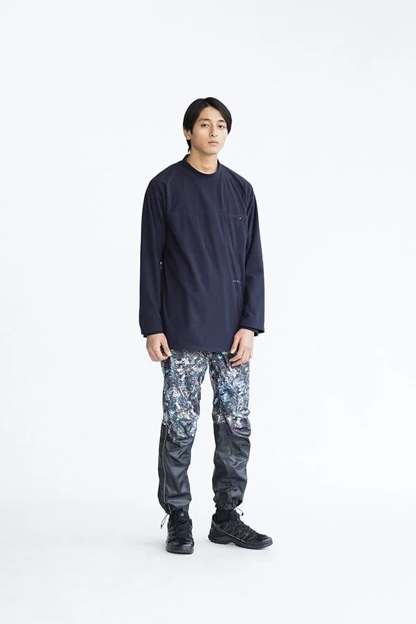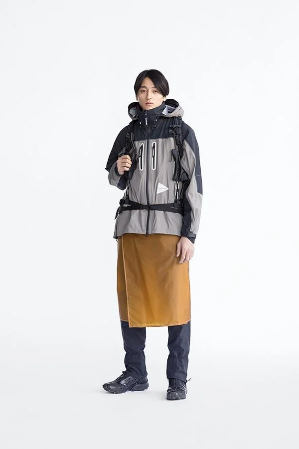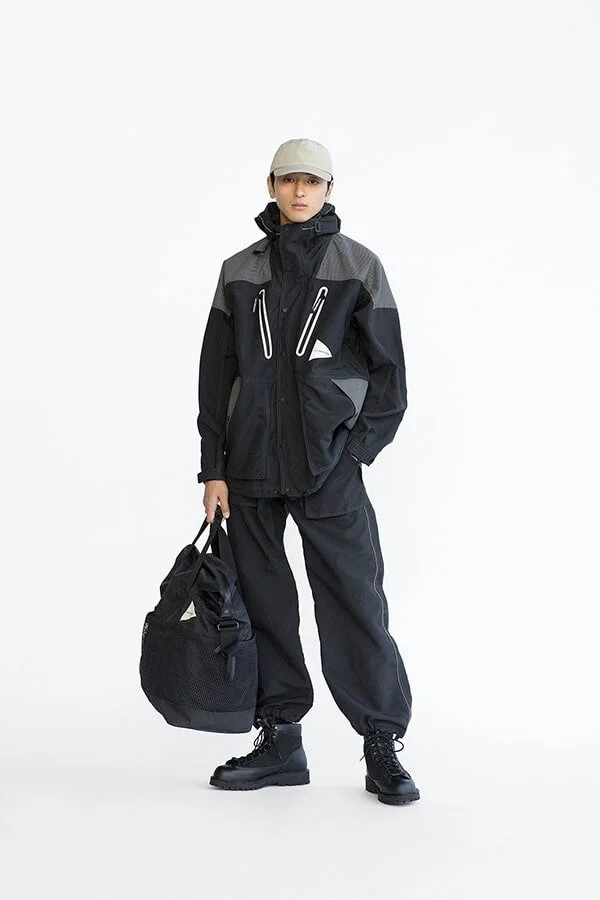 The lookbook styles showcase the garment’s functional nature and flexibility by weathering Winter blizzards and fitting in perfectly for urban adventures. The rugged yet classic Event Rain Jacket returns in additional two-block colorways, providing ultimate warmth and protection when paired with the Cordura Event Rain Gaiter. and wander’s fascination with Primaloft insulation return in multiple models including the reflective hooded puffer jacket and caps while fleece fabrics are utilized for base shirts, skirts, and trousers. The outdoor label continues to apply nature-based designs throughout the technical garments, drawing inspiration from camo patterns and stone prints. A highlight of the collection is the jacquard boa jacket with a subtle camo design featuring muted colorways while incorporating two large field pockets for storage. Their accessory line is stronger than ever with the X-Pac bag line being translated to 25L 3-way tote styles.