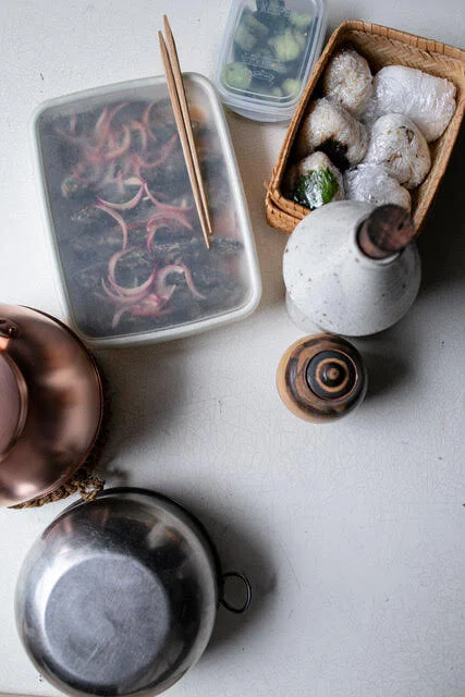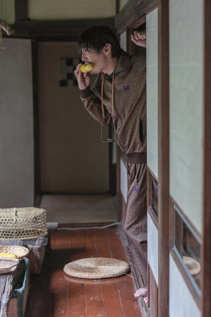 Mixing global labels with staple Japanese brands, the editorial emphasizes outfits and tools to be worn at home. COMOLI’s denim set is crafted from a soft, textured 11 oz. denim in contrast with the typical rugged denim seen in workwear. YSTRDY’s TMRRW similarly builds off of the vintage Americana theme with everyday styles such as striped pocket tees and relaxed fitting trousers elevated with soft materials. For the rainy weather, TEATORA’s packable hunter jacket is perfect for the humid weathers due to its lightweight, wrinkle-resistant nylon fabric while and wander’s umbrella is the perfect carry around. On the homegoods side, COVERCHORD highlights everyday use items such as copper kettles by pavilion, pottery by Futoshi Yamashita, and paper fans by Kurikawa Shoten.