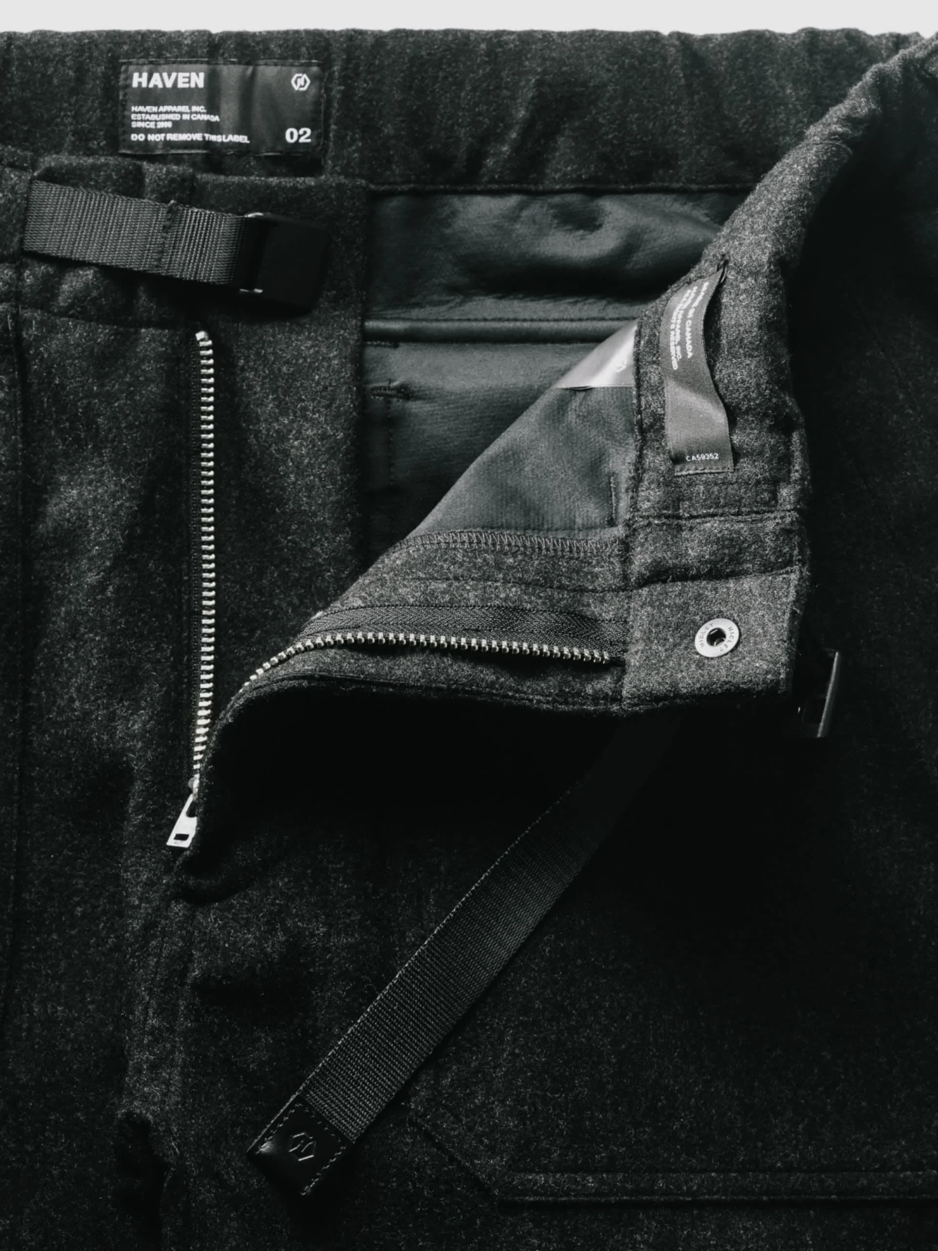 HAVEN brings forth the Solo Pants, Chamber Parka, Field Cap and Field Hat, all of which are constructed from Loro Piana’s Storm System® 3L fabric technology - an advanced 3-layer fabric system that is embedded with natural fibers whilst boasting waterproof, breathable and windproof properties that are often synonymous with technical materials like GORE-TEX PRO. Composed of a three-layer structure, the exterior layer is made from premium Italian Capolovaro wool which sits atop a waterproof and windproof membrane to keep the wearer warm and dry. For comfort, the material is lined with a microfiber jersey that offers a soft, next-to-skin feel.