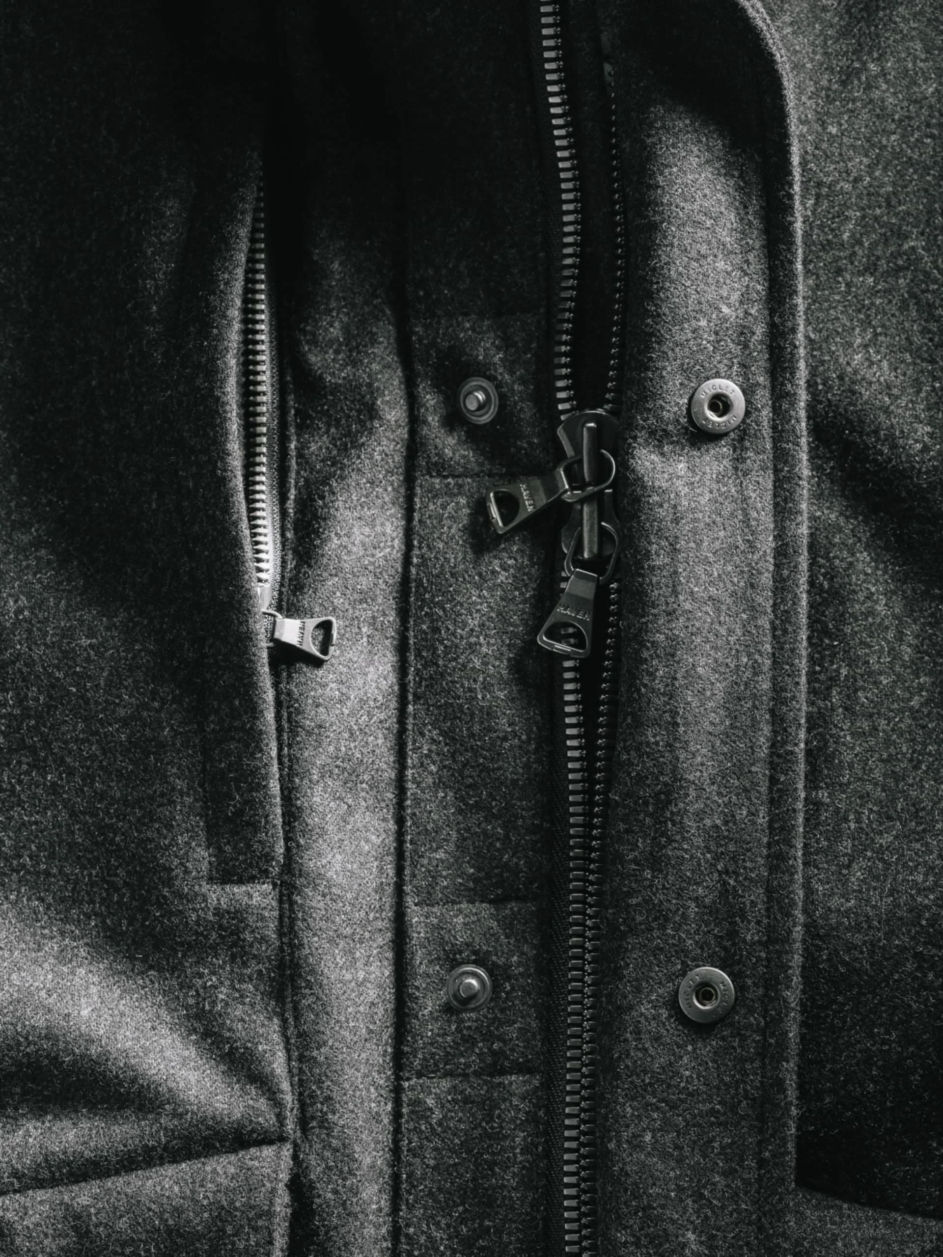 One of the garments boasting all the properties that the material provides is HAVEN’s ‘Chamber Parka’, a mid-length outerwear style with two vertical zip chest pockets and two lower patch pockets with interior handwarmers. Finishing touches include a storm flap, stowable hood, adjustable waist and cuffs.