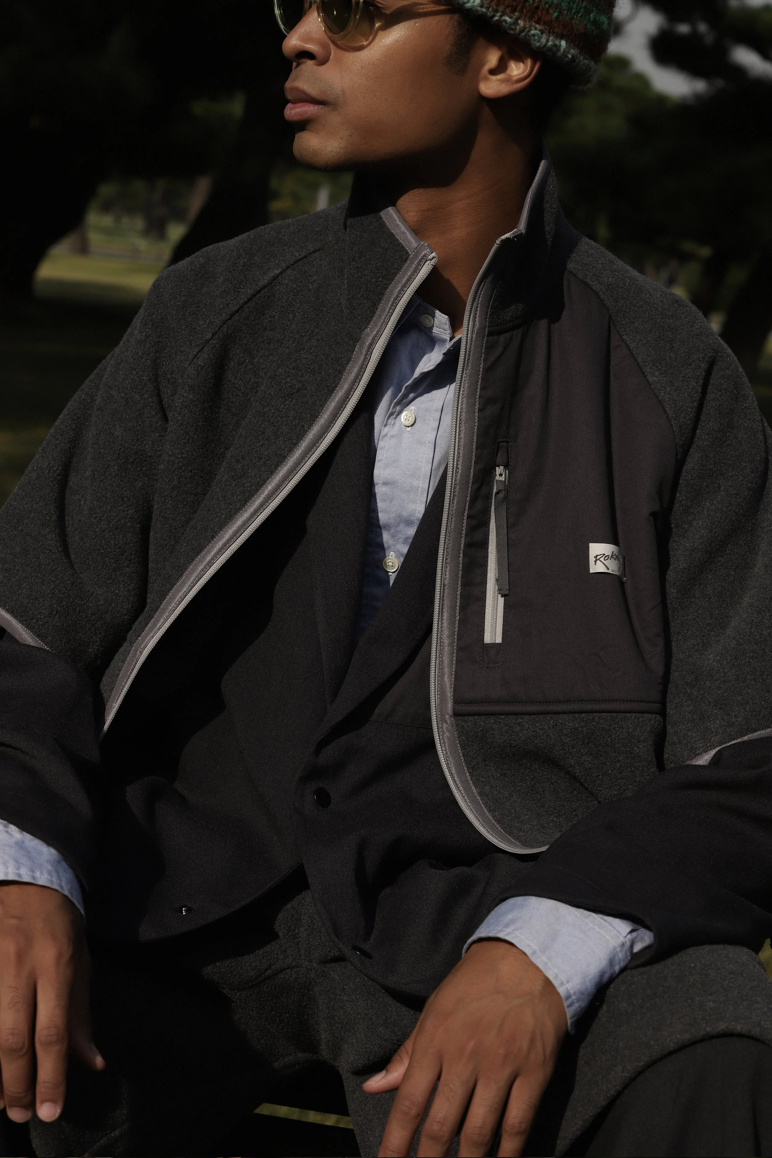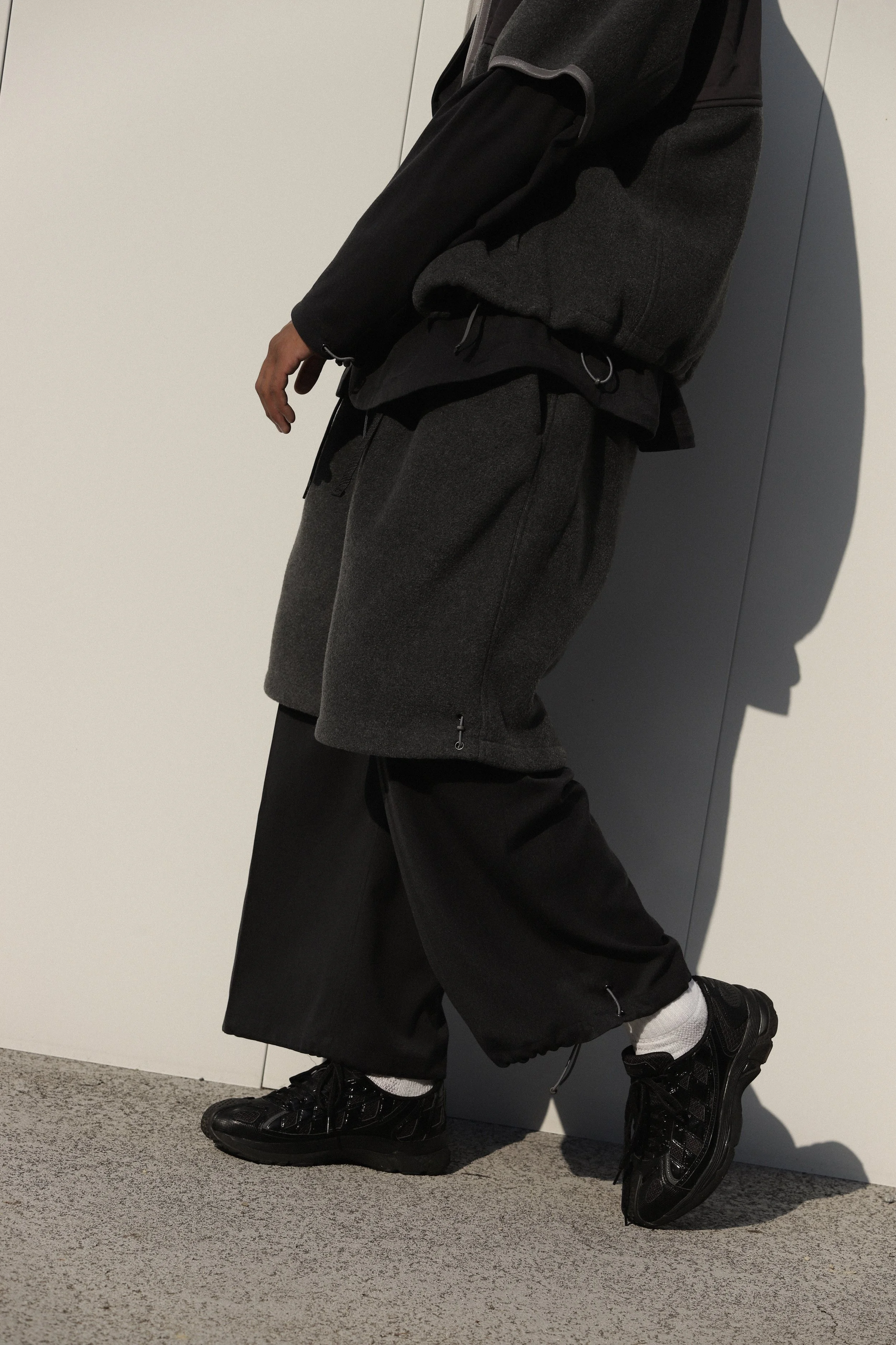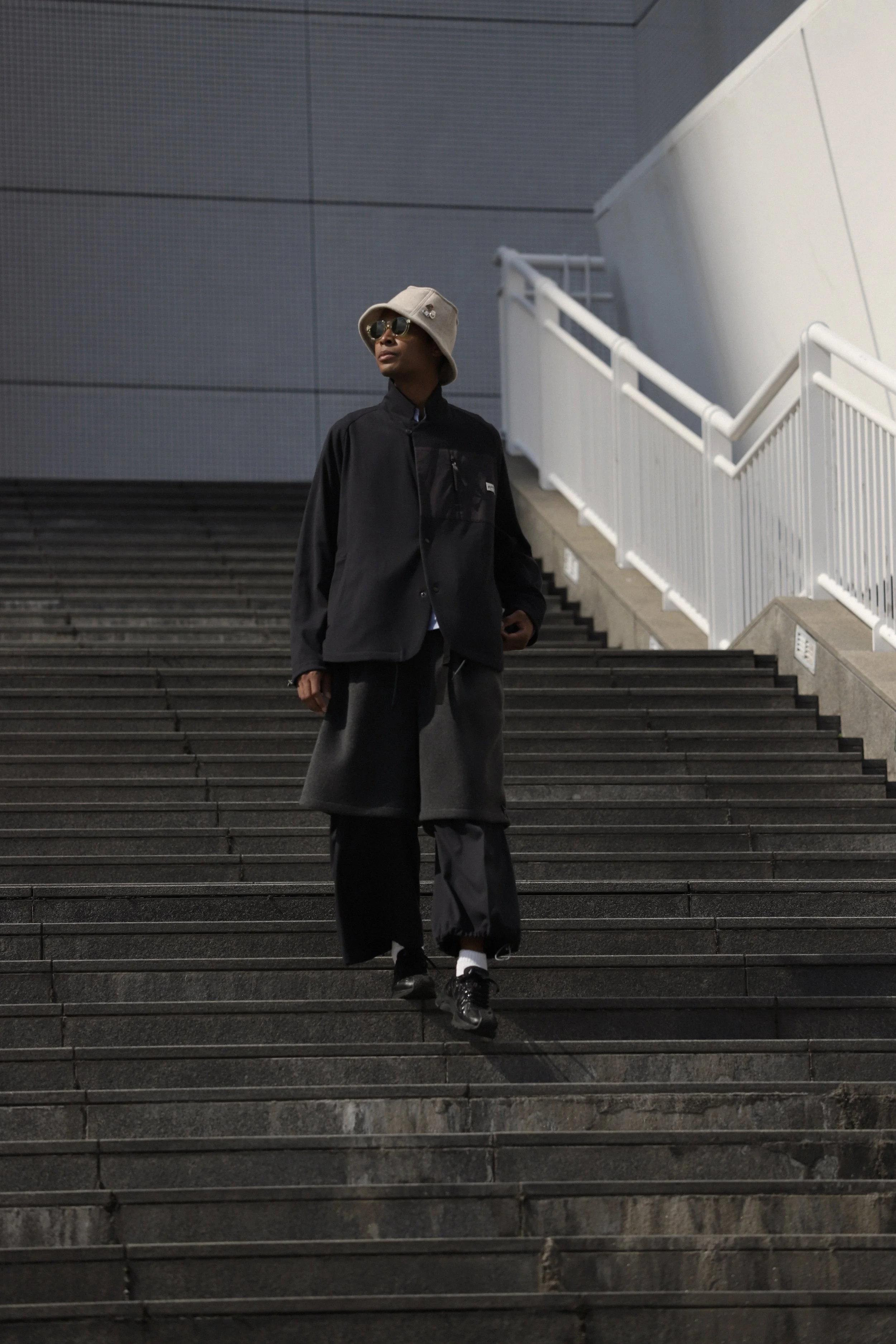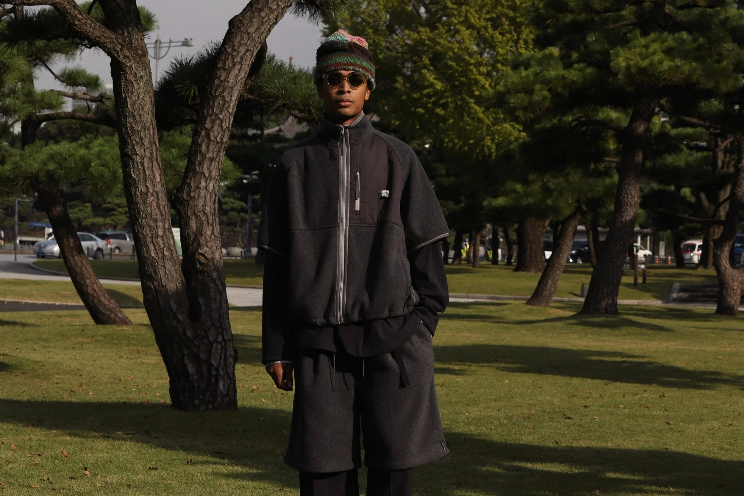 The line has been designed with ROKX’s original climbing wear silhouettes in mind through Yuthanan’s easily identified approach. The resulting pieces are complemented by grey tones synonymous with Tokyo’s concrete metropolis dressed in typical oversized silhouettes. Overall, there are 5 pieces within the collection including the Fleece Blouson, Fleece Shorts, French Mountain Jacket and French Mountain Pants. The pieces all play on the idea of layering; for example, it is recommended that the wearer couples the French Mountain Pants with the Fleece Shorts simultaneously creating volume and adding protection, the same goes for the tops. In keeping with the outdoor side of things, some of the pieces incorporate Polartec fleece in their construction which is excellent in retaining heat whilst maintaining the heritage of ROKX.
