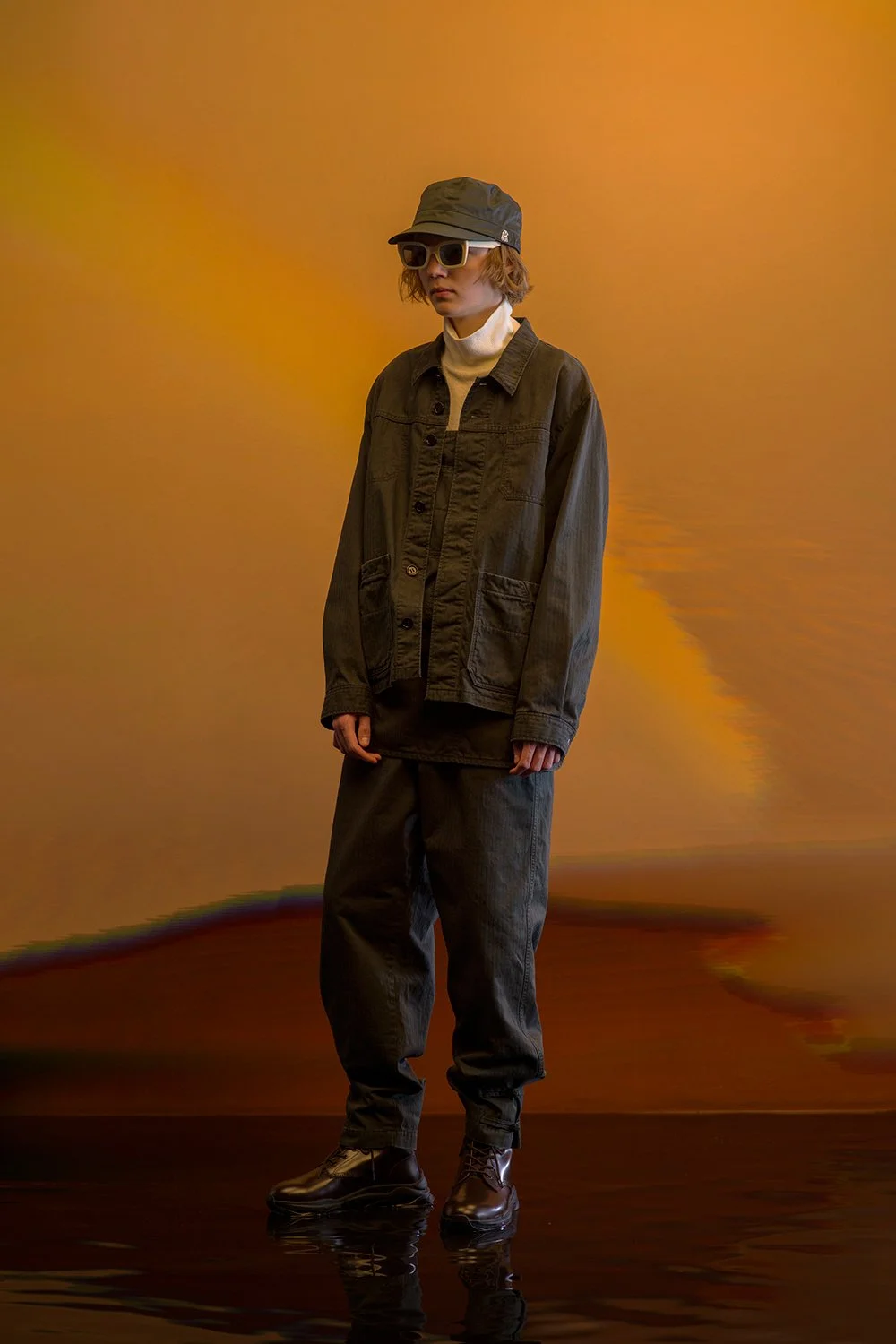 For Spring/Summer ‘23, Jun has looked to the British rock band, Pink Floyd, and their ‘Dark Side of the Moon’ album as well as motifs from Wish You Were Here for some graphic inspiration which has been executed onto a number of outerwear styles like a denim trucker, bomber jacket, fishtail parka and half-sleeve poncho.