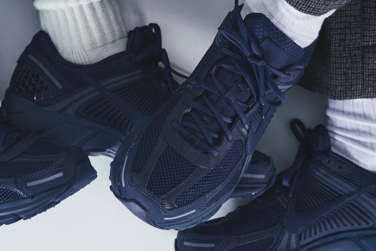 SOPHNET. has put its own twist on Gloverall’s Monty Duffle Coat which is made using cashmere wool from LANIFICIO FRATELLI BACCI and takes luxury outerwear to the next level. The snap buttons have been replaced with toggles that are more in line with the traditional Duffle silhouette. Besides its all-navy makeover, the Vomero 5 retains its original character and structure. The upper is made of a blend of synthetic leather and perforated mesh which provides durability and a locked-in feel. For added comfort, the Vomero 5 uses Zoom Air technology and cushioned foam in the midsole. Both the Duffle Coat and Vomero 5 are a testament to the effect SOPHNET. can have with a few subtle tweaks.