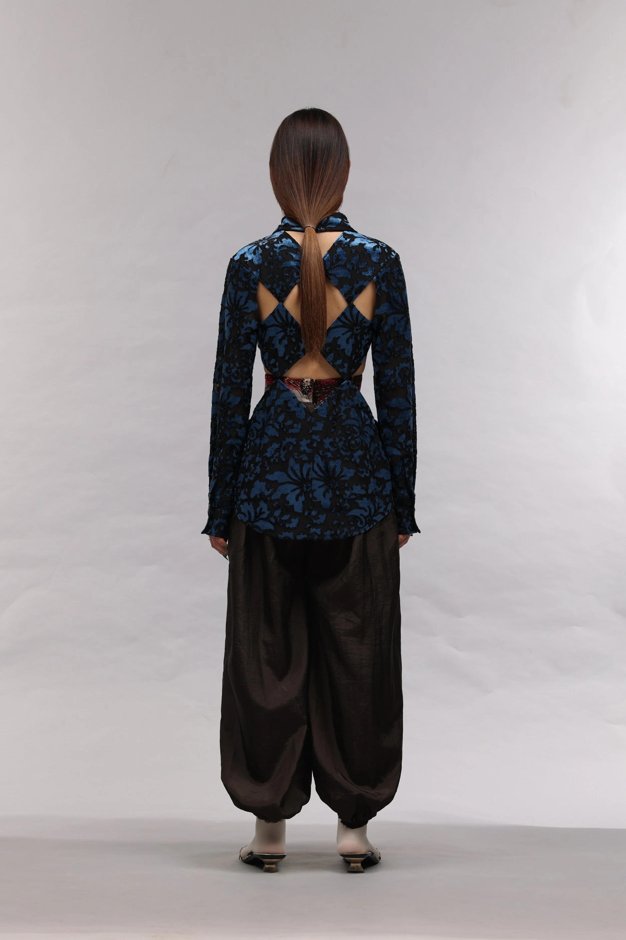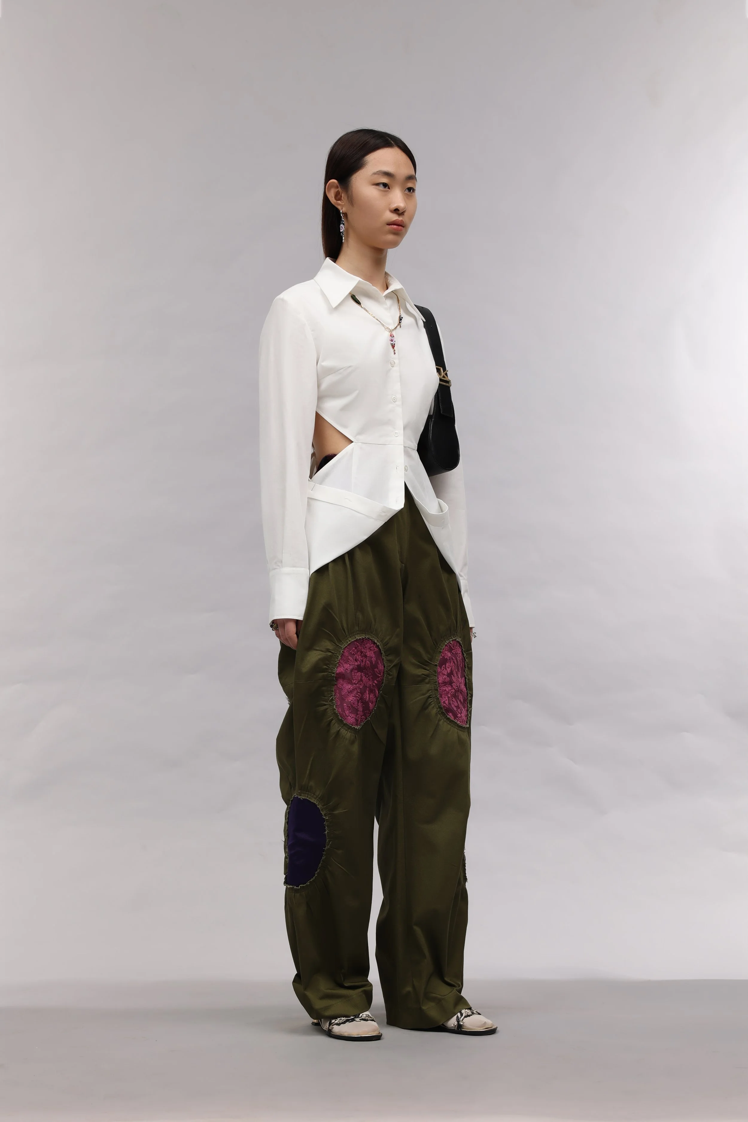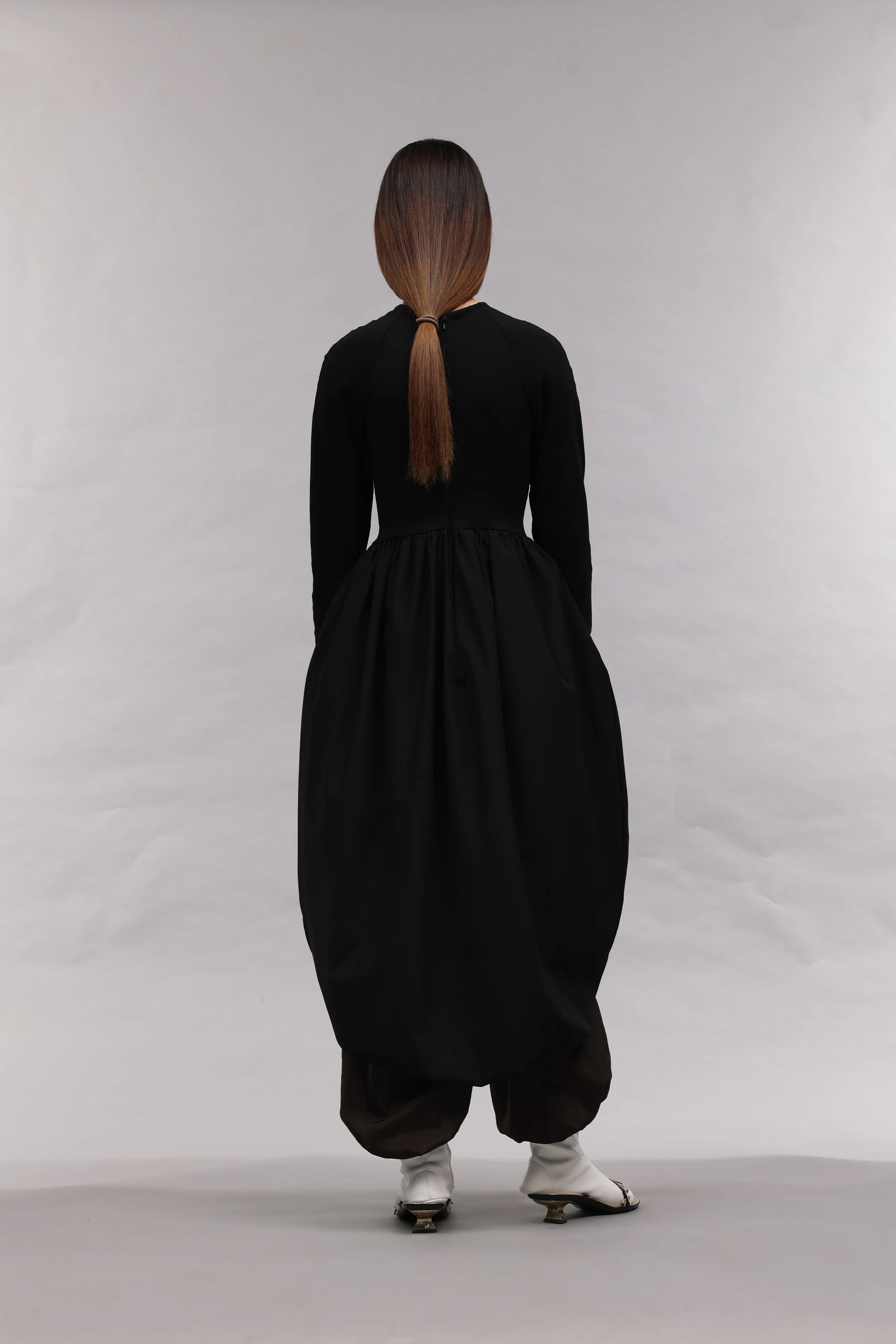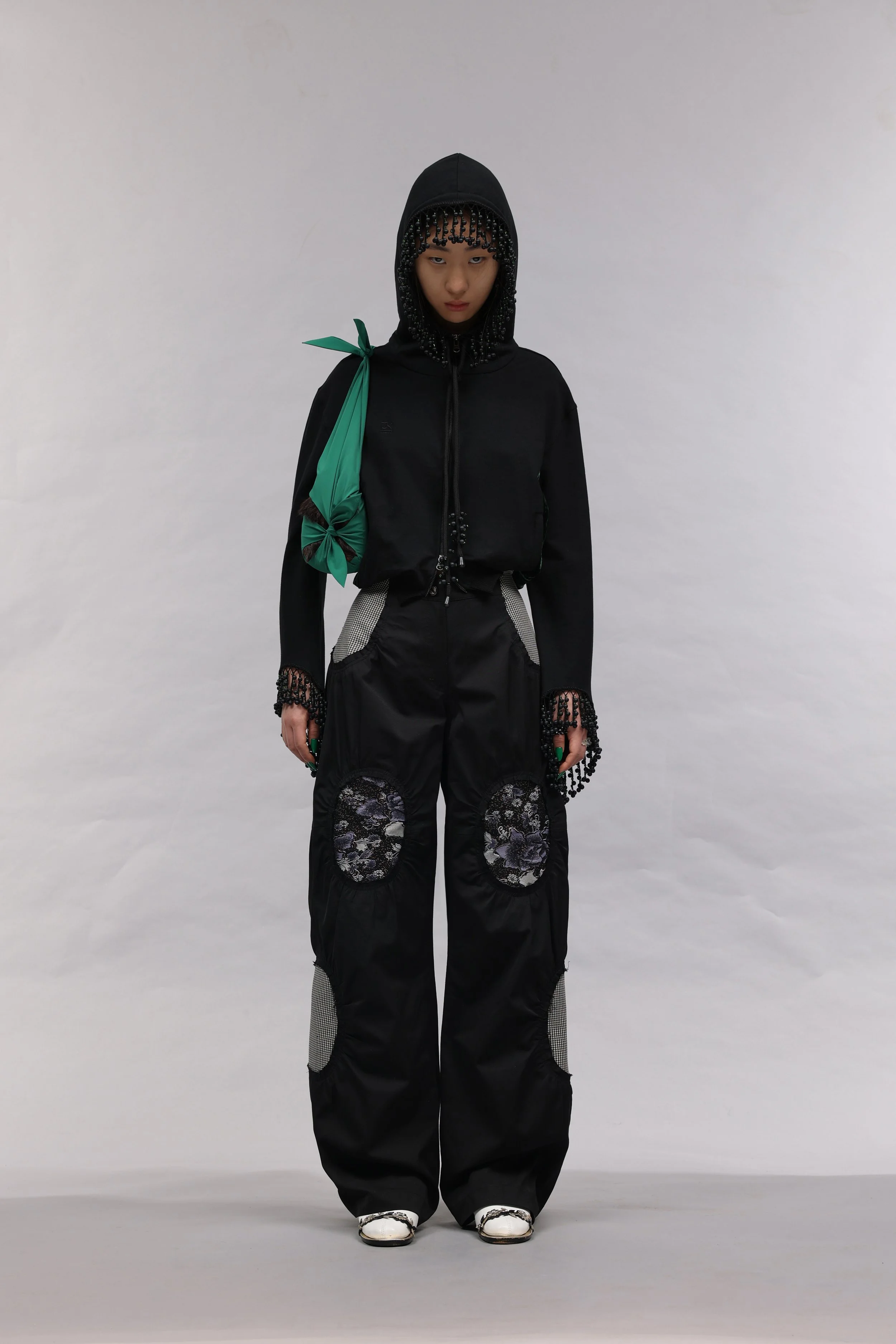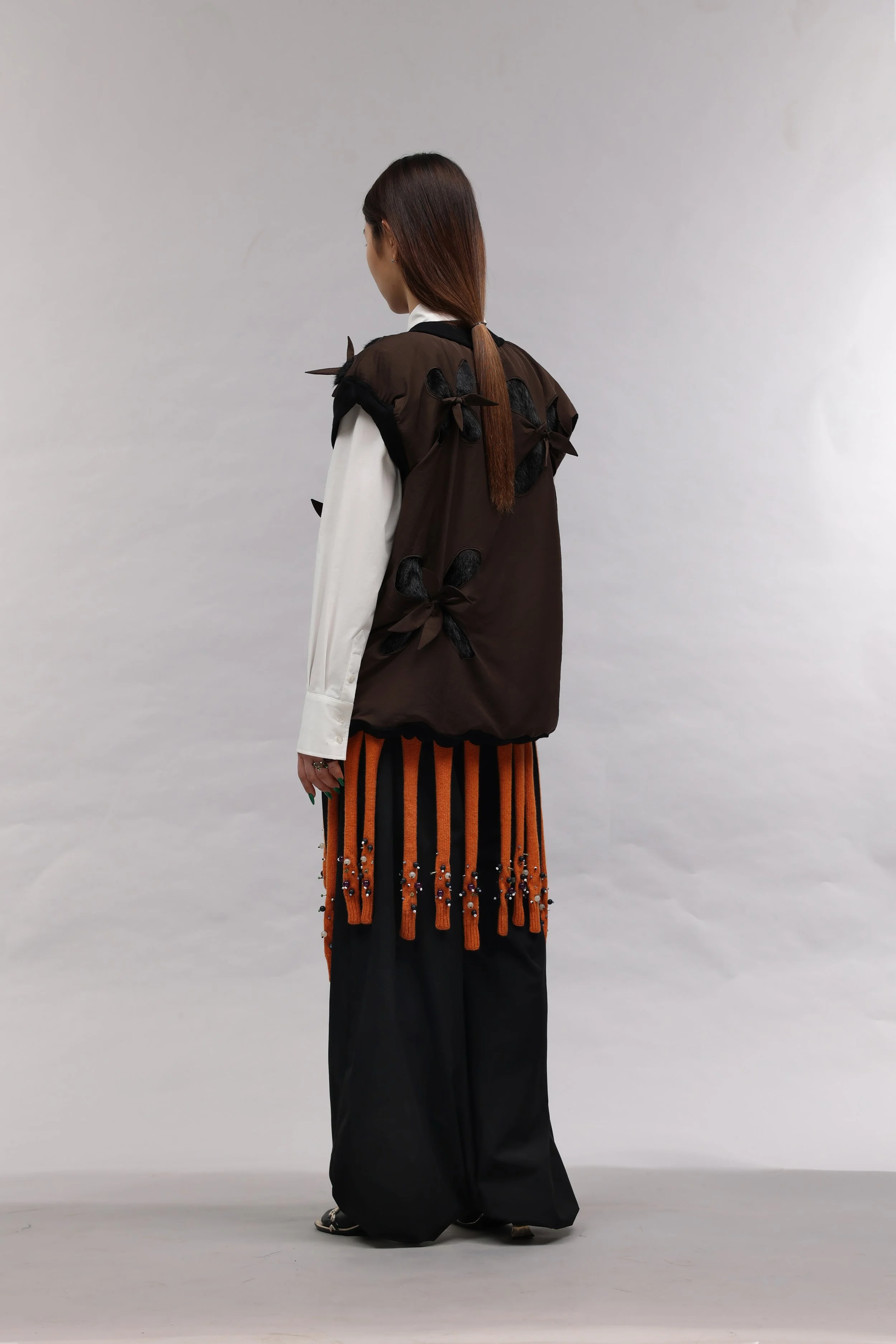 As a Korean born in Uzbekistan, J.Kim’s design work is a tool to establish her own design language by exploring her unique identity in a way that the industry has yet to be exposed to. Drawing on cultural references from Uzbekistan and Korea, the garments reference traditional uniforms and lifestyles to architecture and local traditions.