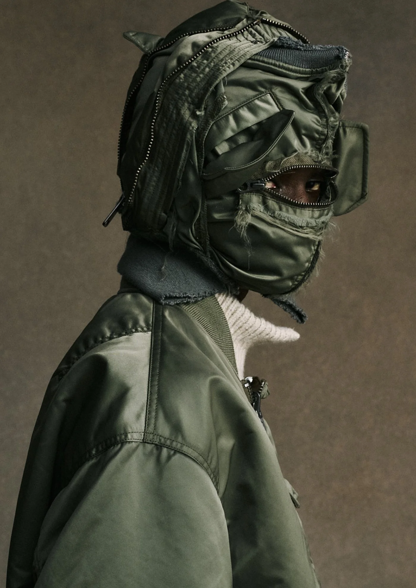 BAL has prepared an eclectic collection that is replete with a diverse array of garment styles and inspirations. It features several outerwear styles, from military-inspired liners and shell jackets to zip-up blousons and cropped puffer jackets. Legwear comes in various shapes and sizes, with select styles including a double knee variant and a suitably Autumnal plaid pair to match the half-zip hoodie. Aside from jackets and bottoms, the remainder of the collection is rounded off with accessories, such as knitwear, tops, and headwear, to name a few. In addition to the mainline, notable collaborations include technical outerwear by MARMOT and sports jerseys by Umbro. In the lookbook, the styling plays with the idea of obscuring the model's faces in different ways, from balaclavas to headpieces.