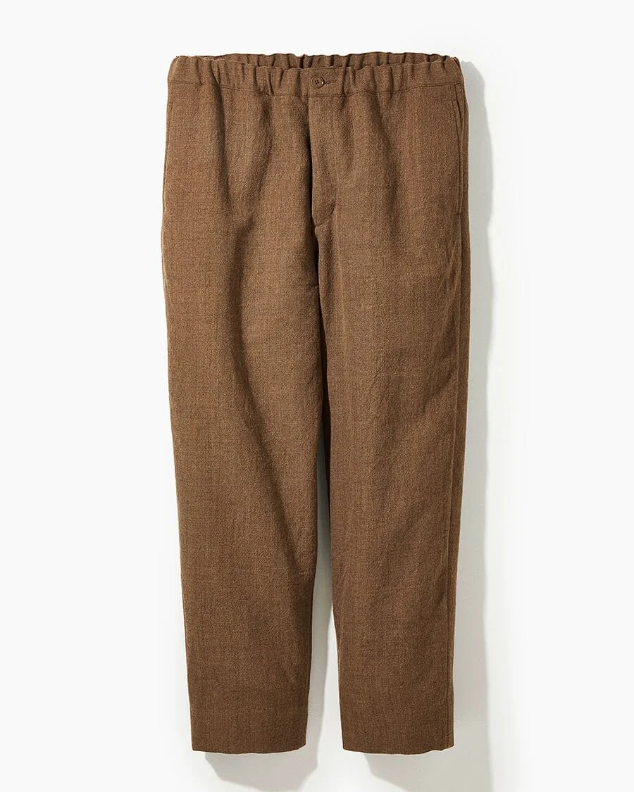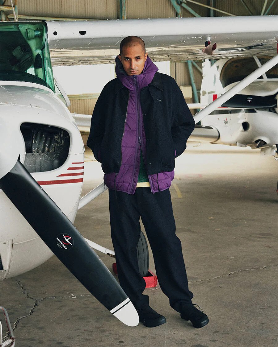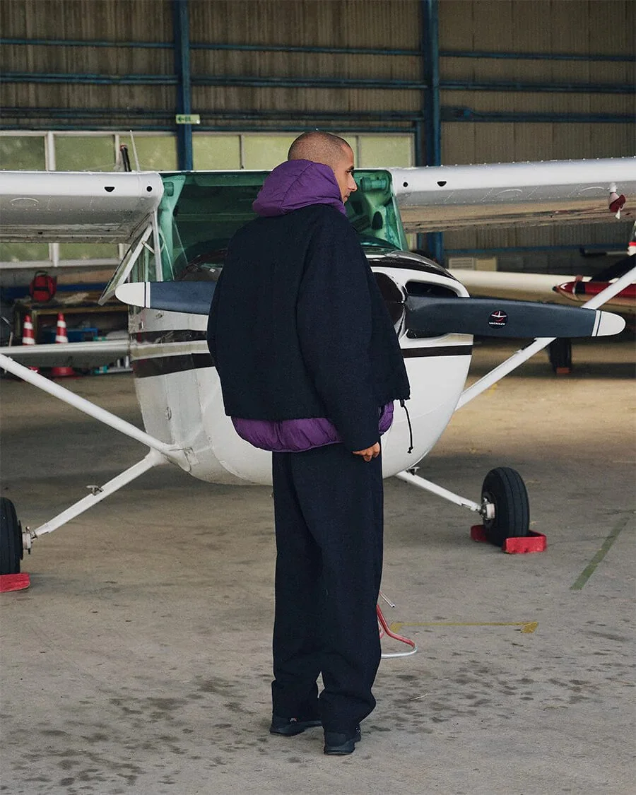 The mini capsule comprises the short-length blouson, "WOOL SERGE FIELD JACKET", and the "WOOL SERGE SHOECUT EASY PANTS", crafted from the same material. As mentioned, the concept behind this project is ‘Layer Up’, designed to mitigate the fluctuating temperatures we face this time of year, as we navigate between cold exteriors and warm, AC-moderated interiors. These pieces are designed with that in mind, utilising wool for its natural temperature regulation and leather for elegant detailing on the collar and cuffs of the blouson. Adhering to a shorter, more traditional cut, the blouson is a layering essential, followed by the easy pants, which are based on a KAPTAIN SUNSHINE style from AW ‘22. Each style arrives in a choice of black or brown.