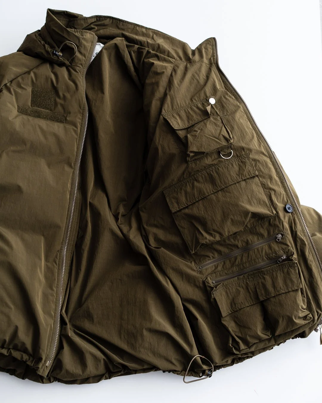Alongside a handful of other jackets, one of the fruits of their labour was the Reversible TYPE P-010 Jacket, a modern take on a fundamental layer of the ECWS (Extreme Cold Weather System). The jacket brings together two iconic outerwear styles: the Monster Parka and Fishing Vest, which can be configured to your liking. Depending on how you wear the jacket, the exterior changes, allowing you to choose whether the vest or parka is outwardly facing. For example, choosing the Fishing Vest as the exterior allows you to optimise its assortment of pockets, whereas the Monster Parka offers a cleaner look. The jacket is insulated using synthetic padding, working to efficiently retain heat. Additional features include an adjustable and stowable hood.