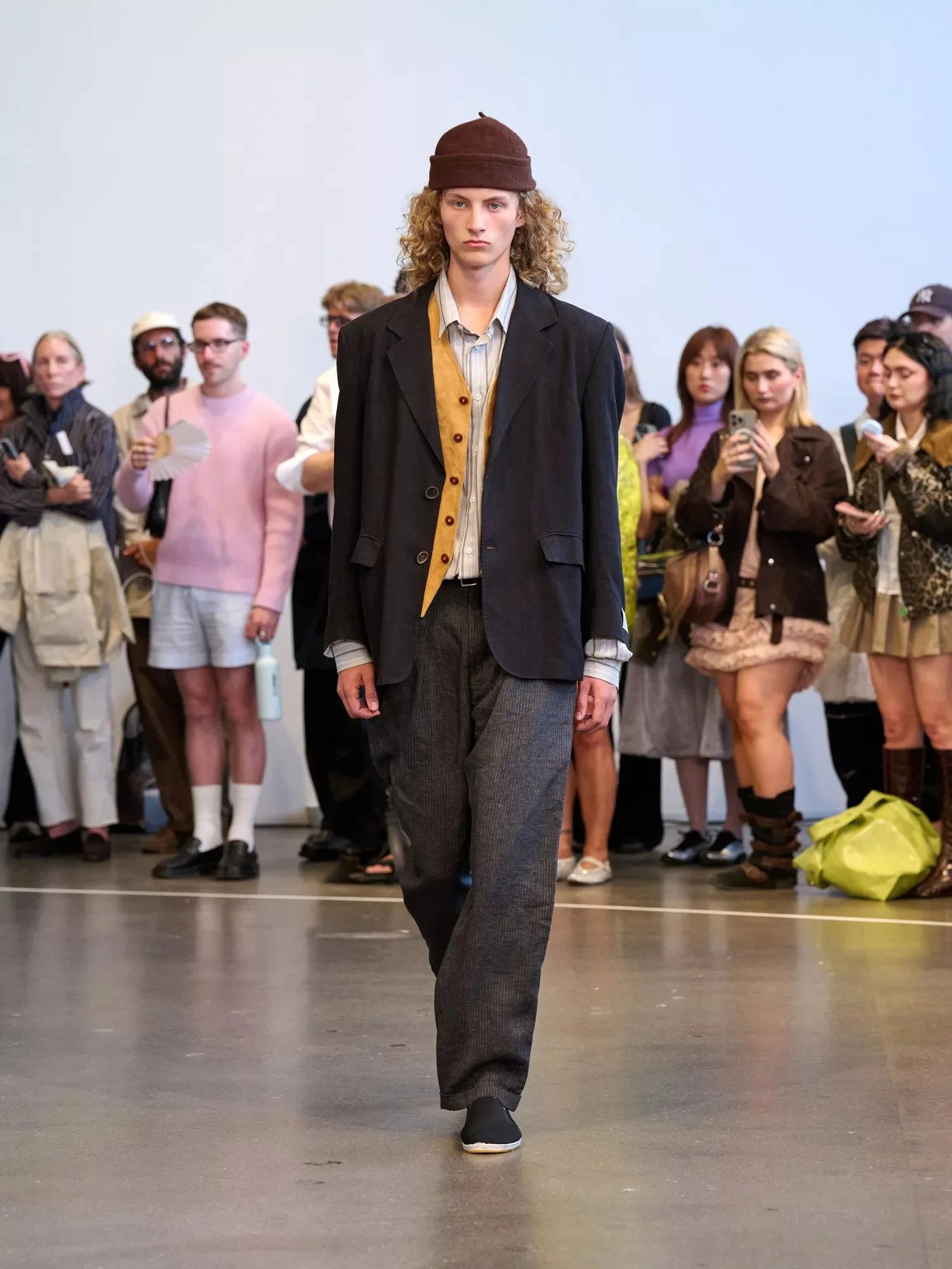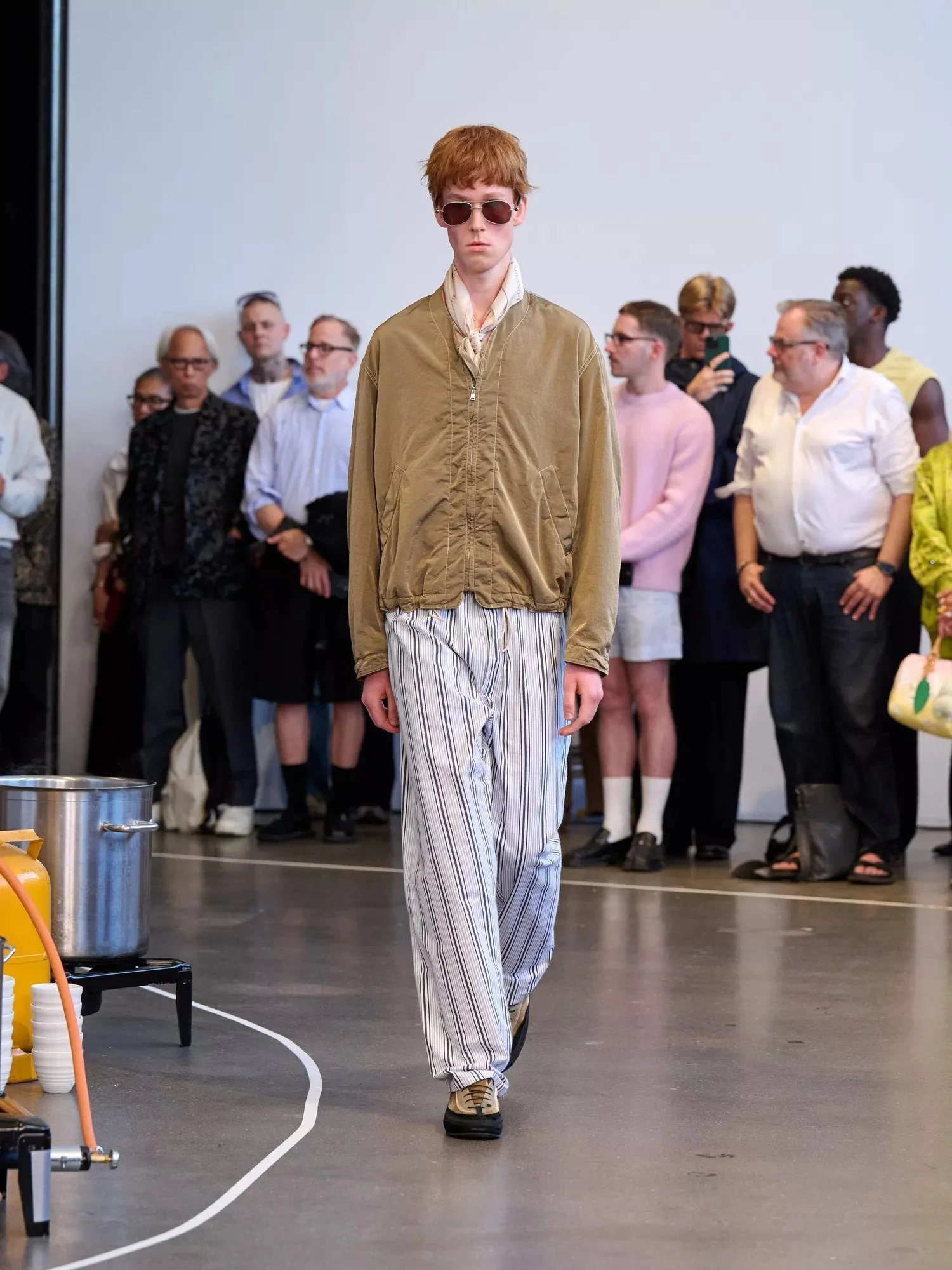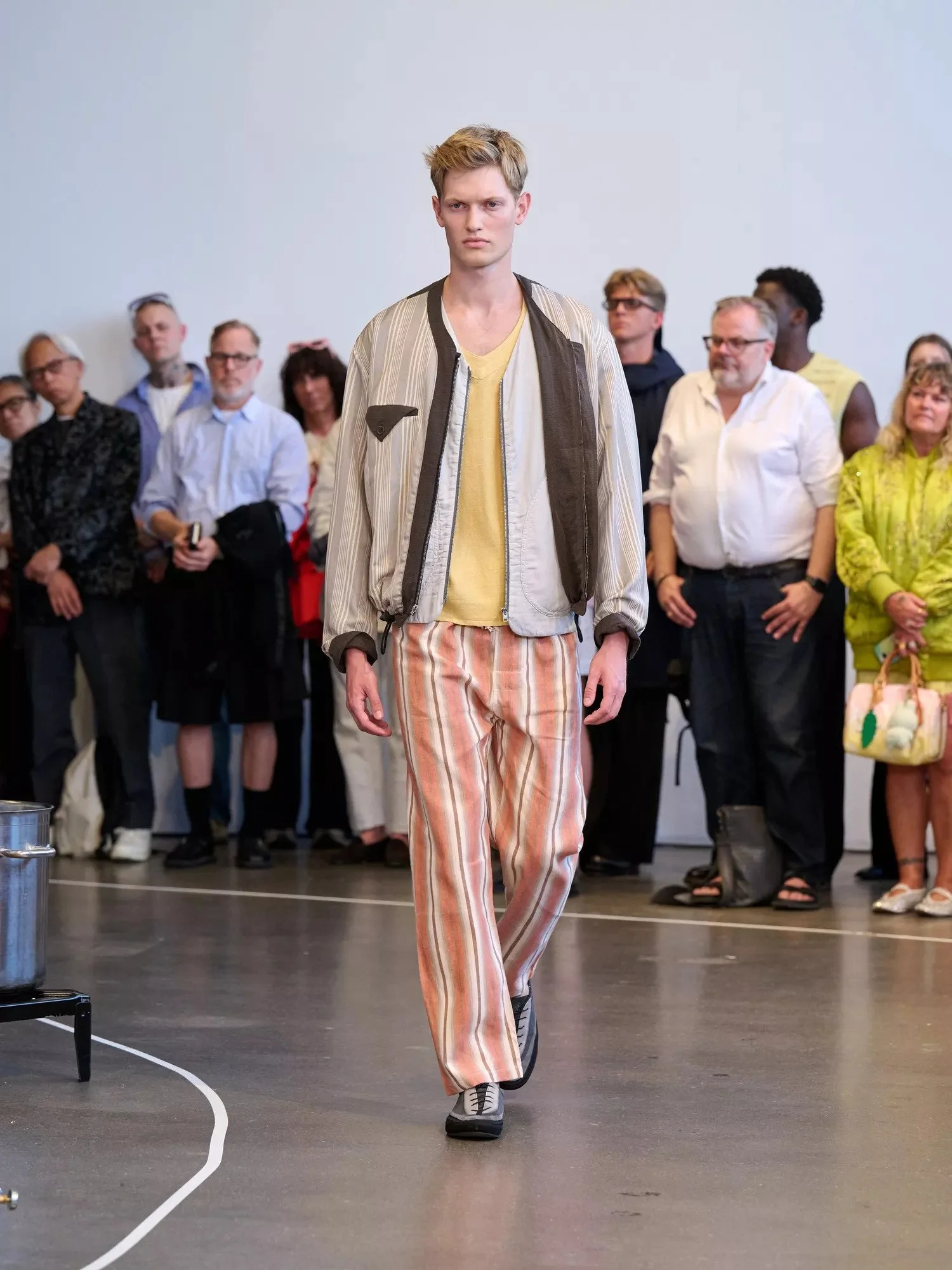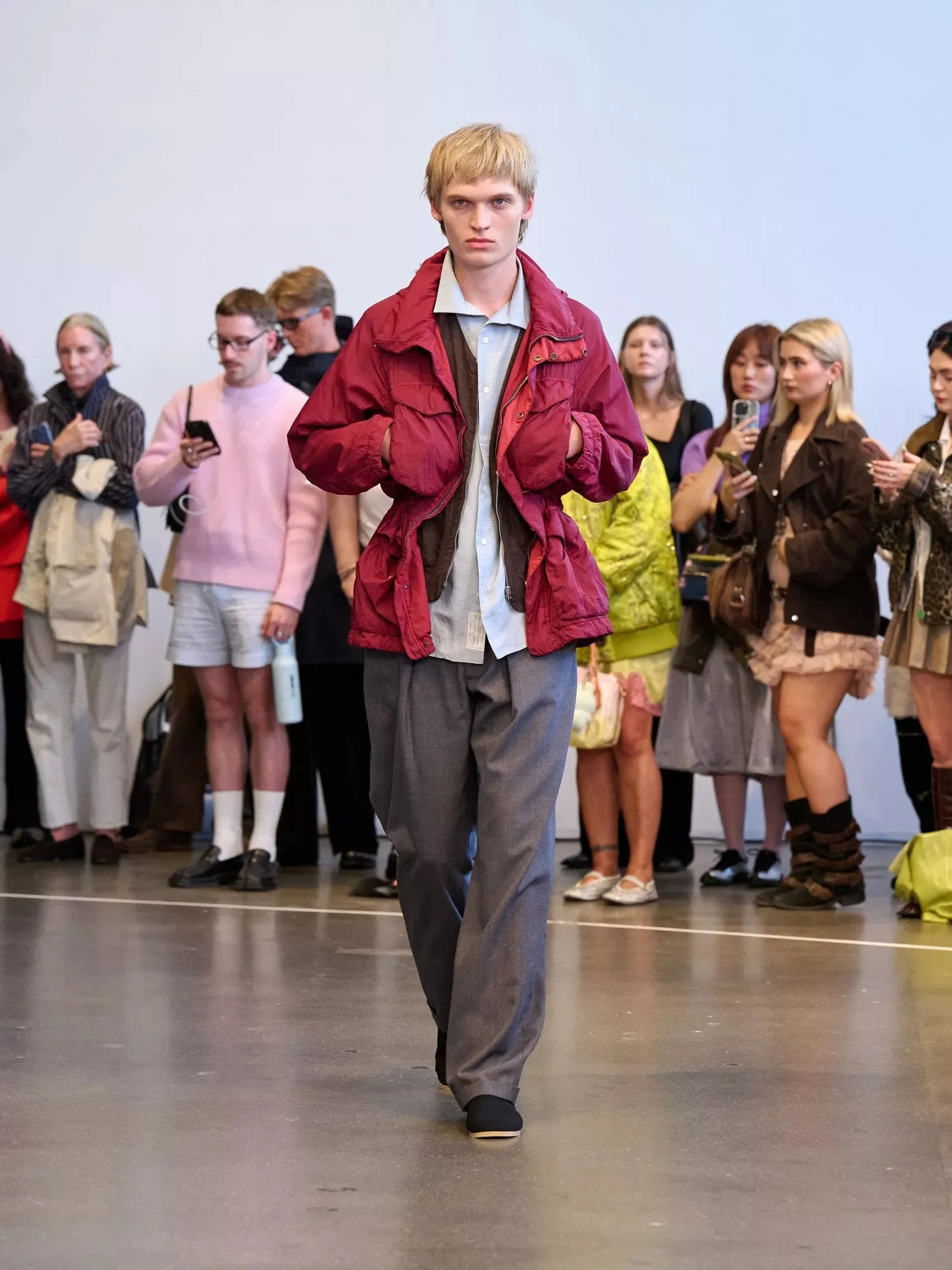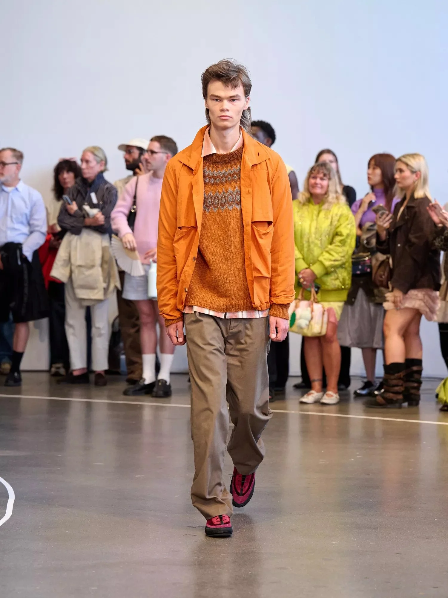 Spring/Summer ‘26 quickly becomes a quiet metaphor for observing the end of Winter and embracing what lies ahead: potential, life, growth, and light. From concept to material choice, design to styling, every decision is intentionally rooted in storytelling, going beyond producing clothing just for the sake of it and using it as a vessel for the culture and history of Ranra’s native Iceland. This subtlety powered the collection, challenging the notion of a traditional runway show as models moved freely through the space, as press and onlookers watched just meters away. Leather jackets adopted deep, earthy tones, mirroring the soil of their native landscape - a starting point for life - while airy silhouettes crafted from cotton-linen and silk-ripstop shorts mirrored the sweeping caresses of the wind, a force vital for growth. Woollen sweaters honour traditional methods, materials, and silhouettes, while bottoms, outerwear, and shirting closely align with the brand’s modern and transitional intentions. Accompanying the apparel are several iterations of Ranra’s ‘KALT’ footwear style, born from the brand’s in-house programme and an evolution of past collaborations with the likes of Salomon.