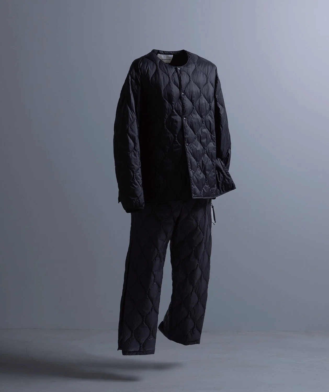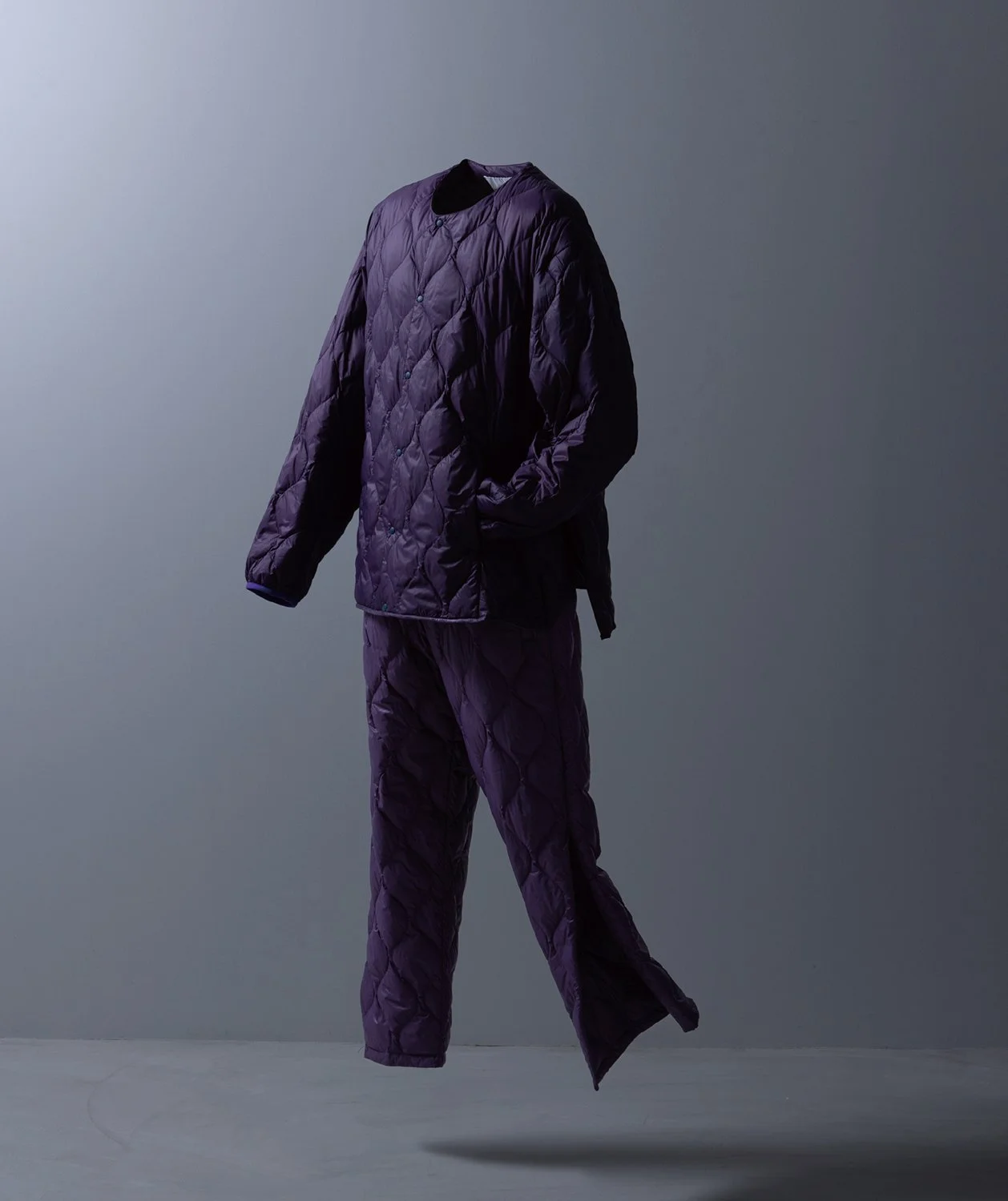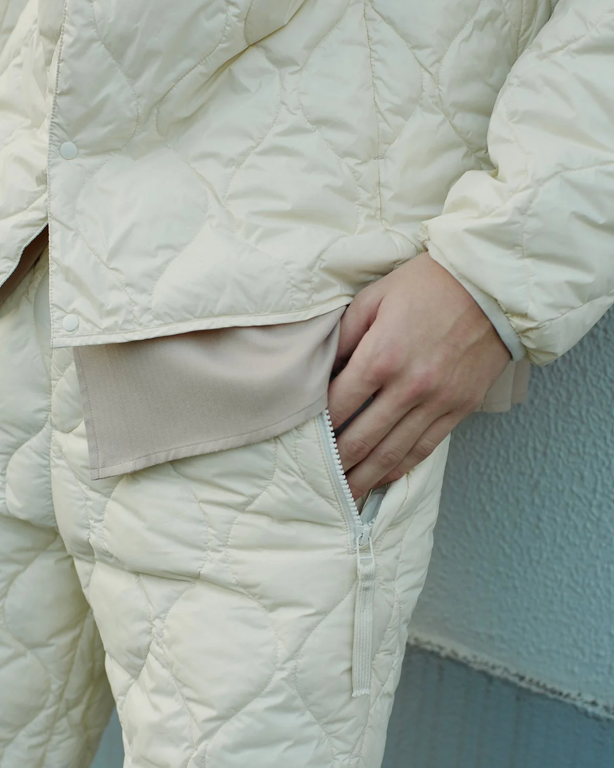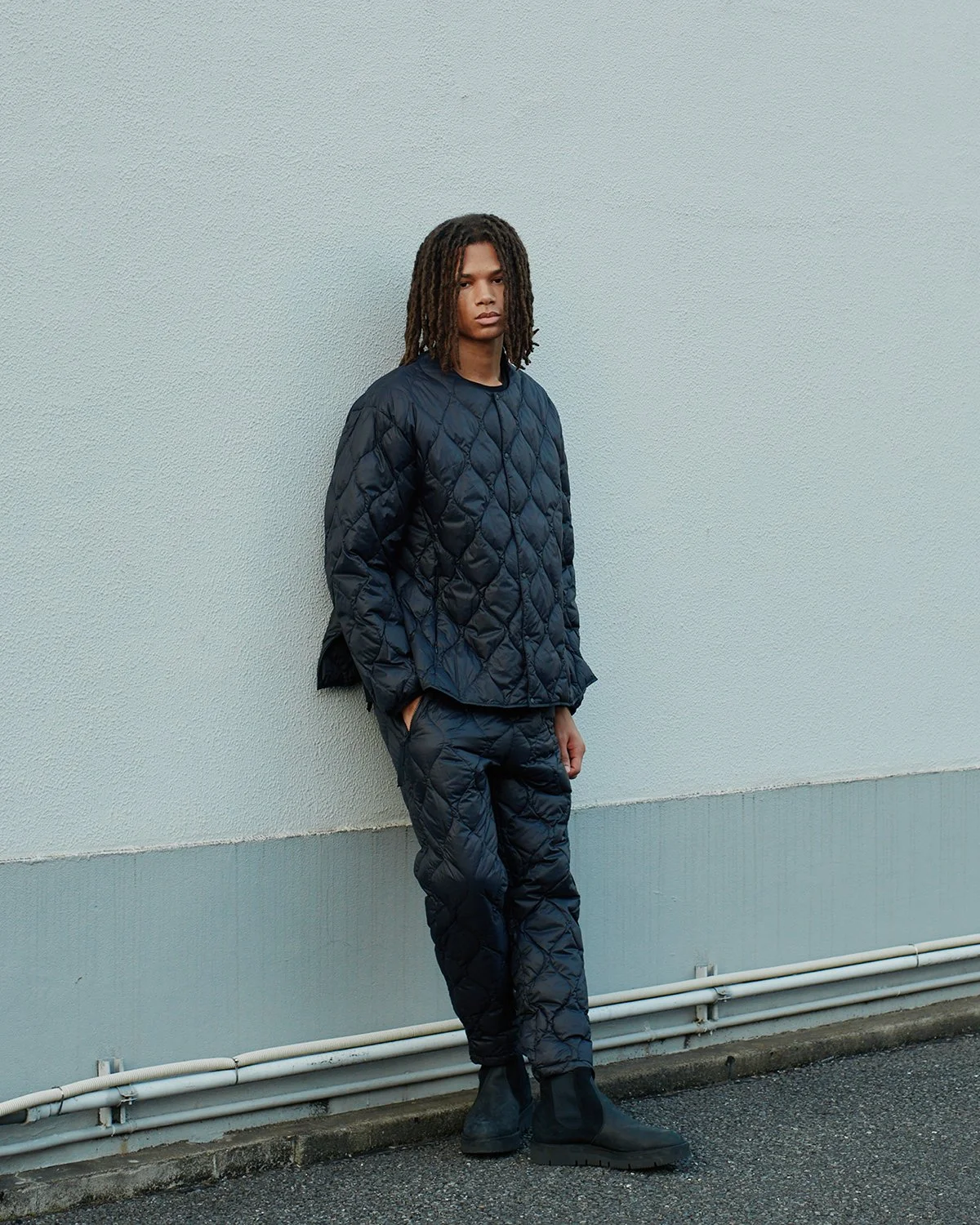 Combining Taion’s minimal and simple approach to downwear with White Mountaineering’s unique perspective on functionality, the duo has created a two-piece set: a light down and down pants. Both pieces celebrate the versatility of Taion’s down technology, and can be worn individually or as part of a set depending on the conditions and preference. As expected, every piece offers reliable warmth. There are three colourways available: purple, black, and cream.