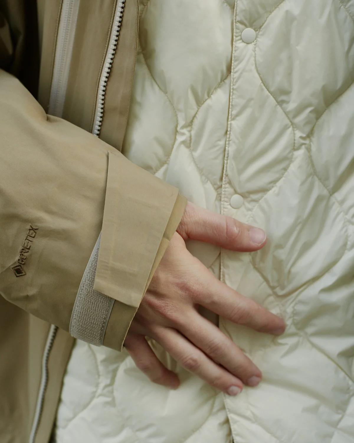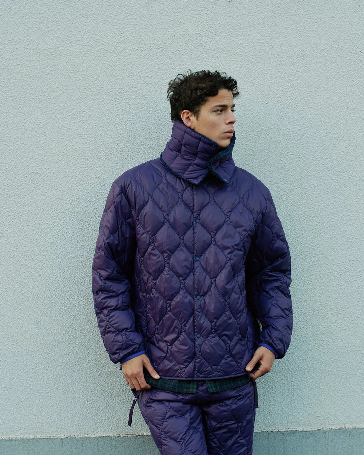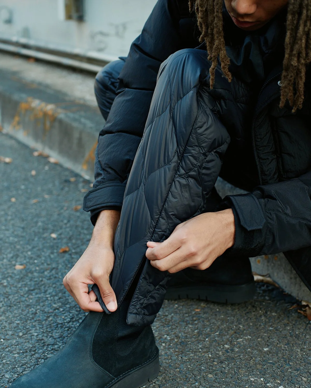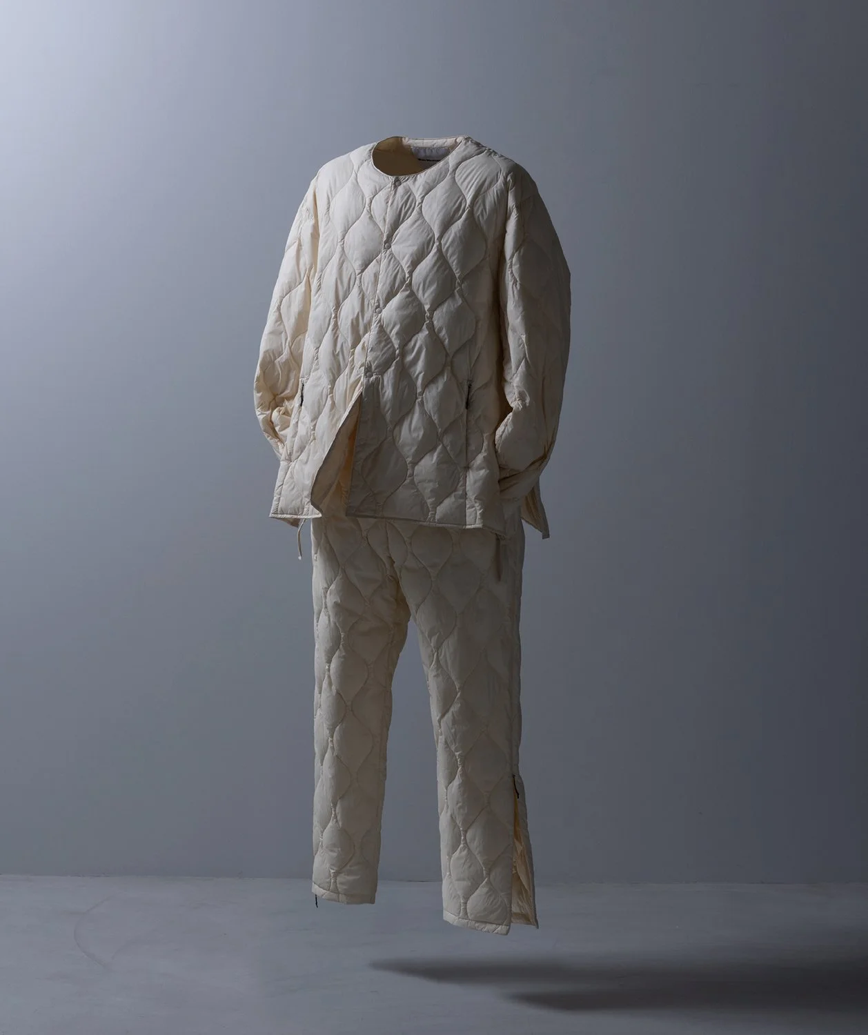 Combining Taion’s minimal and simple approach to downwear with White Mountaineering’s unique perspective on functionality, the duo has created a two-piece set: a light down and down pants. Both pieces celebrate the versatility of Taion’s down technology, and can be worn individually or as part of a set depending on the conditions and preference. As expected, every piece offers reliable warmth. There are three colourways available: purple, black, and cream.