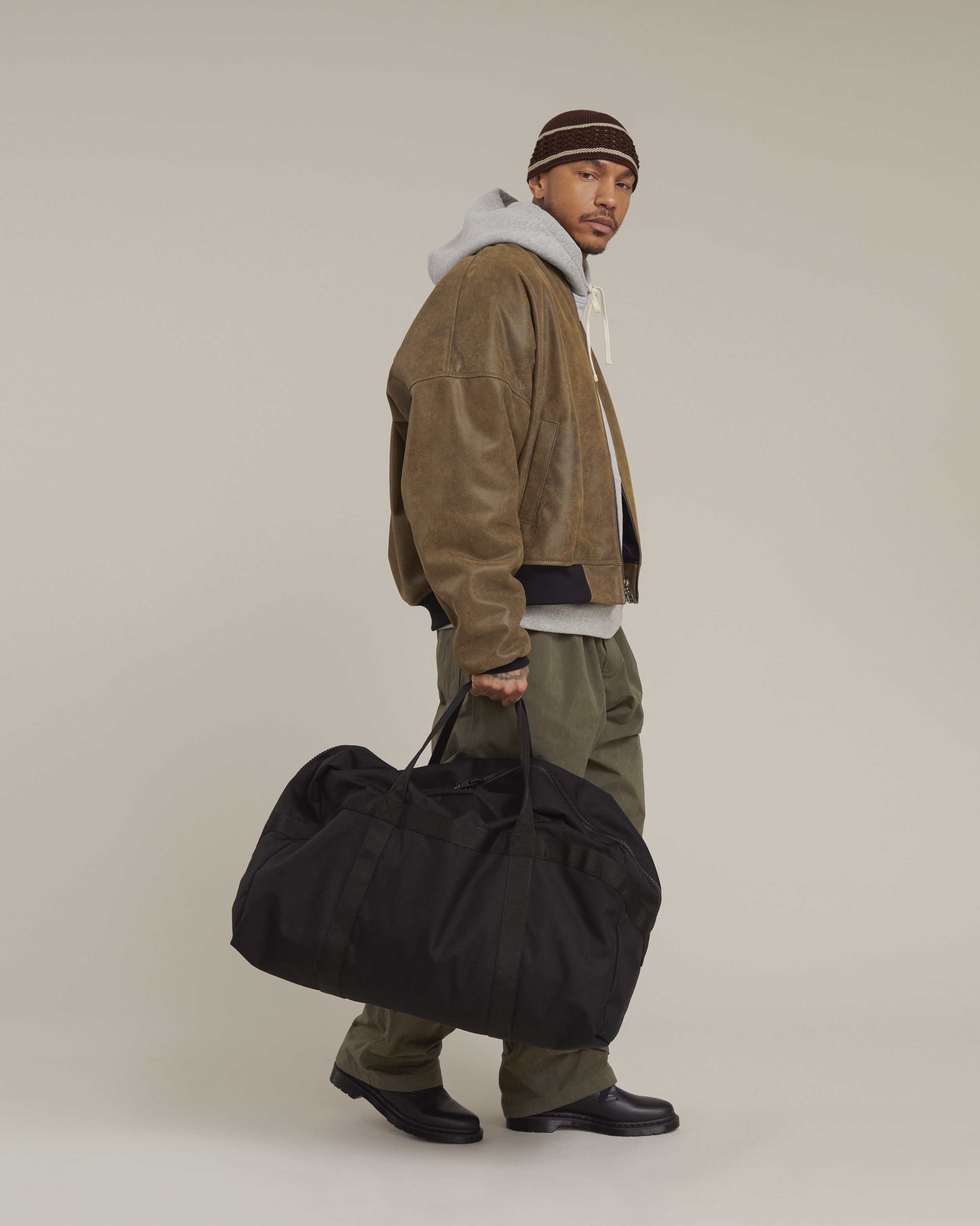 Building upon its past output and aesthetic, the collection comprises classic silhouettes that seamlessly blend hints of utilitarian workwear, formal wear and outdoor sportswear to create a distinctive uniform. From reimagined chore jackets and v-neck knitted sweaters to the timeless double-breasted blazer and loose-fit jeans, the garments are highly versatile and elegant without sacrificing comfort in any shape or form. Additionally, to compliment the NYC-produced leather jacket and vest, s.k. manor hill introduces its first leather bag to its offering. Staying true to its name, Autumn/Winter ‘25 is still largely made in New York’s historic Garment District, with the exception of knitwear made in the UK and Peru and accessories in Italy.