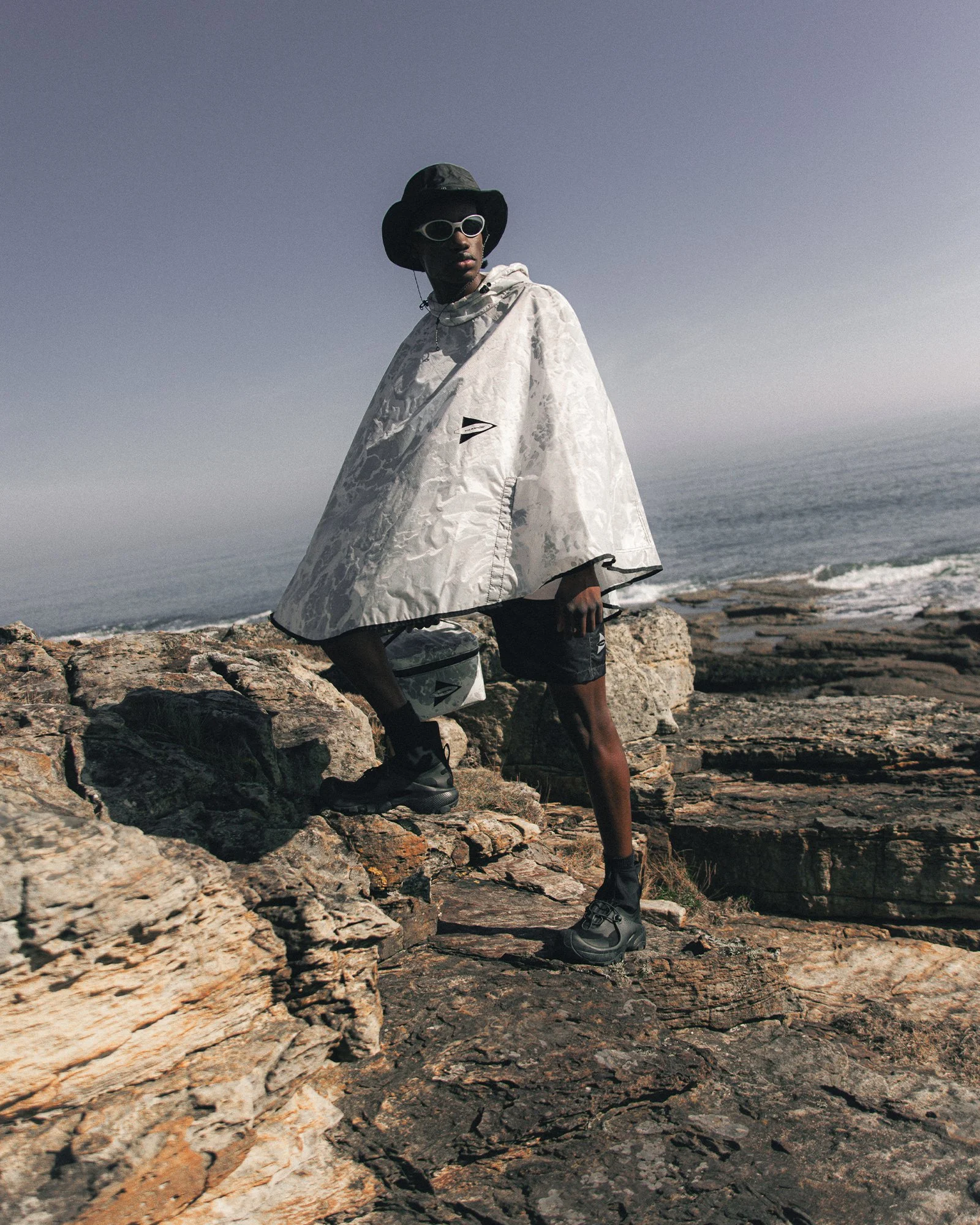 Enlisting Crocs and and Wander, all-weather protection, darker tones, and aquatic-inspired prints take centre stage across apparel and footwear, with the Trailbreak adopting utilitarian sensibilities for traversing land and sea. Clad in an all-black colourway, the Trailbreak blends trail-inspired aesthetics with water sports functionality: a neoprene boot is sealed with a protective taped zip closure, a chunky sole unit extends around the forefoot, providing better traction in water and out of it, and the subtle watery print connects the Trailbreak to its aquatic roots. Joining the aforementioned footwear style, and Wander supplies a 10-piece apparel and accessory collection, ensuring you’re prepared regardless of the setting or the weather. Featured styles include the Nylon Print Jacket, 3L Print Poncho, Hat and Shorts, Cooler Box, Bottle, and Beach Towel.
