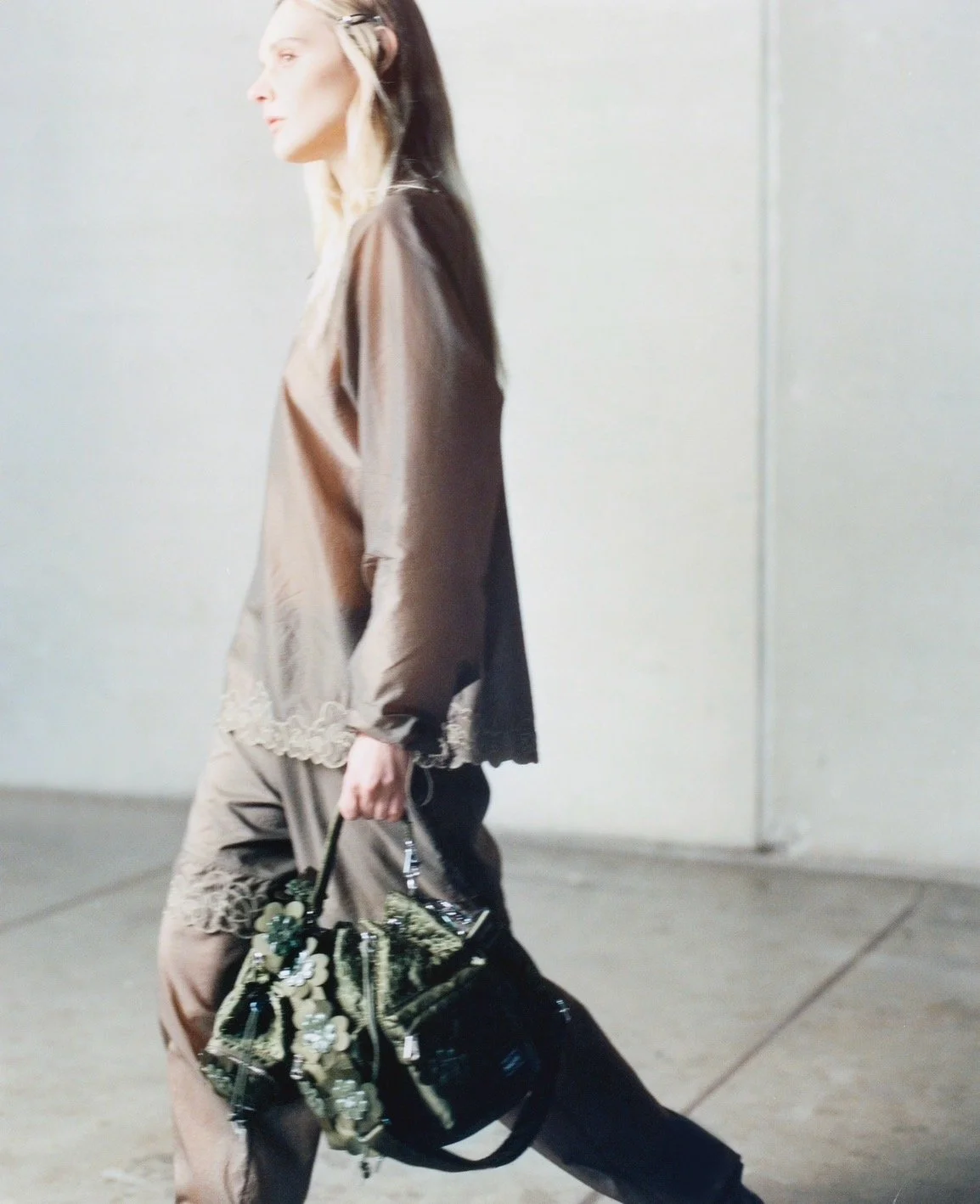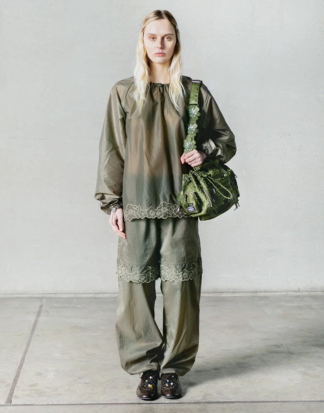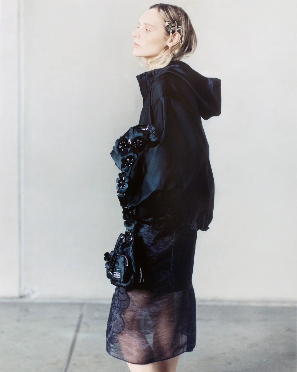 For the second time in their collaborative series, Cecilie Bahnsen reinterprets three iconic PORTER silhouettes, namely the 2-way tool bag, backpack, and mini bonsac, to celebrate the Japanese label’s 90th anniversary. These iconic PORTER silhouettes are reimagined from Cecilie Bahnsen’s unique perspective, marrying poetic couture elements, such as rouching and floral detailing, into utilitarian styling. Each bag is assembled using methods familiar to PORTER, including its bonded nylon fabrication and original metal fixings, ensuring they seamlessly gel into its universe.