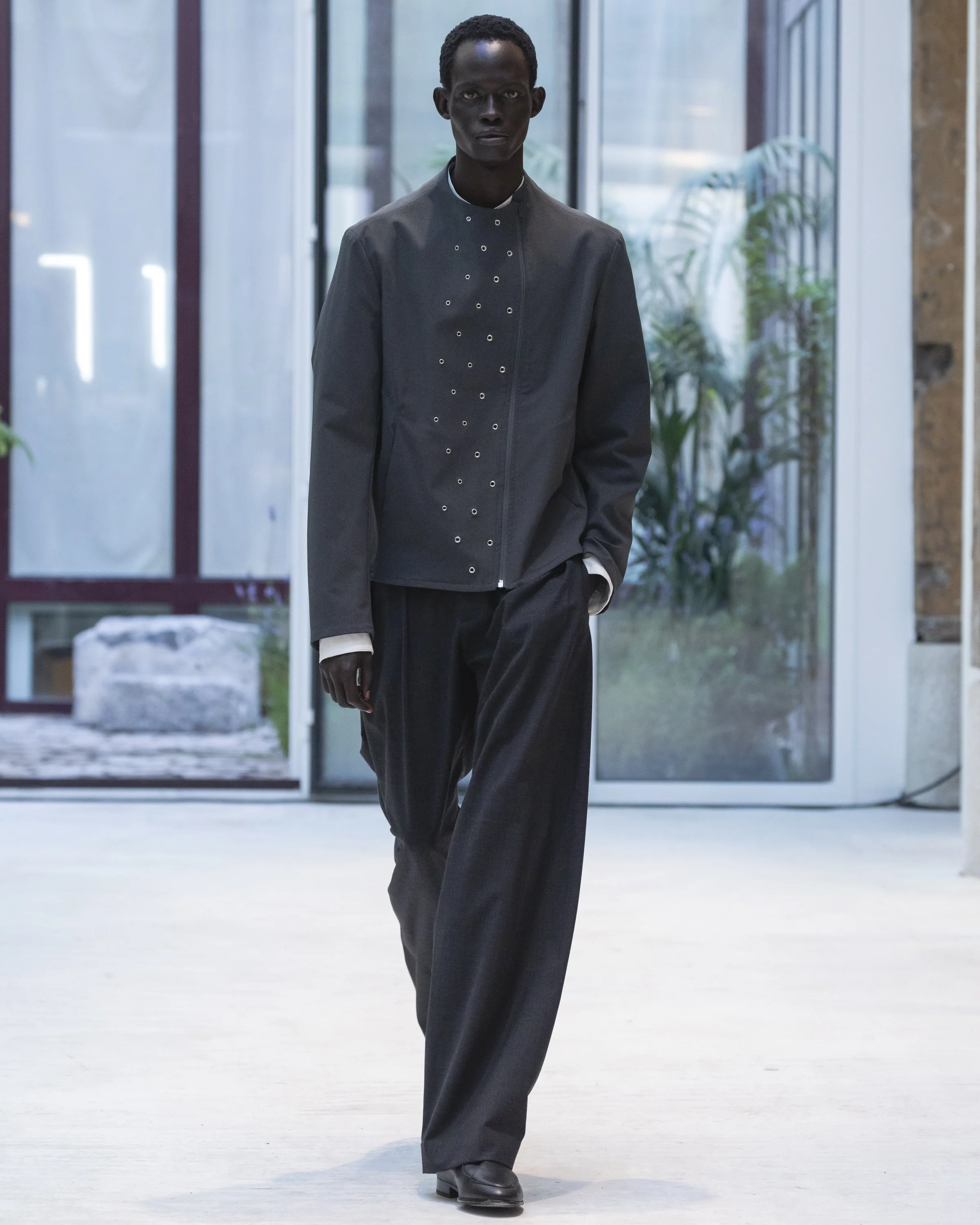 Alongside its mainline apparel offering, the label teased its debut collaboration with Puma on two prototypes, the CELL Umbre and CELL Midnight, that continue its design logic. Additionally, footwear styles like the Shin Loafer, inspired by the Lounge Chair by Grete Jalk, help in bolstering its in-house offering.