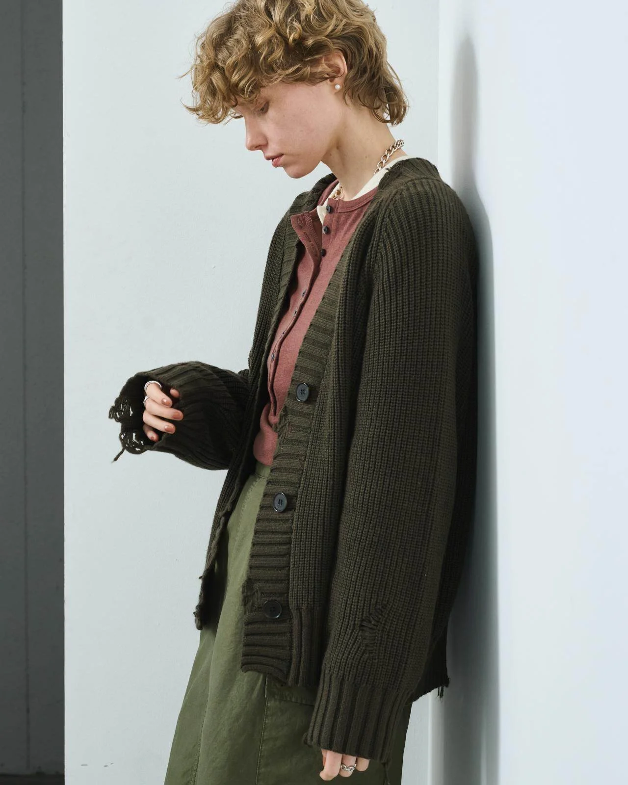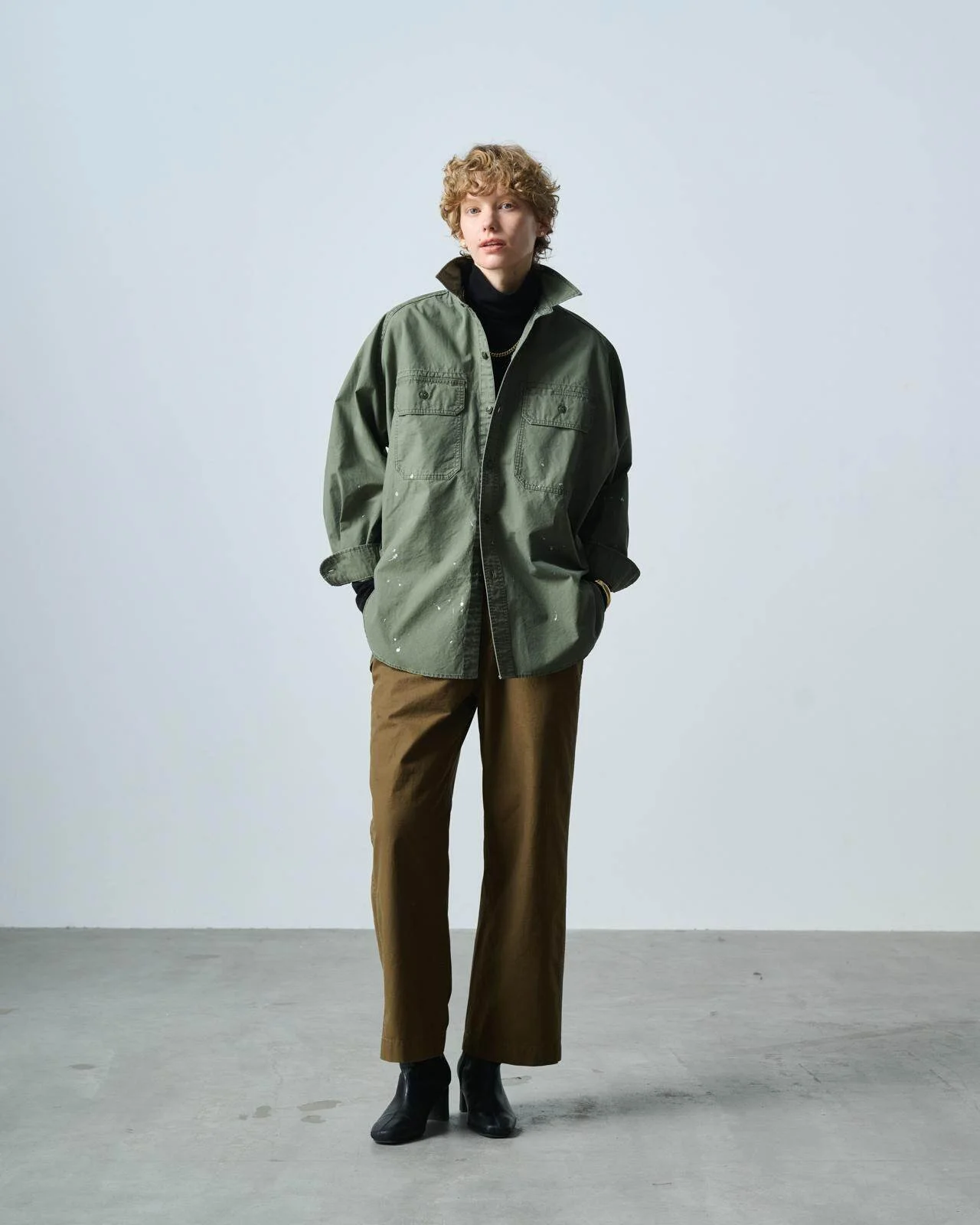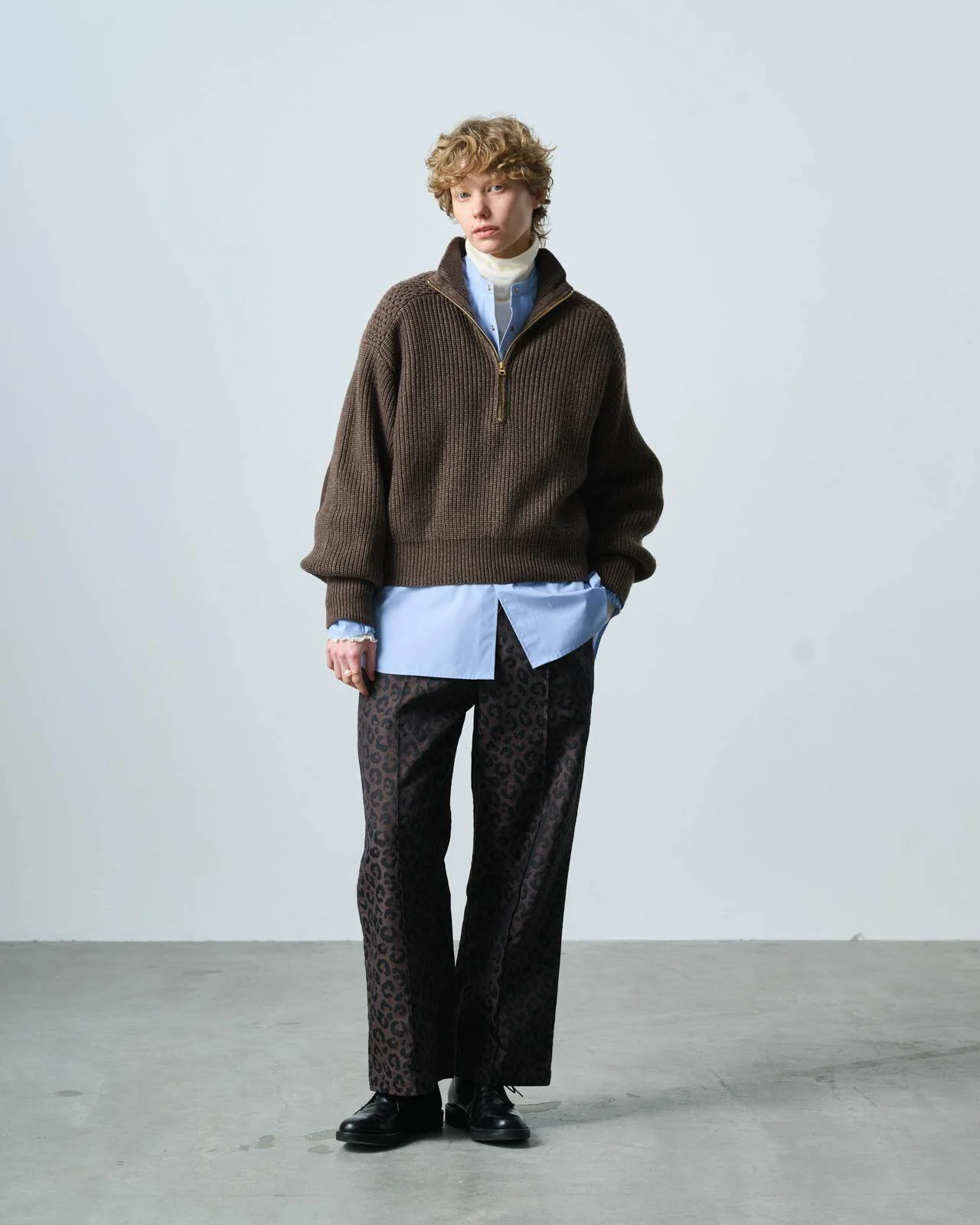 KHA:KI is anchored to the connotations of the colour khaki, which defines its nomenclature and how prevalent it is in military wear. Focused on creating everyday clothing with a military twist, the label expresses this universality through colour, silhouette, and structure. The result is a range of outerwear, legwear, shirting, knitwear, and more that follow this formula, with liner jackets, half-zip sweaters, animal print bottoms, and BDU shirts falling into place. Not limited to just khaki or camel, two stoic military tones, KHA:KI extends its palette to brown, blue, pale yellow, pink, and crayon grey.