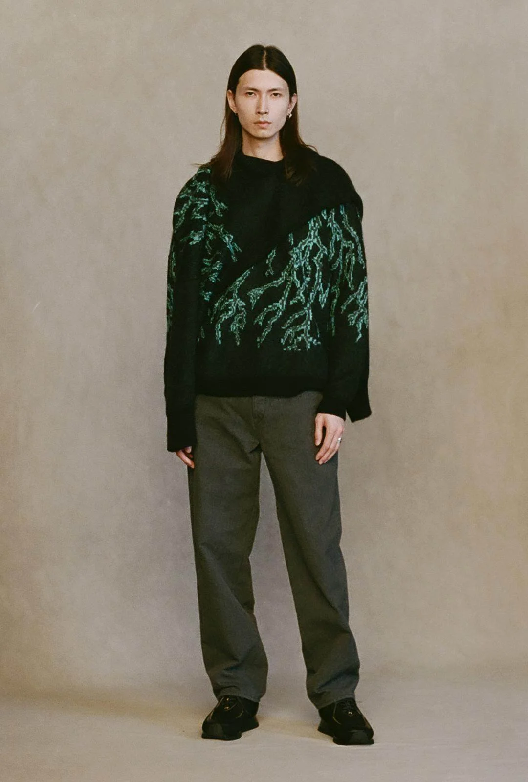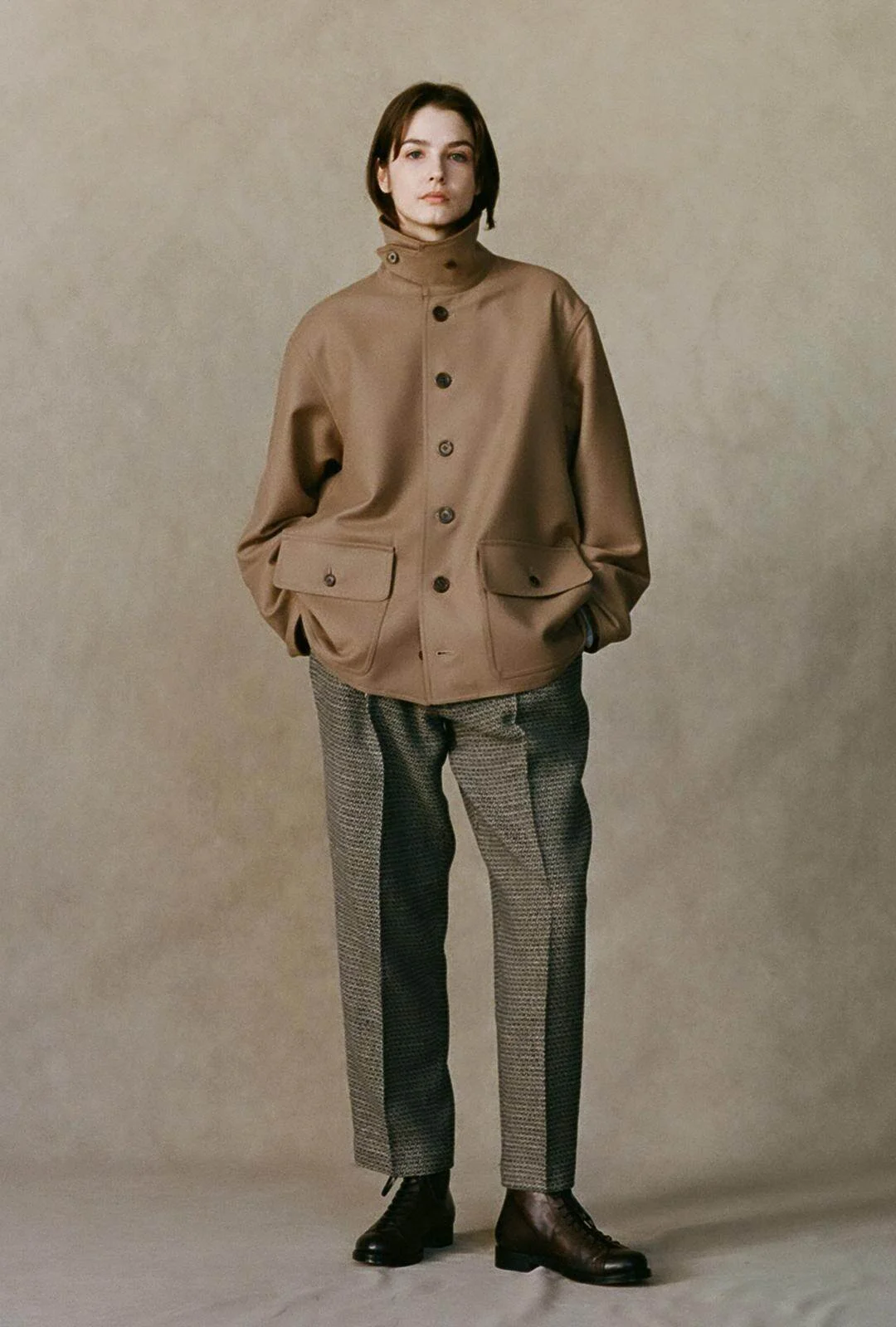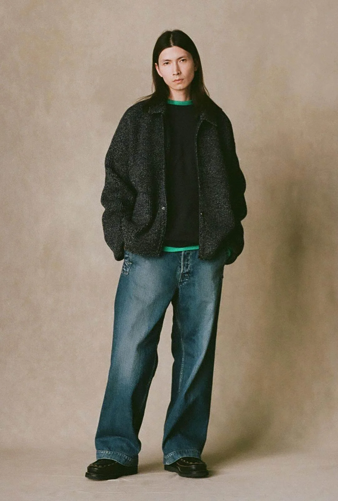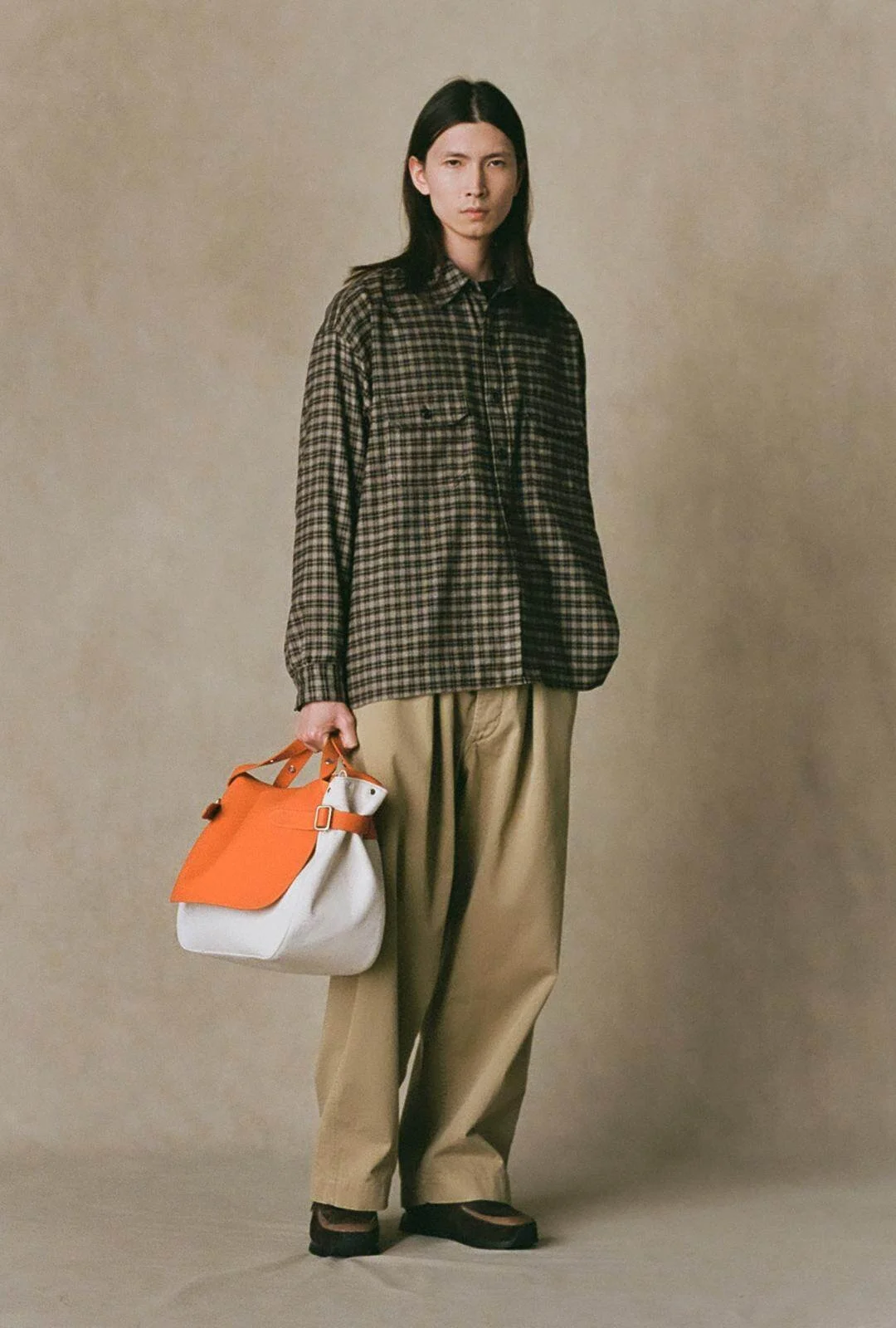 Since its inception, the Japanese label has paved its own path, creating a sense of identity that is not bound by conventions or expectations. Its Autumn/Winter ‘25-26 collection, titled ‘Fictional Identities’, channels this by weaving character into each garment without losing sight of the brand’s intentions or aesthetic. Each product category is equipped with a cacophony of diverse pieces, across knitwear, shirting, leather goods, outerwear, and footwear, among others. Starting with outerwear, one of NICENESS’ fields of expertise, heavy floral fleece jackets, duffle coats, and long leather jackets front the selection. Similarly, its legwear offering consists of bottoms constructed from a mix of fabrics, experimenting with texture, and failing to conform to a single, defining shape - wide and slim are both appreciated. Bags are crafted from leather and take the form of playful canine silhouettes as well as weekend bags and leather totes with handles. Shirting and tops are complete with button-down checked shirts with chest pockets and daring Western-inspired prints. Knitwear plays a critical role in the collection, with button-up sweaters and mock necks acting as layering tools in transitional weather.