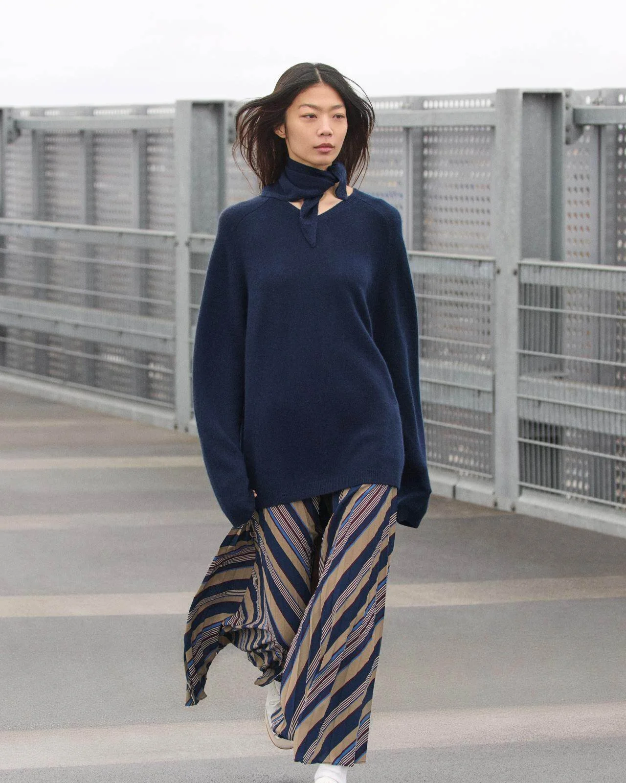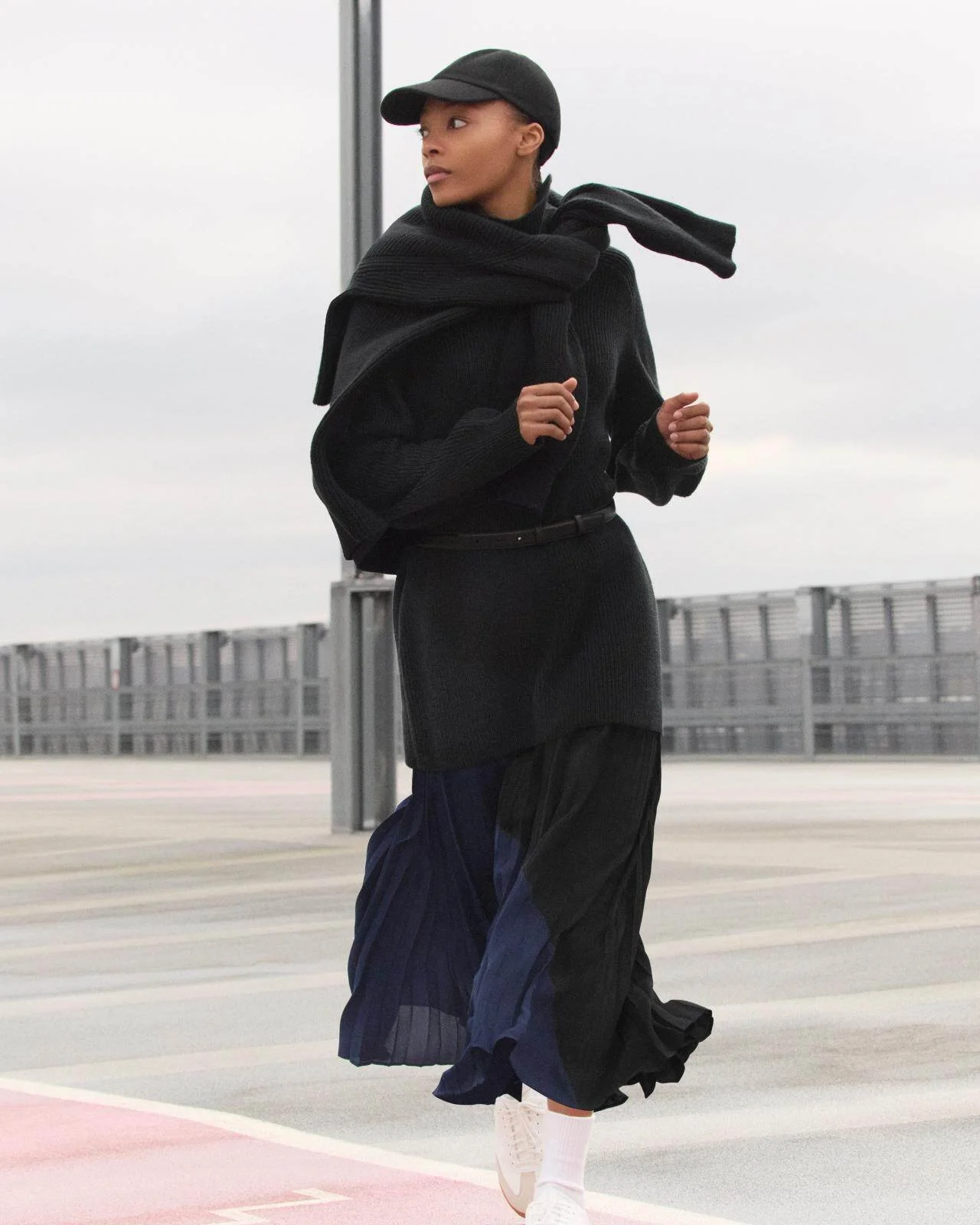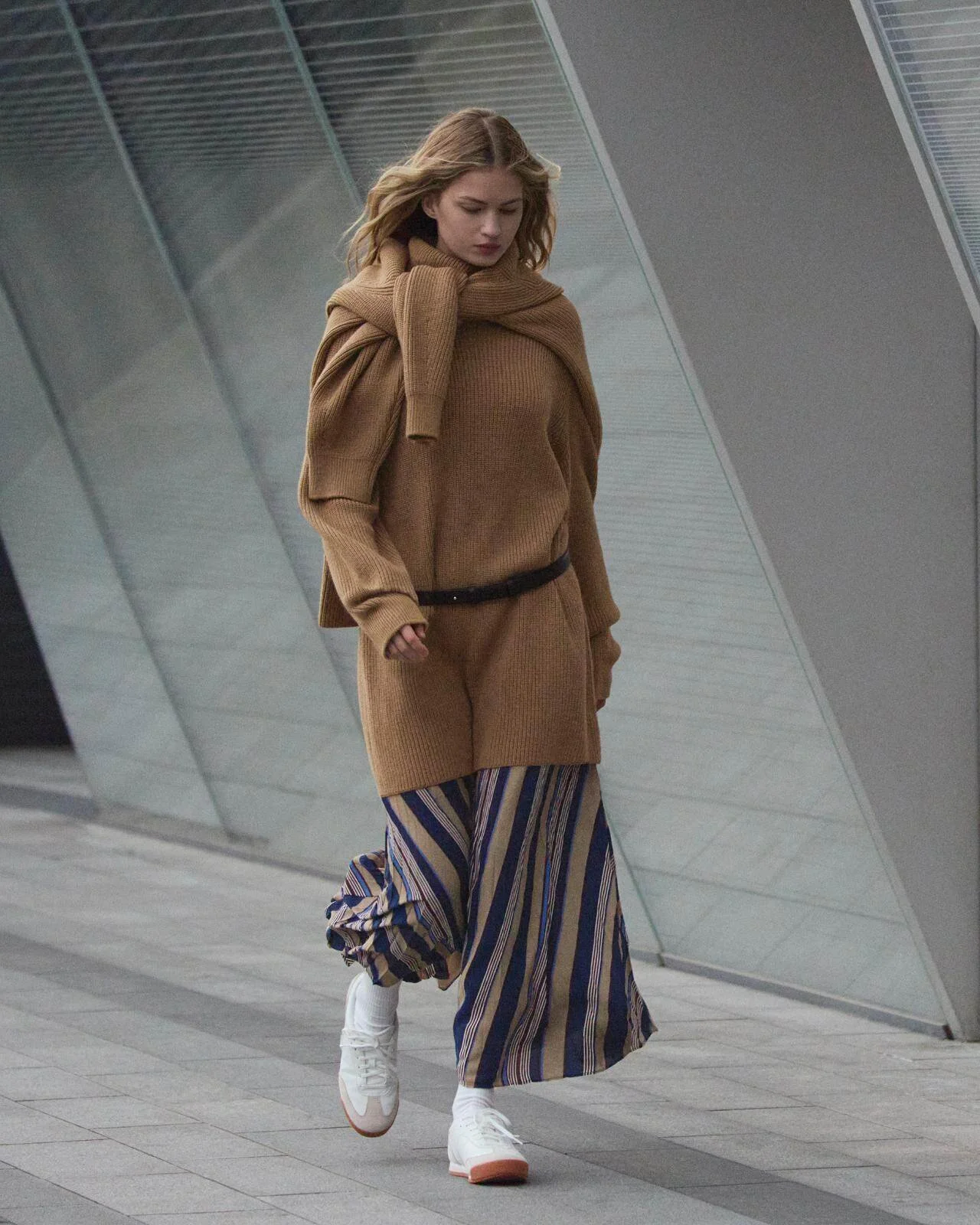 Forming the first part of the collection are items that are designed with transitional weather in mind, to bridge the gap between Autumn and Winter, such as knitted crew necks, flowy sweatpants, the cotton cocoon shirt - a cropped shirt with a ballooning silhouette. The second part of the series features a line of items that combine functionality and materiality, such as high-quality knitwear crafted from cashmere and technical puffer jackets. Of note, there is a tailored tweed jacket made from a wool blend material, harnessing the natural properties of wool while adhering to a sharp, tailored look.