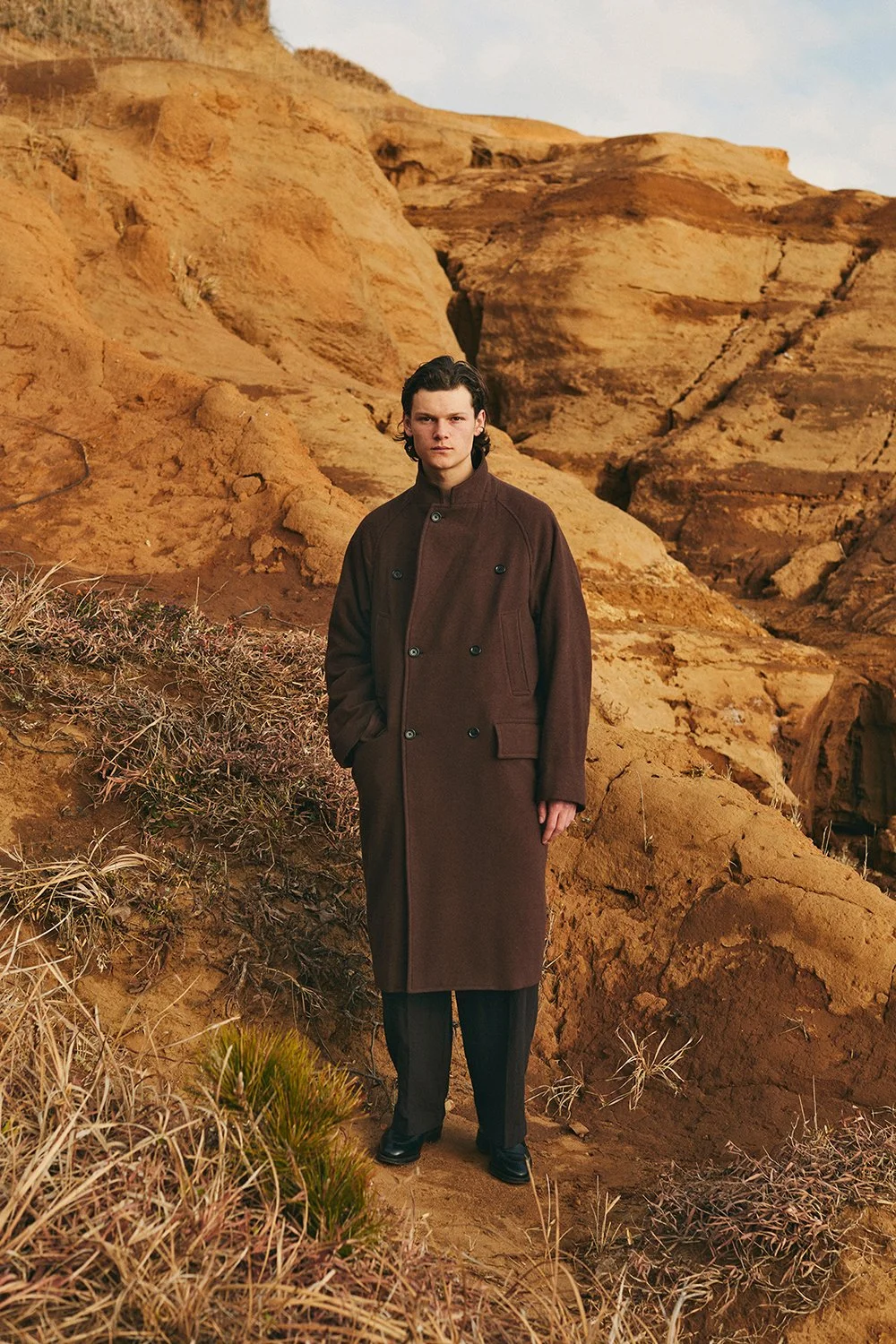 Inspired by clothing archetypes, blurhms’ collections are frequently replete with silhouettes that have stood the test of time, adapted time and time again by designers. Subtle nuances include adapting the fit of the item, its construction, minute details, and texture through material composition. Outerwear, knitwear, trousers, and shirting are cut from premium fabrics to achieve a unique form. Heavy wool suit jackets and brown overcoats sit alongside buffalo check field overshirts and leather jackets. Button-up shirts are lengthened in a meeting of shirting and dresses, and legwear is decidedly relaxed, taking a fairly uniform approach with varied material choices. Throughout the collection, shapes vary from roomy to refined, providing a choice of fit for everyone.