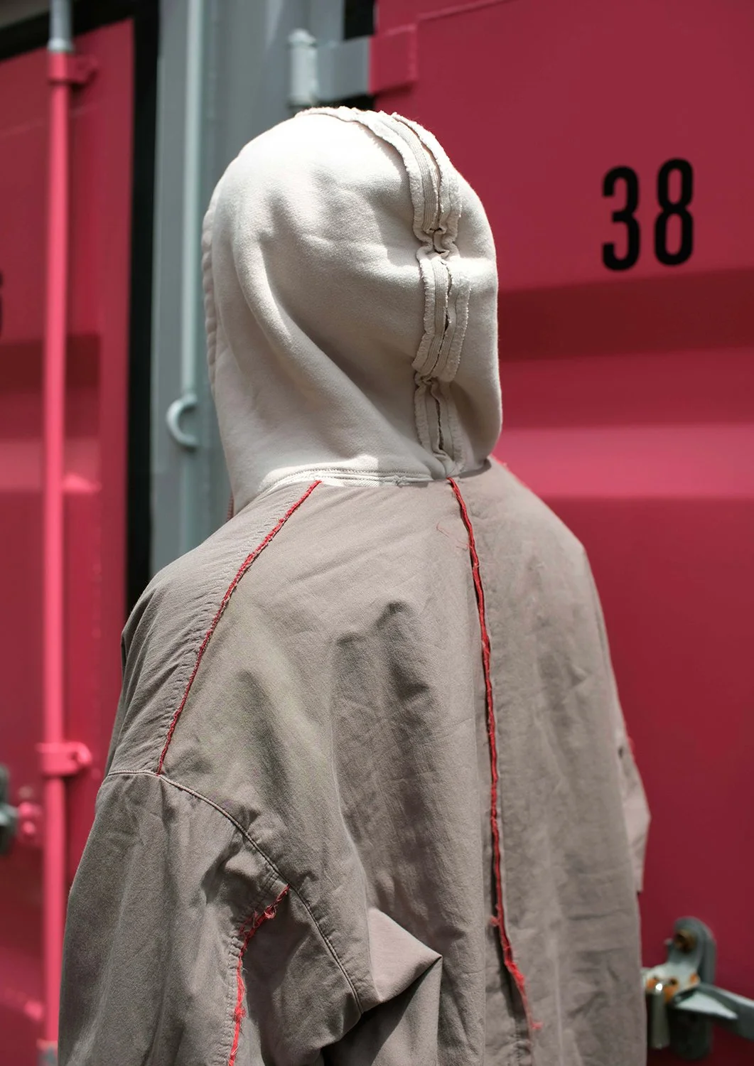 The direction of Autumn/Winter ‘25 steers towards four central keywords: pleats, puckering, draping, and inside-out. Outside of this context, they might seem nonsensical, but they duly inform how roundabout has assembled the collection and the finish of its garments. Raw finished hems, contrasting stitching, inside-out silhouettes, and rich textures define the collection’s visual codes, with smocks, sweatshirts, denim jeans, knitted beanies, and button-up shirts following this.
