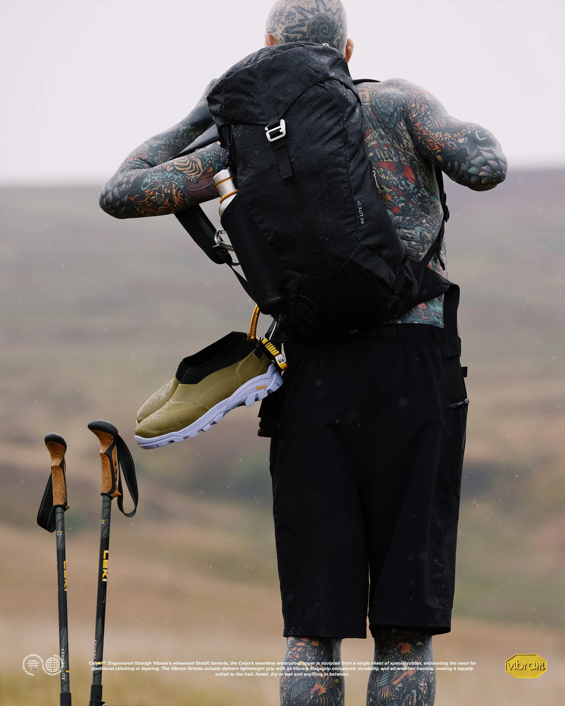 First teased during Paris Fashion Week earlier in the year, the Calyx is the brand’s inaugural footwear silhouette, developed in collaboration with no better partner than Vibram. A modern interpretation of the iconic and lasting camp shoe, it is built for those moments between effort and recovery, a regular occurrence on any hiking escapade.