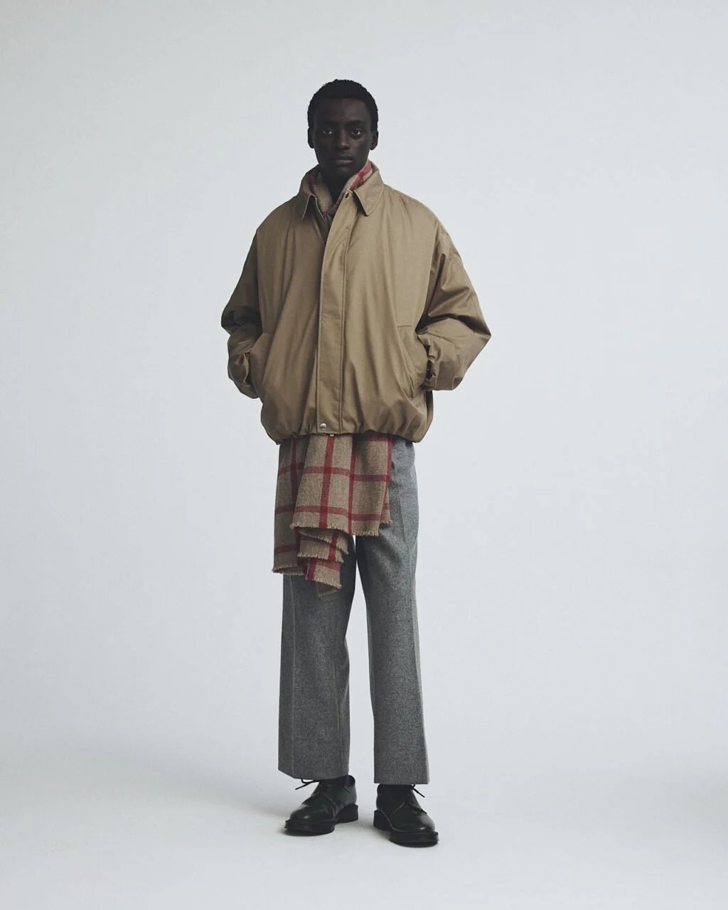 Miffew takes a unique approach to design and operations, not bound by traditions or the fashion calendar. Its ethos is centred around developing downwear for all seasons that transcends gender and trends, while ensuring that versatility and individuality are considered with each design. For Autumn/Winter ‘25, miffew makes the most of its reliable domestic production network, not compromising materials or details by overseeing the process from start to finish. The result is a blend of highly wearable outerwear, shirting, knitwear, trousers, accessories, and more that prioritise warmth through naturally insulating materials and compact down insulation. The collection is defined by a blend of earthy tones and pastel hues, such as yellow, lilac, and green.