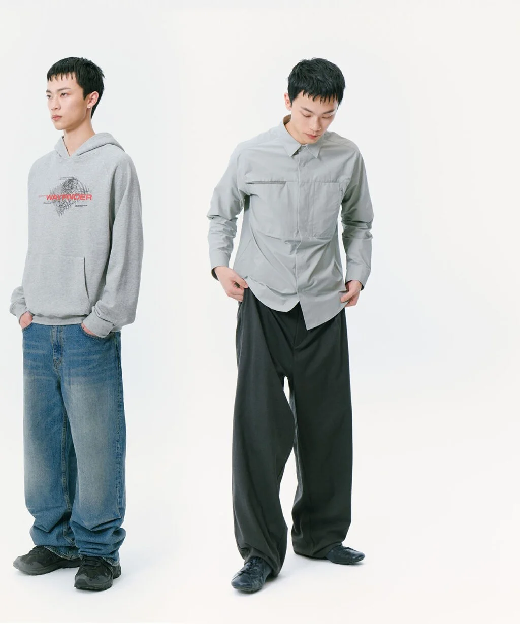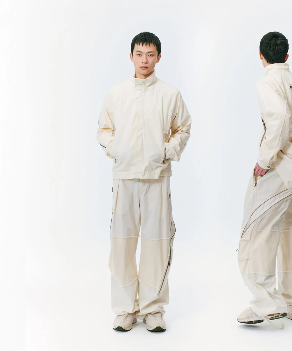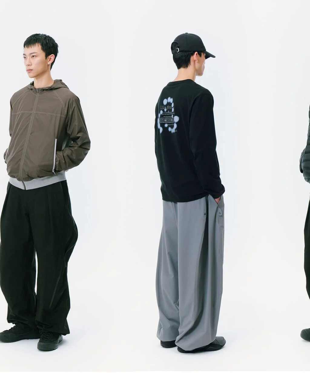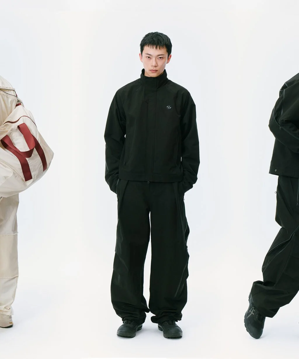As time wears on for the still young Korean label, each collection arrives with an imbued energy, offering silhouettes that actually feel new. This season, SAN SAN Gear presents a signature range of apparel consisting of outerwear, trousers, shirting, tops, sweats, knitwear, and accessories. There are many highlights throughout the categories, starting with outerwear, where fleece jackets feature asymmetric zippers, puffers are insulated with down for maximum warmth, and shell jackets are decorated with exterior seam taping, highlighting the unfiltered hidden functionality of weatherproof gear. The Trucker contrasts the technical landscape of Autumn/Winter, adhering to a shorter, workwear-inspired silhouette with laser-cut pockets and a clean button placket. Adhering to traditions, knitwear is constructed using a heavy cotton blend with a tight neck and slouchy shoulders, while laser-cut pockets provide a sharp balance and nod to the Korean brand’s toying between heritage and modernity. Legwear comes in many forms, with pleated wide trousers and darted pants sitting alongside lightweight trousers with snap closures and 3L taped pants. Character is achieved in the collection through over-dyed materials that offer a worn-in patina, irregularly placed zippers, raw finishing, and a cohesive colour palette.