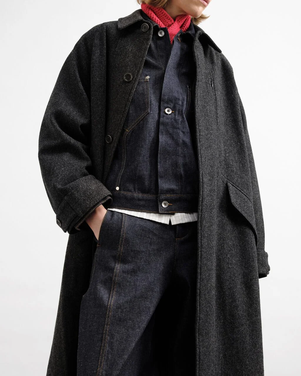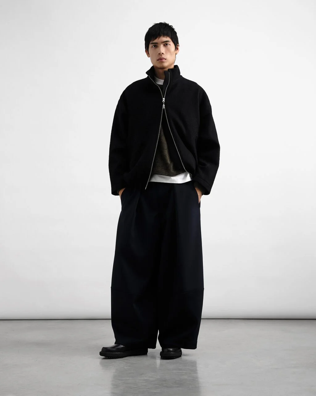 Marking Sage Toda Nation’s second collection as Creative Director at YMC after his appointment last year, we begin to see his design language shining through, from silhouette, styling, pattern-cutting, and fabrication. Rest assured, Sage’s input is equally matched by YMC’s heritage, bringing a youthful flair in the form of relaxed cuts and woven pringle knits, for example. Autumn/Winter ‘25, covering men’s and women’s, consists of outerwear, voluminous, boxy trousers, skirts with adjustable points, layer-friendly knits, shirting, and brightly coloured knitted scarves. Some of our highlights include the Tyrell Trench Coat, a long coat crafted from Portuguese melton wool; the Deadbeat Trouser, a pair of pleated, wide-leg suit-like trousers; and the Aaron Zip Jacket, a track jacket made using wool with a two-way zipper for simple layering.