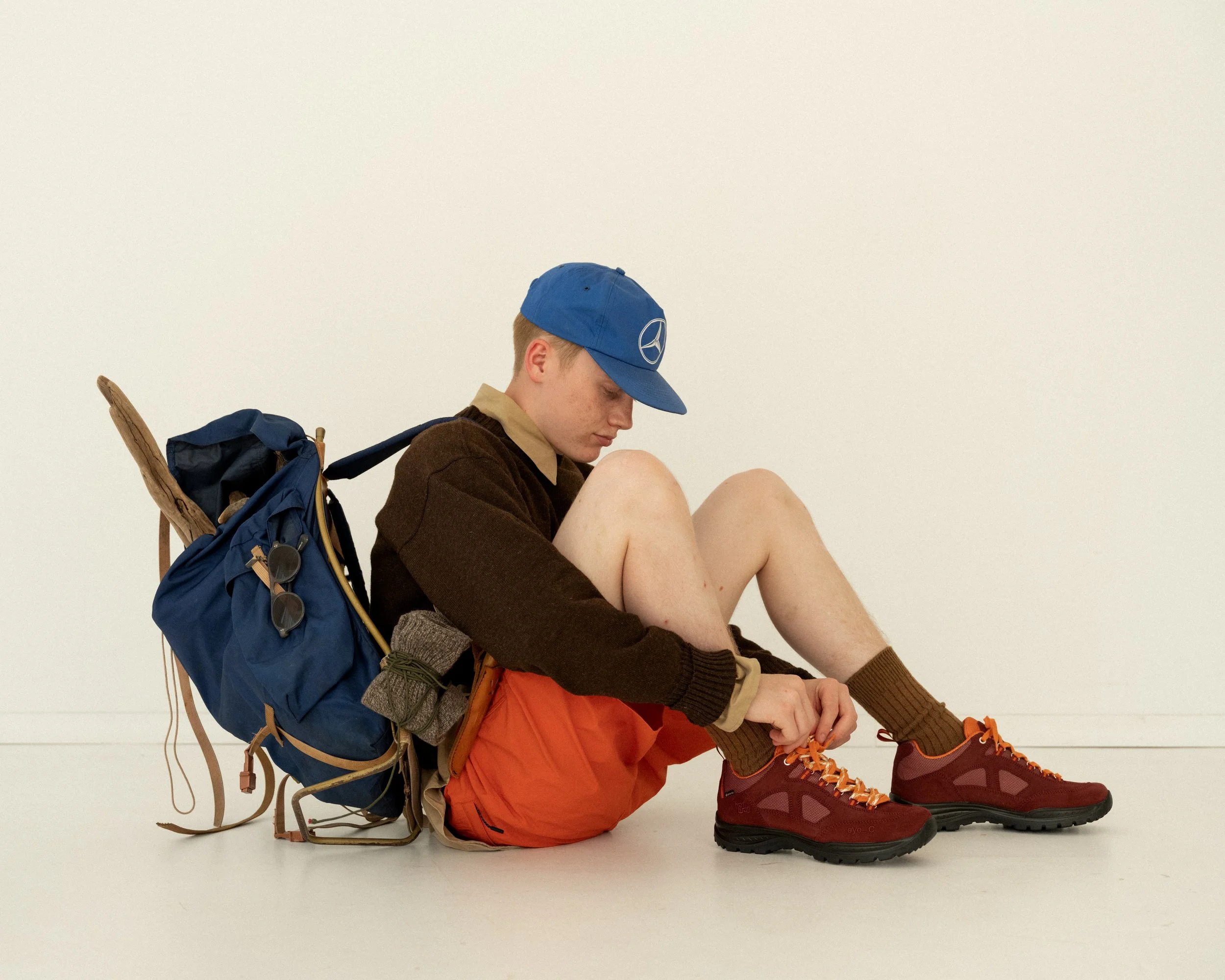 Following the limited debut of the ‘Camel’ colourway from eye_C’s Superstore pop-up last November, the Gritstone II returns here in two new colourways, Cyan Blue and Mulberry, alongside a reissue of the original colour. Blending technical precision with thoughtful design, eye_C’s redux of the Gritstone II GTX features updated design details, including silver D-ring eyelets, a utility-inspired heel loop, and stitched logos nodding to both collaborators. The upper is constructed from suede with mesh inserts, while a PFAS-free ePE GORE-TEX membrane offers waterproof breathability, and the Vibram Ultragrip II Kronplatz outsole ensures comfort and safety across various terrains. Webbing-mounted eyelets provide a secure fit without pressure on the foot, blending functionality with refined visuals. Together, Hanwag and eye_C communicate a shared appreciation for alpine heritage and refined design, imbuing this spirit into the Gritstone II GTX, a low hiker that is comfortable in the city and on the trails.