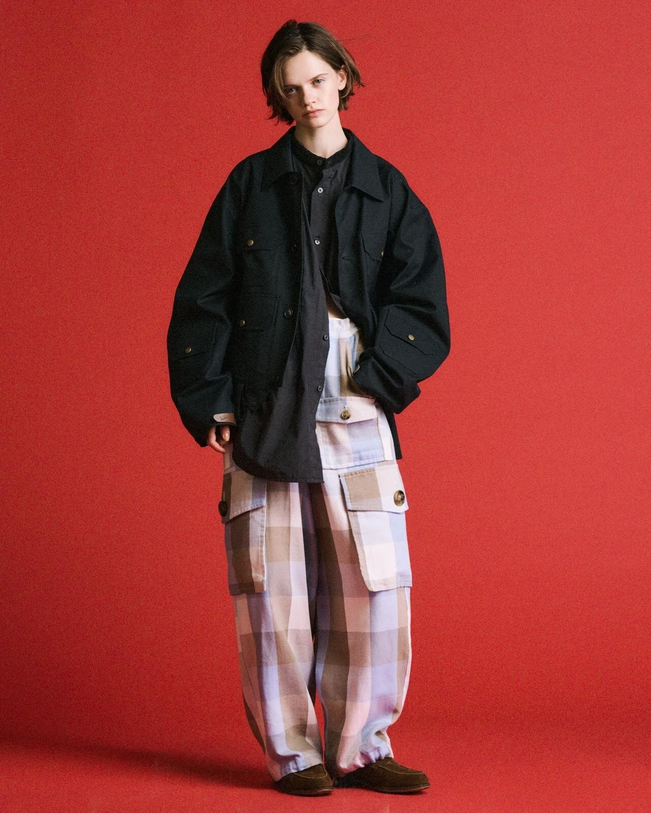 Woolrich’s rich archive serves as a never-ending source of inspiration, reimaging its designs and functionalities using modern technology and sensibilities. Engineered for versatile use in urban and outdoor settings, Spring/Summer ‘26 focuses on three main categories: hiking, camping, and fly fishing. This trickles down into cropped wading jackets, knee-length utility shorts, field jackets, selvedge denim jackets, and checkered cargo trousers. Nodding to traditional outdoor gear that is anything but drab and monotone, the colour palette reflects the season, featuring an abundance of blue, green, and yellow.