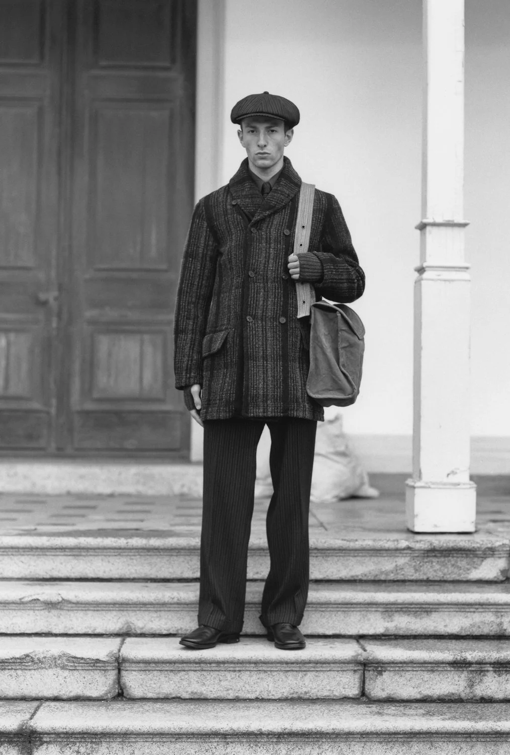 For Autumn/Winter ‘26, the offering ranges from knitwear to trousers, jackets to accessories, but their appearance and finish are anything but ordinary. Emphasis is placed on intricate details, from pocket and seam placements to the shape of knit gauge - all carefully chosen to reflect snow and postal worker uniforms, which are less referenced than workwear or military. Shot in black and white, the lookbook exudes a Victorian feel, mirroring the clothes themselves and revealing little about the subject’s surroundings, focusing instead on the key details mentioned above.