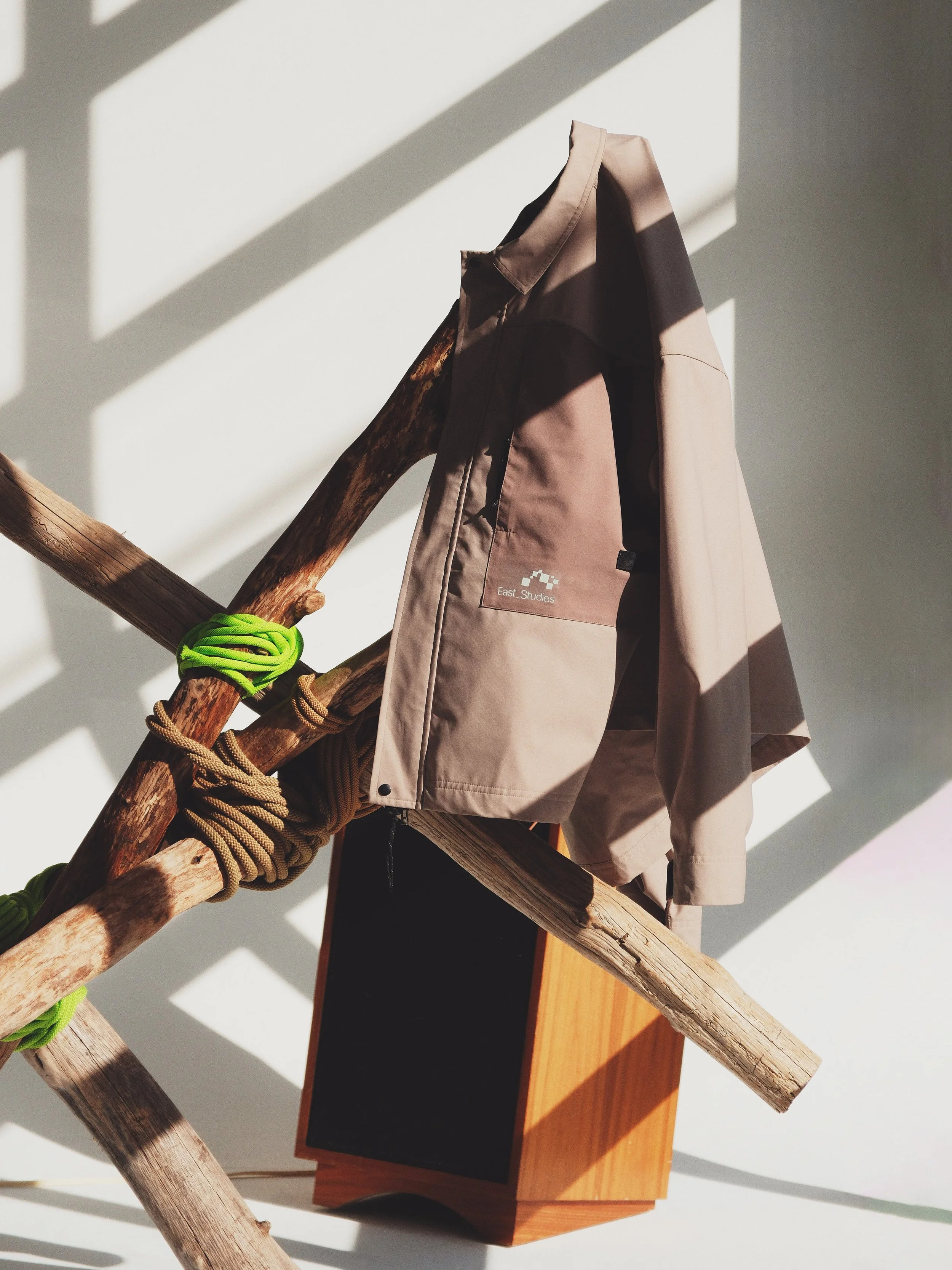 18 East and Earth\Studies come together for a three-piece capsule collection, marrying their conscientious design approaches. During the weaving process, it’s not uncommon for stray horse hair or similar materials to be woven directly into the fabric, especially when using analogue equipment, which can lead to quirks and breakdowns. Inspired by this, 18 East applies subtle modulations to three Earth\Studies garments: the wool ESCEP Jacket, the 3-layer Shift Jacket, and the ripstop Mountain Pant.