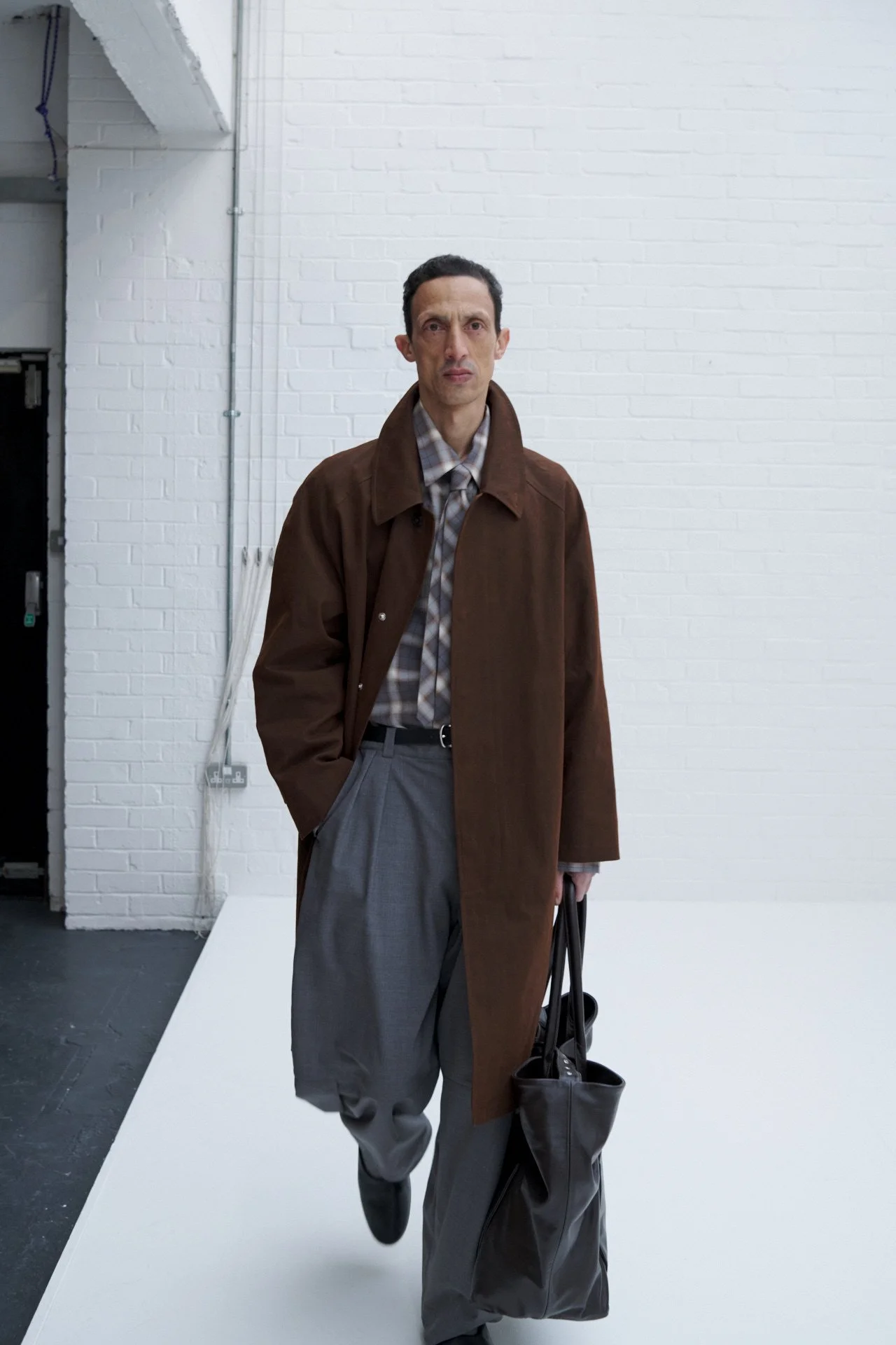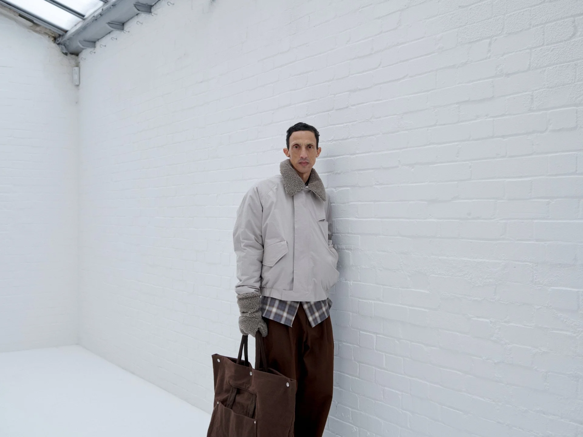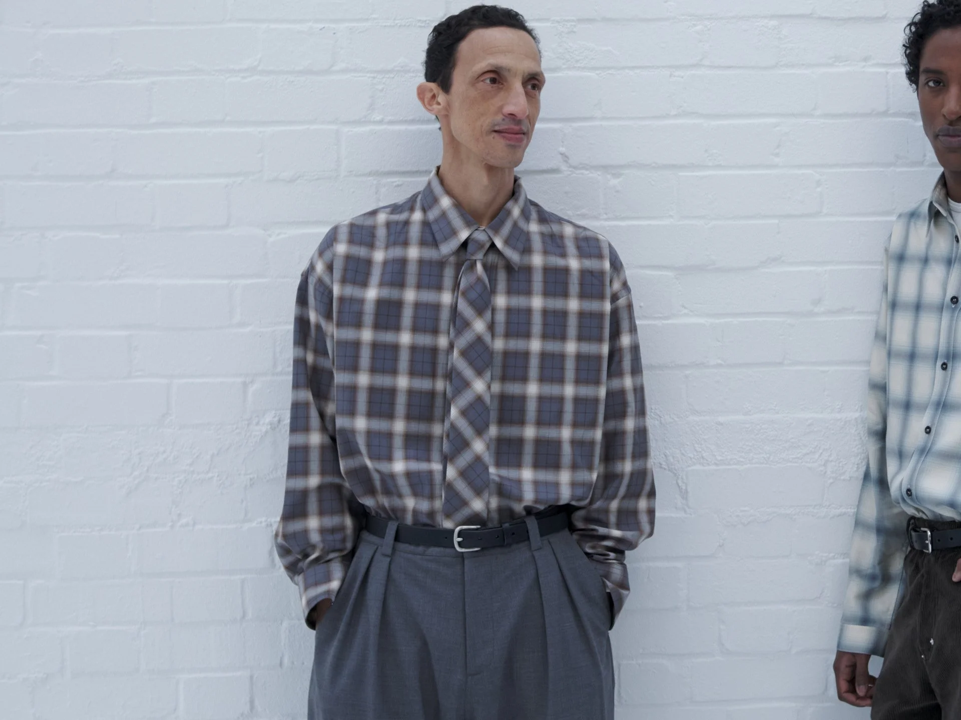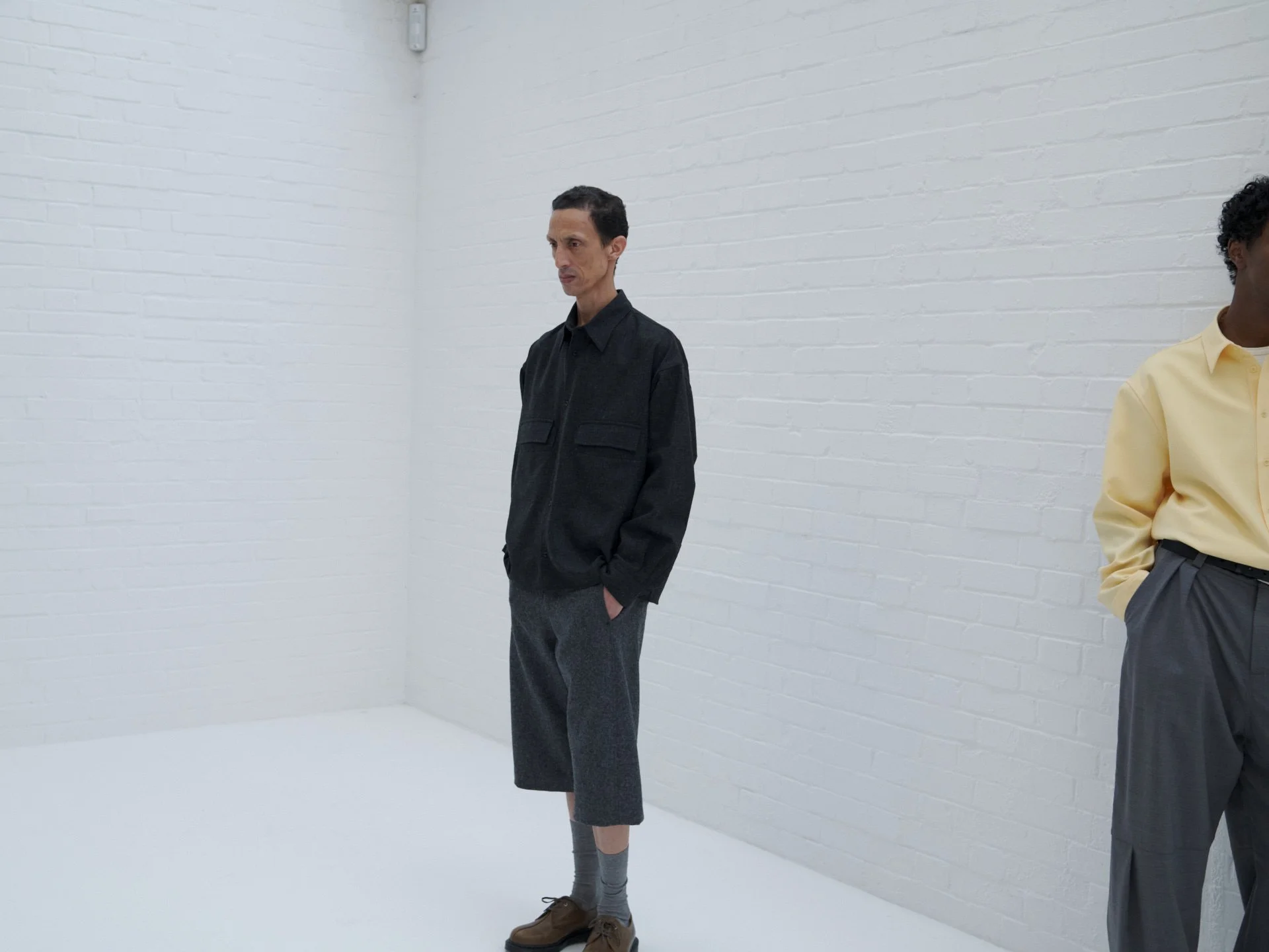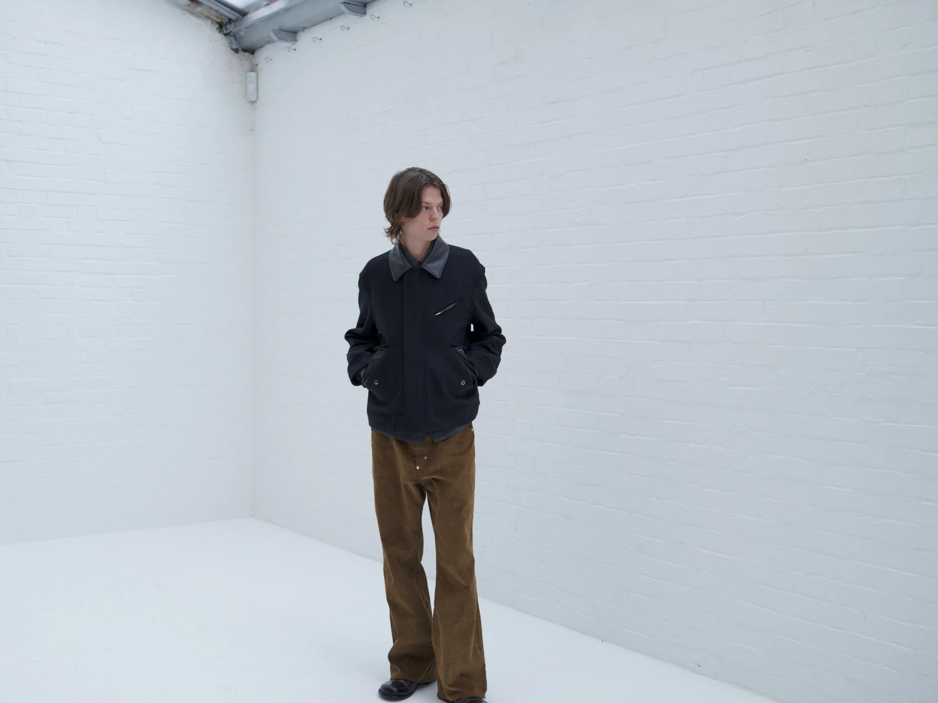 Instead of rapidly shifting its identity each season to match the industry’s relentless thum, SAGE NATION treats collections like pieces in a bigger puzzle: silhouettes are updated, fabrics are switched out, and new styles are welcomed into the fold. In line with expected conditions, the focus for Autumn/Winter ‘26 shifts from lightweight, airy shorts and shirting to heavier knitwear, structured legwear, abundant layers, warming coats, and a growing leather goods offering. This seasonal shift is reflected in the materiality and colour palette: wool and corduroy are favoured over natural cottons, and the ‘Power of Five’ is stripped back to neutral tones - brown, grey, yellow, black, and blue, more befitting of Autumn/Winter. Favourites include a button-up knitted cardigan with a stand collar, the fossil-decorated zip-up jackets, a field coat, and signature SAGE NATION legwear silhouettes.