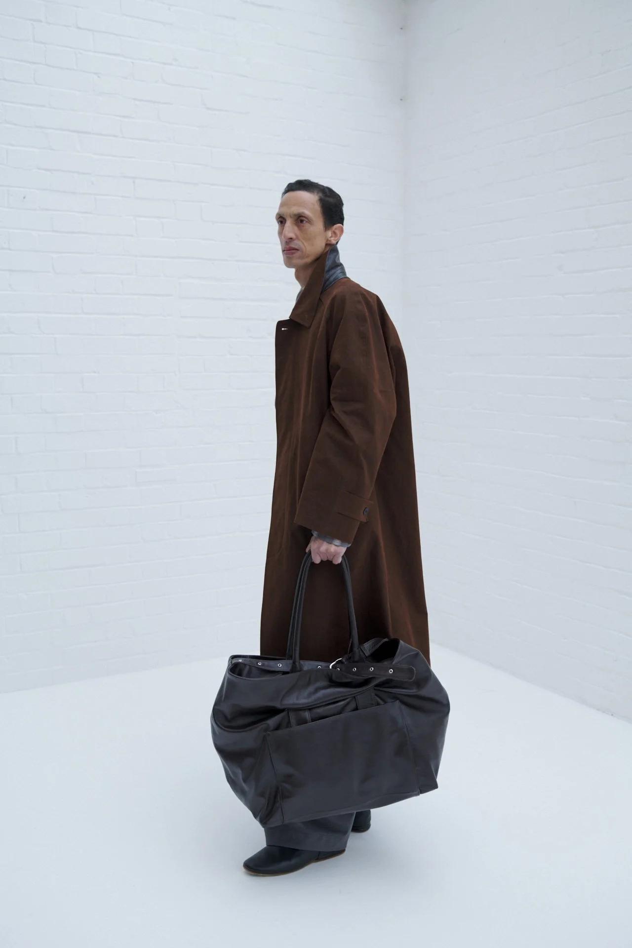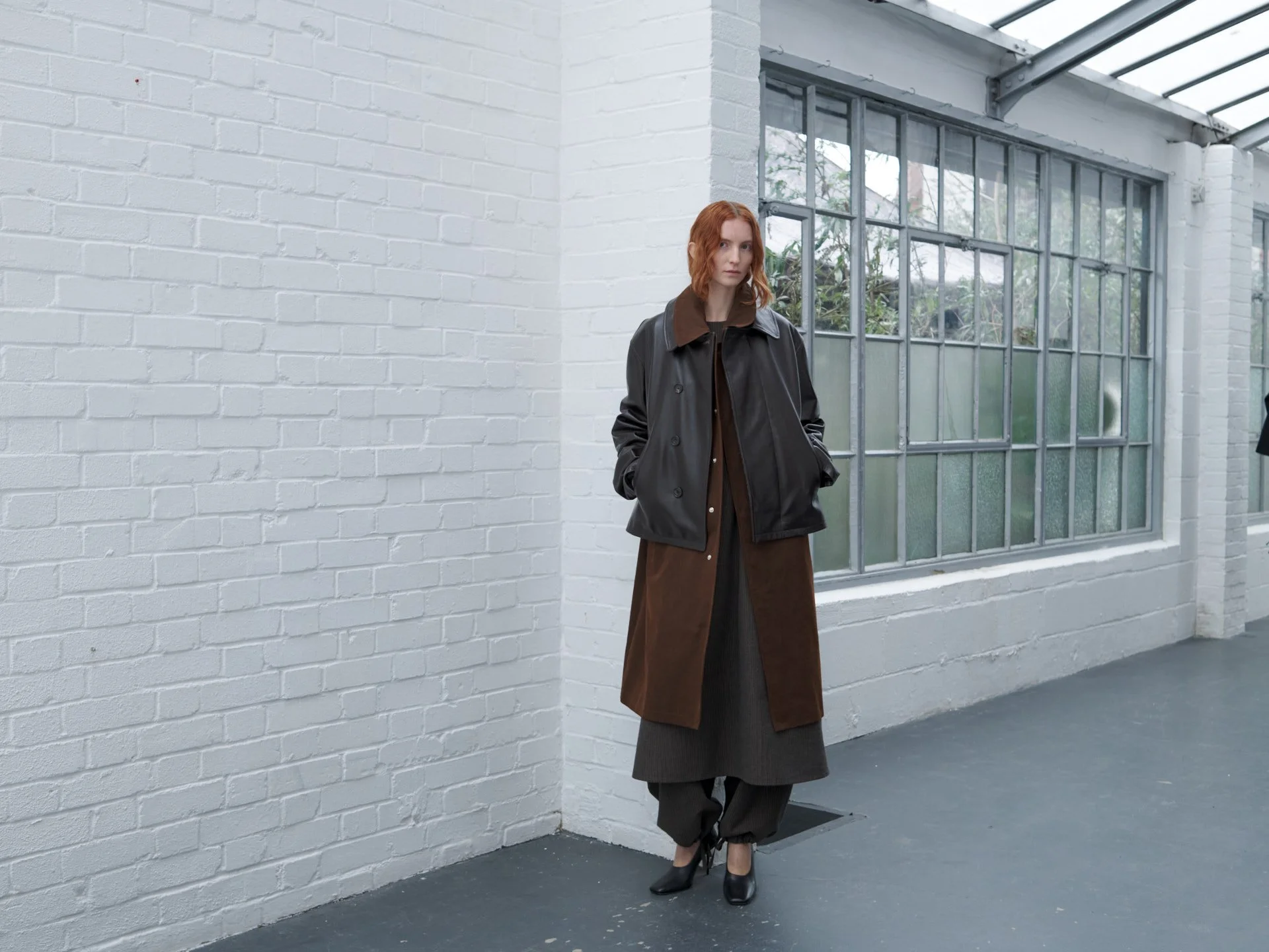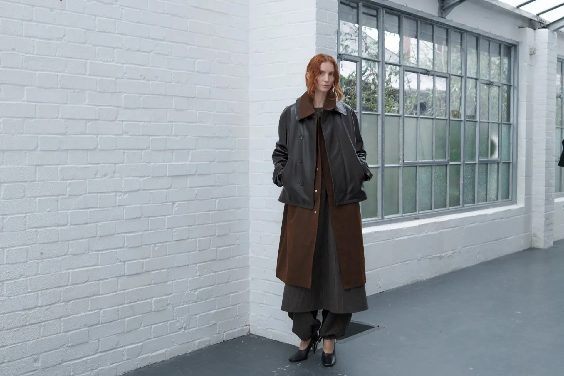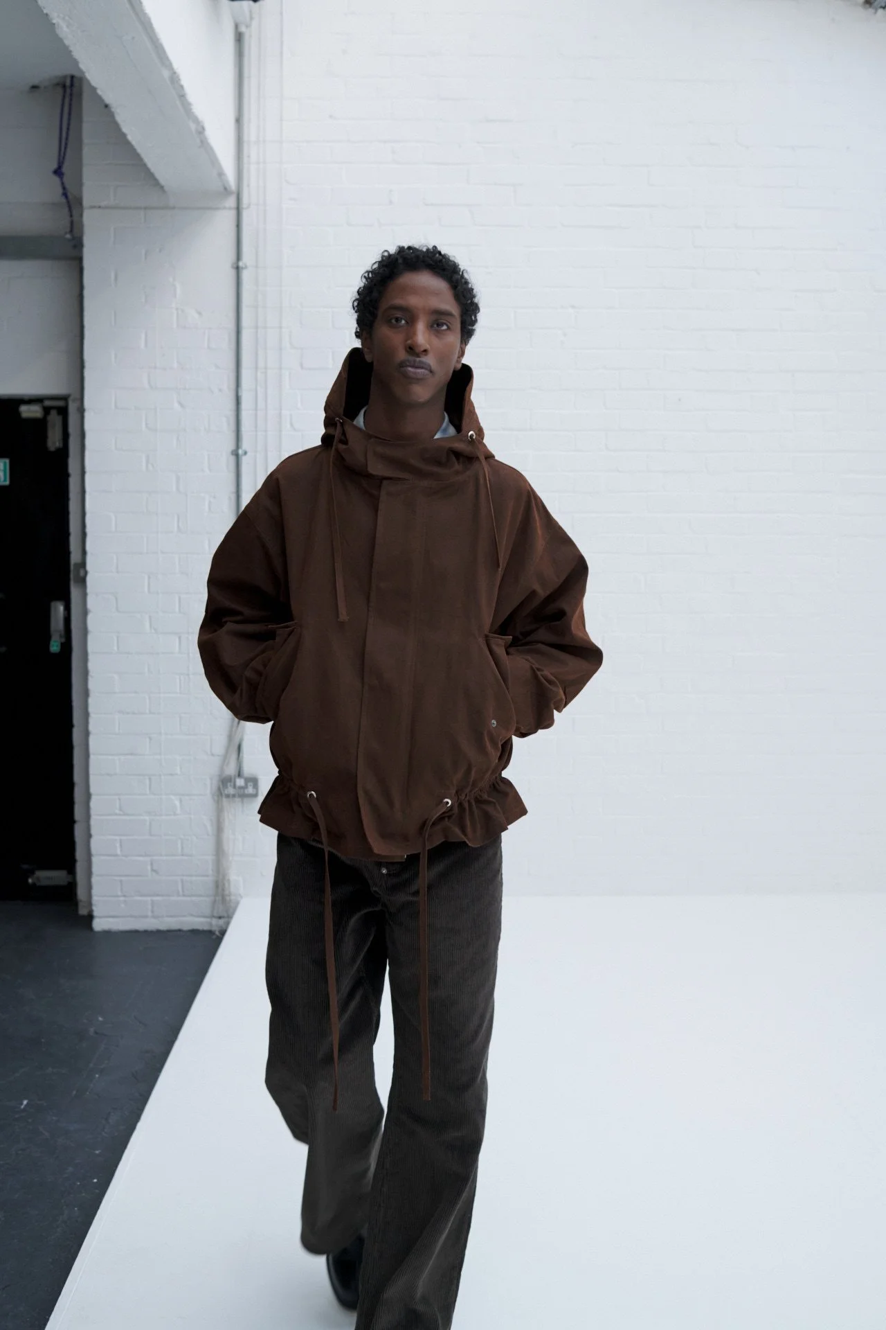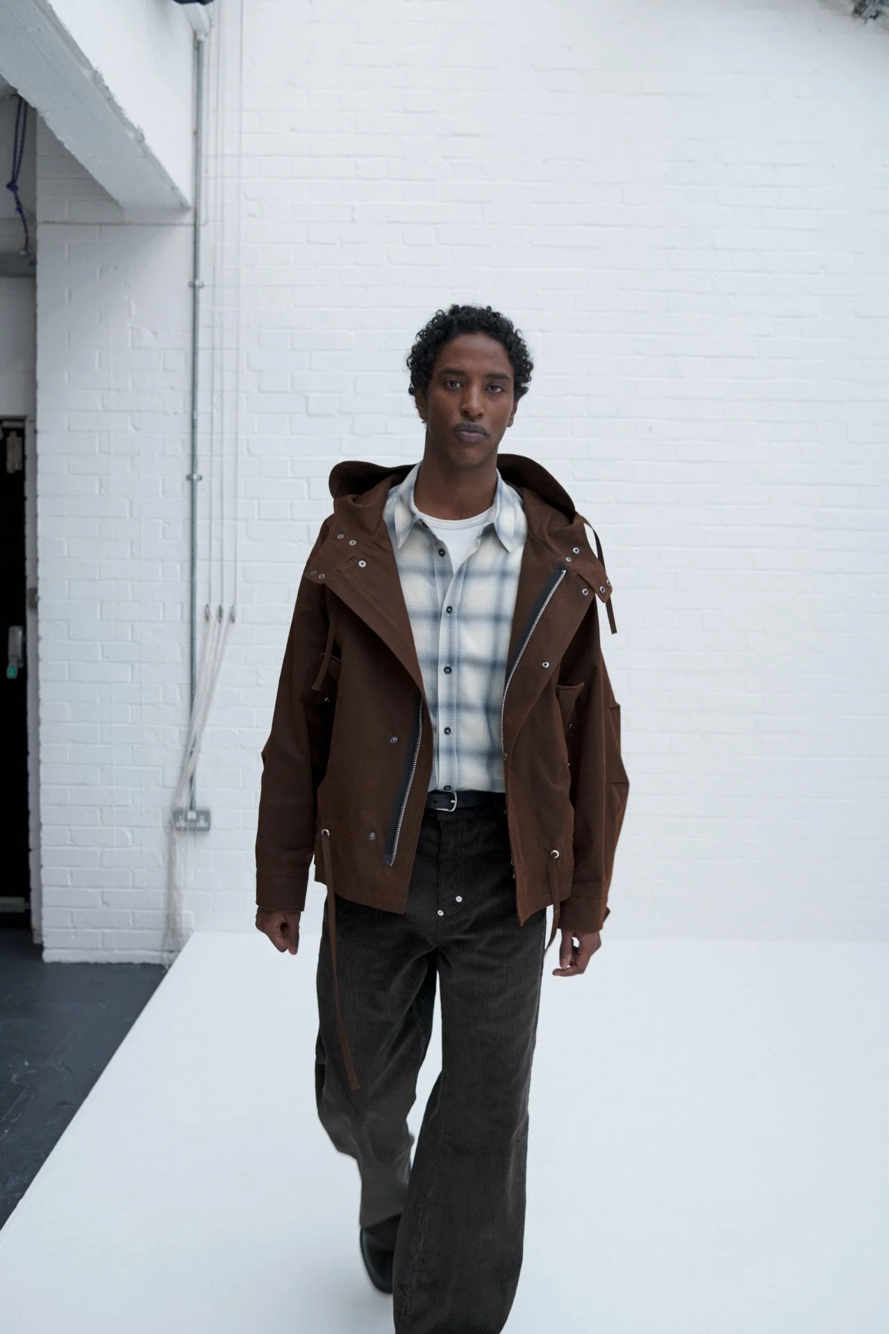 Instead of rapidly shifting its identity each season to match the industry’s relentless thum, SAGE NATION treats collections like pieces in a bigger puzzle: silhouettes are updated, fabrics are switched out, and new styles are welcomed into the fold. In line with expected conditions, the focus for Autumn/Winter ‘26 shifts from lightweight, airy shorts and shirting to heavier knitwear, structured legwear, abundant layers, warming coats, and a growing leather goods offering. This seasonal shift is reflected in the materiality and colour palette: wool and corduroy are favoured over natural cottons, and the ‘Power of Five’ is stripped back to neutral tones - brown, grey, yellow, black, and blue, more befitting of Autumn/Winter. Favourites include a button-up knitted cardigan with a stand collar, the fossil-decorated zip-up jackets, a field coat, and signature SAGE NATION legwear silhouettes.