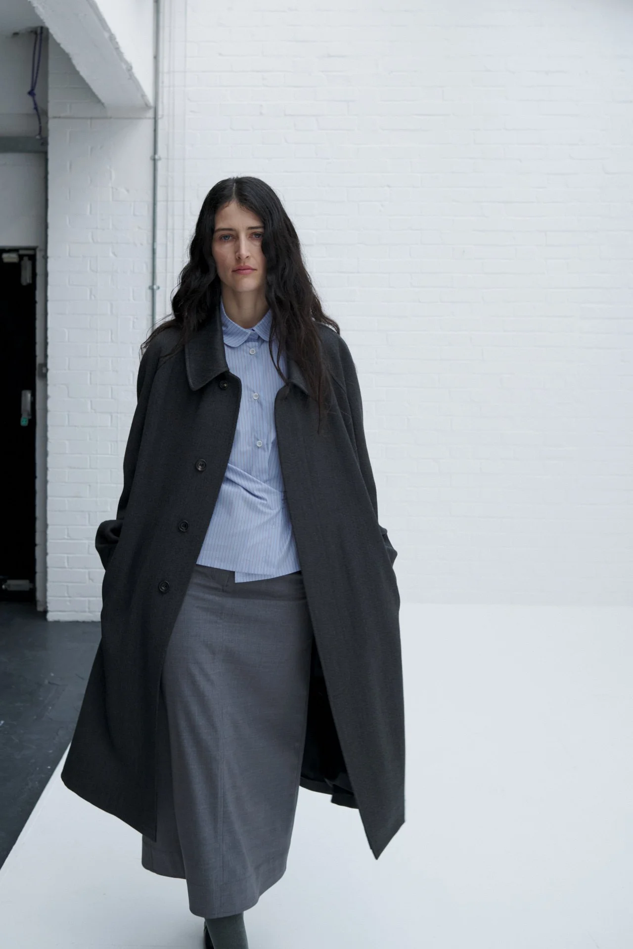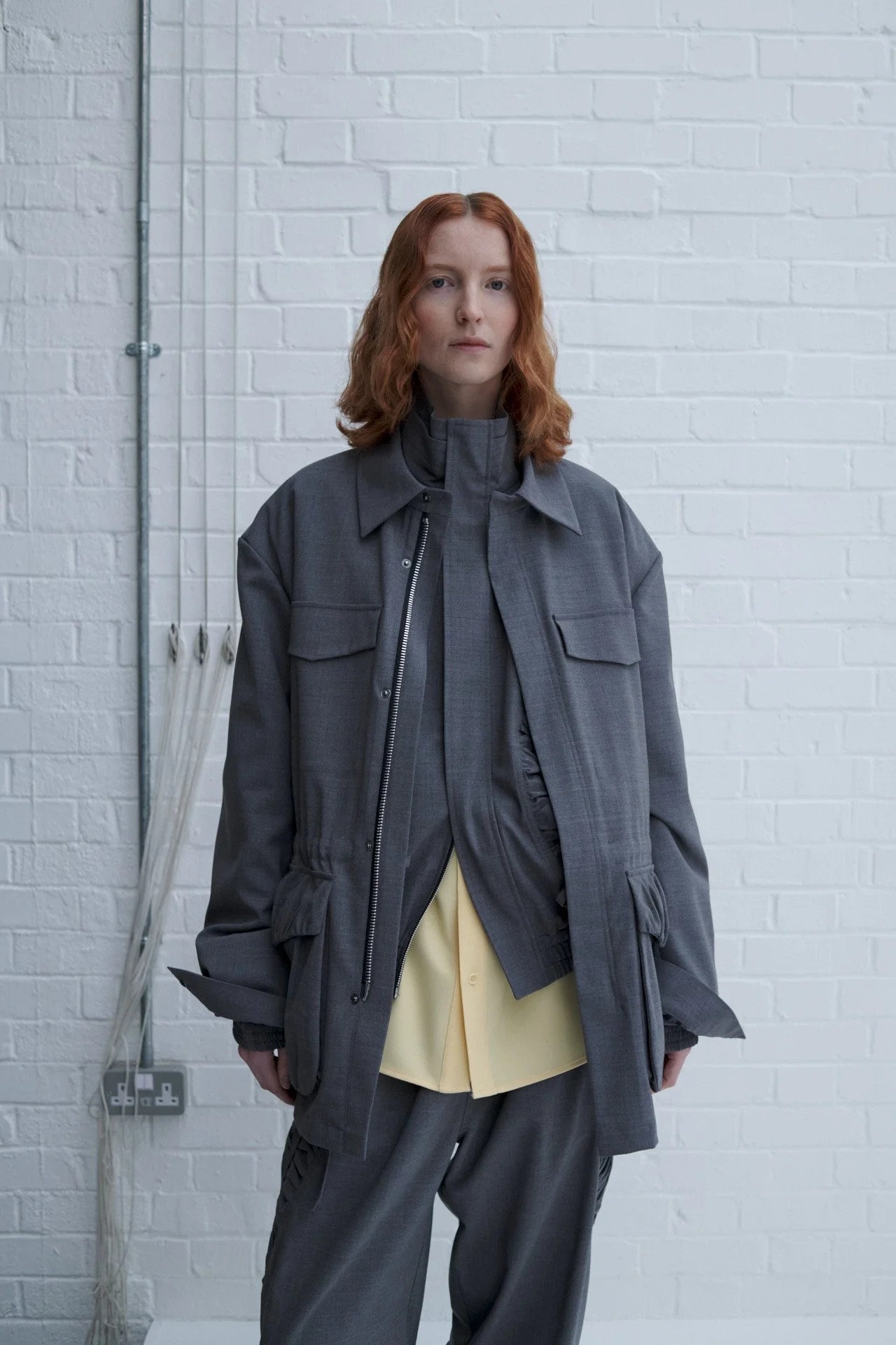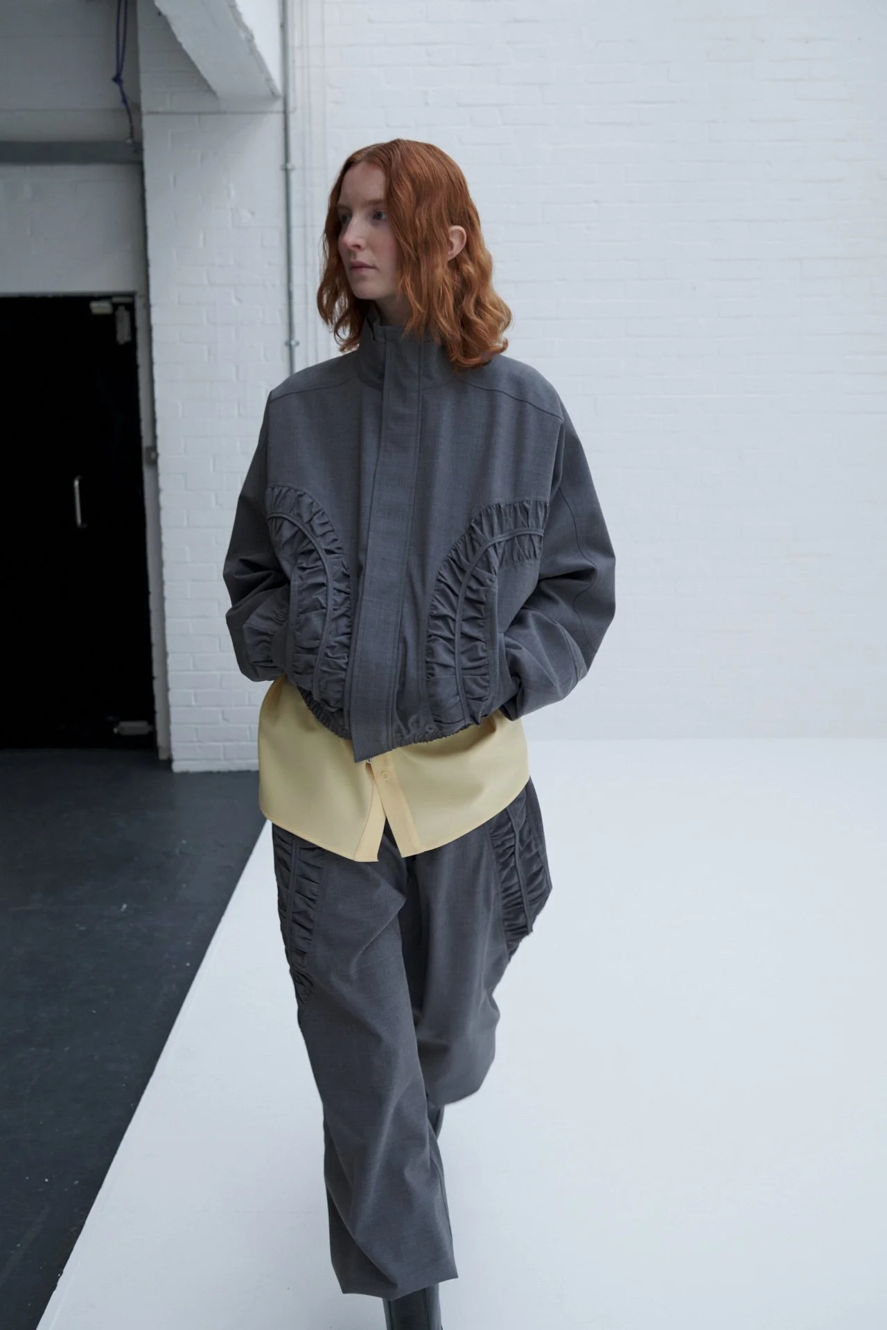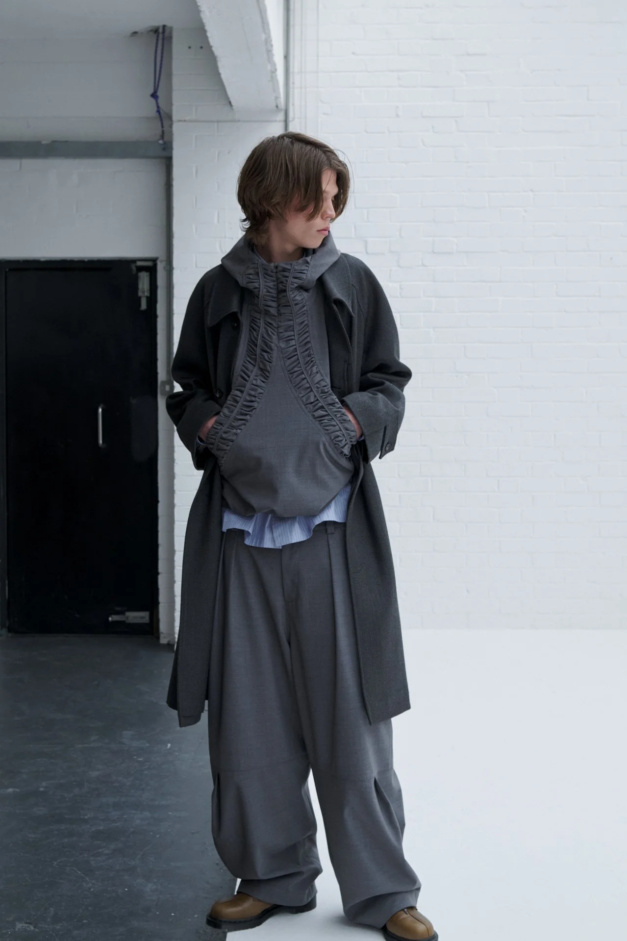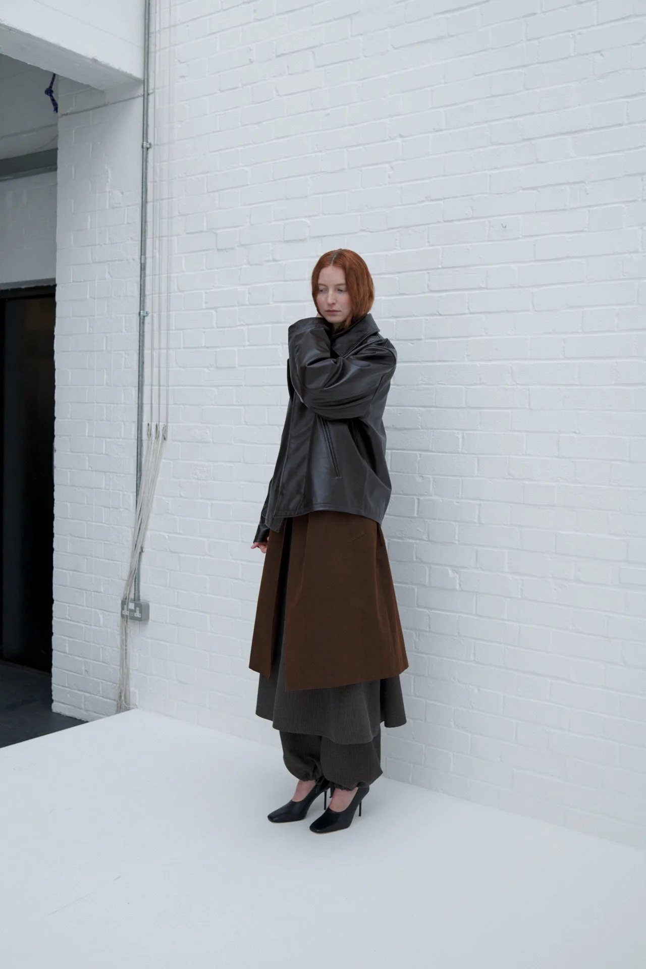 Instead of rapidly shifting its identity each season to match the industry’s relentless thum, SAGE NATION treats collections like pieces in a bigger puzzle: silhouettes are updated, fabrics are switched out, and new styles are welcomed into the fold. In line with expected conditions, the focus for Autumn/Winter ‘26 shifts from lightweight, airy shorts and shirting to heavier knitwear, structured legwear, abundant layers, warming coats, and a growing leather goods offering. This seasonal shift is reflected in the materiality and colour palette: wool and corduroy are favoured over natural cottons, and the ‘Power of Five’ is stripped back to neutral tones - brown, grey, yellow, black, and blue, more befitting of Autumn/Winter. Favourites include a button-up knitted cardigan with a stand collar, the fossil-decorated zip-up jackets, a field coat, and signature SAGE NATION legwear silhouettes.