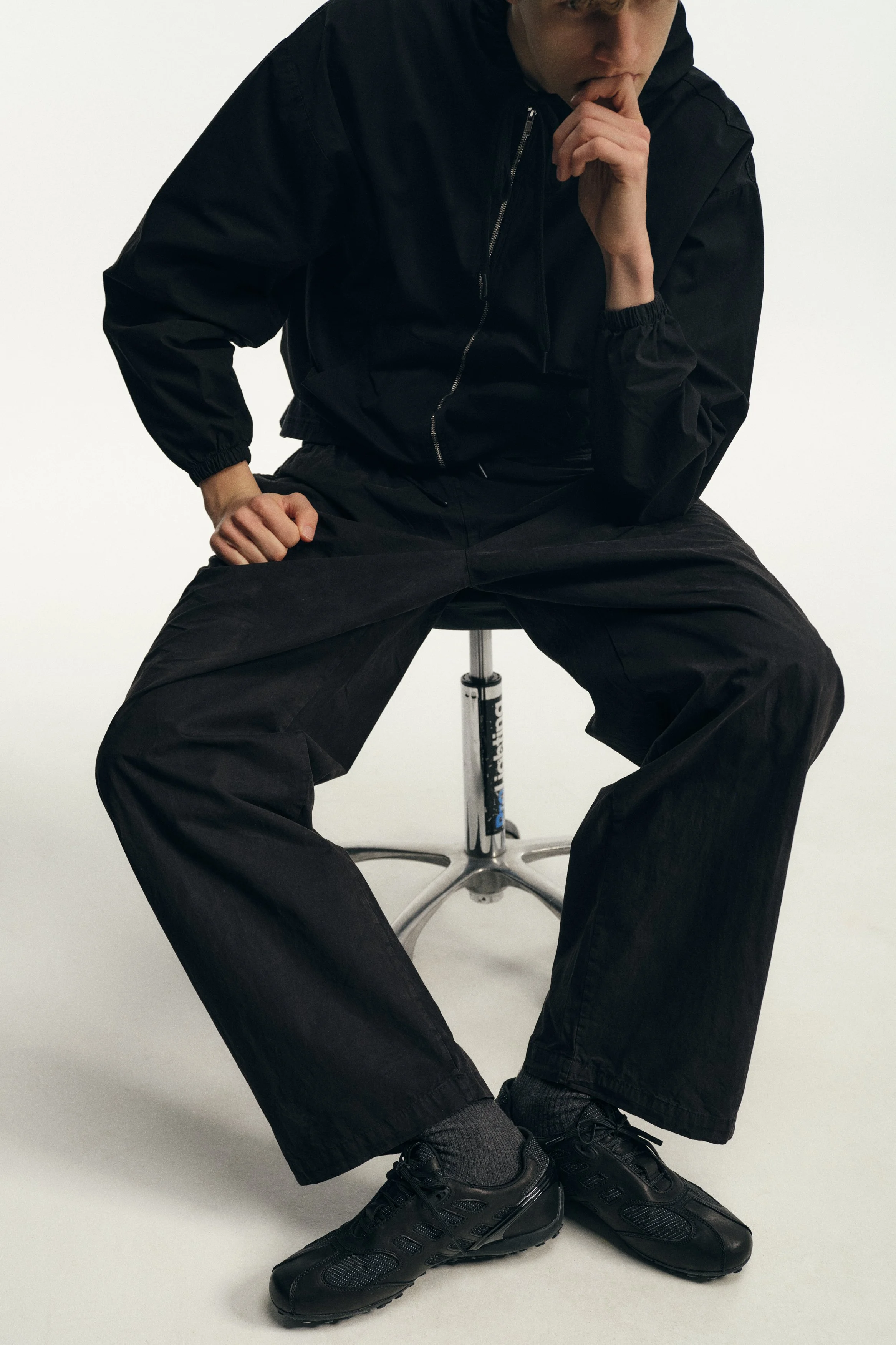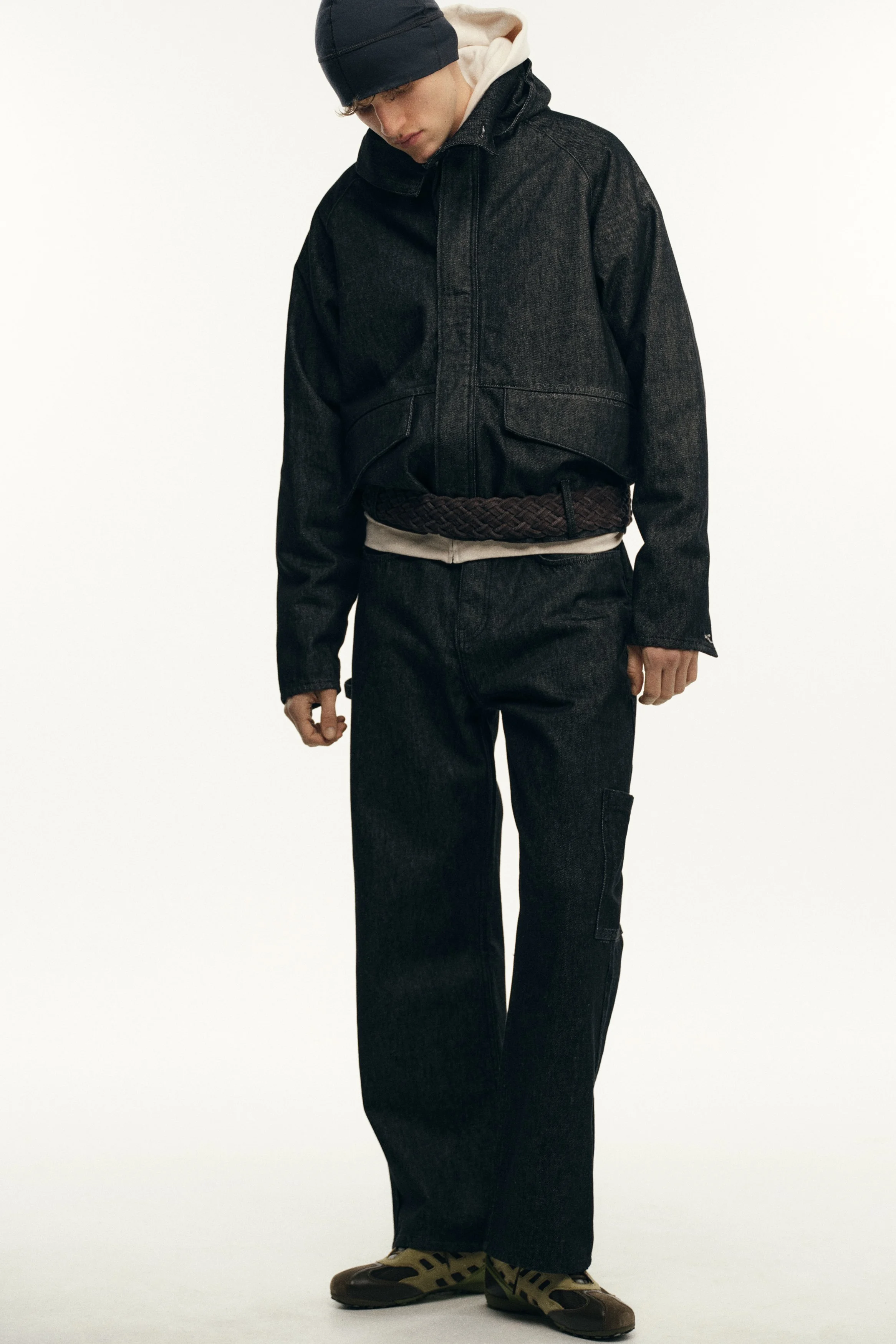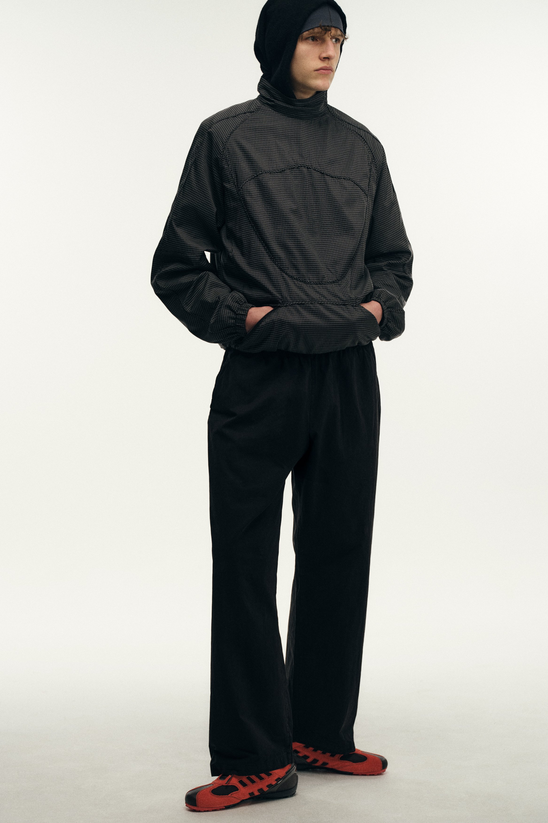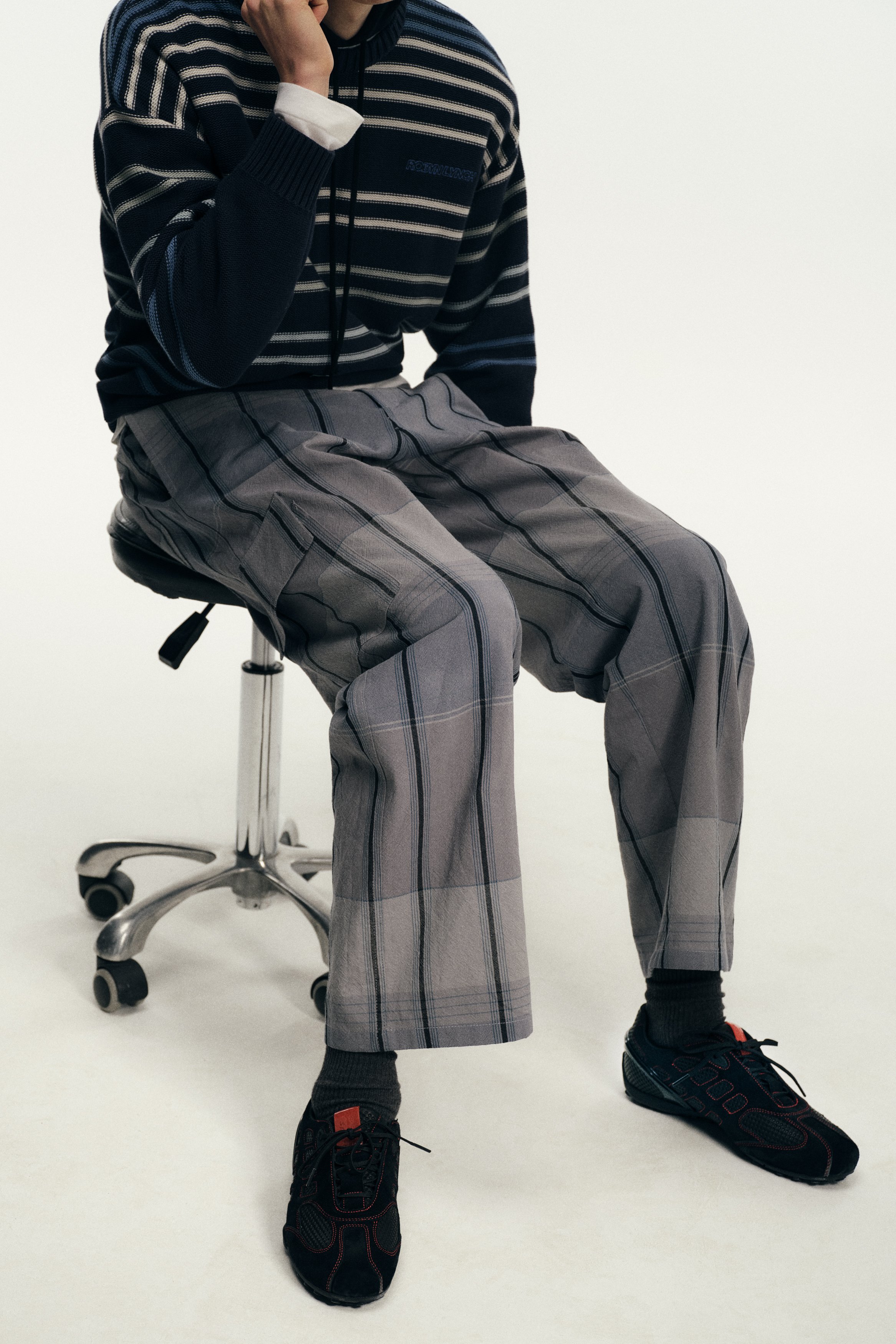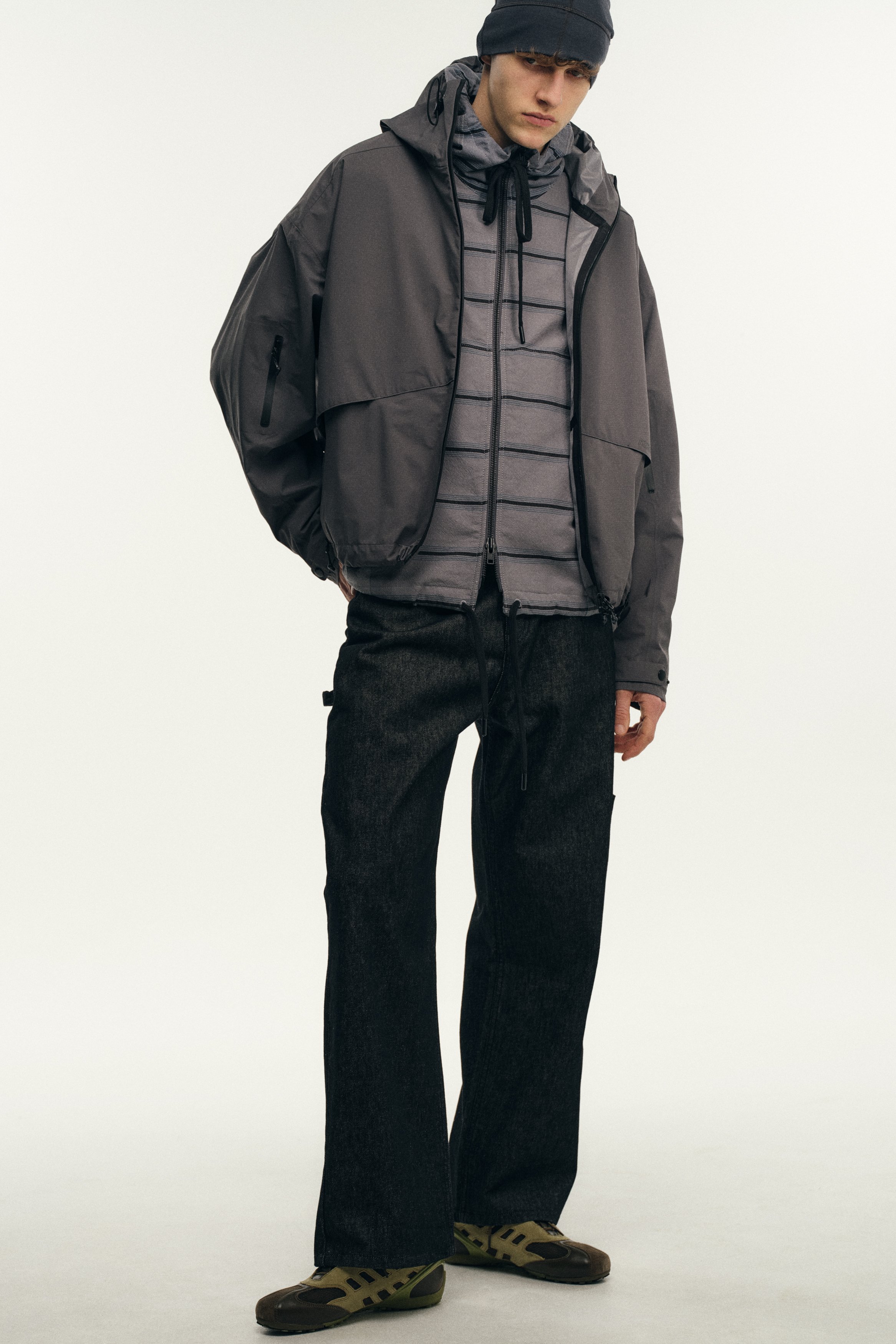 Founded in 2018 by the Dublin-born designer who lends her name to the brand, Robyn Lynch explores themes of identity, community, and sport, distilling them into seasonal collections. Autumn/Winter ‘26 is built on the foundations of Lynch’s personal wardrobe, returning to familiar shapes and refining them through fabric, proportion, and detail. Here, the priority becomes comfort and versatility, shaping a collection that can be worn in the studio, to college, and for drinks with friends, while fitting into the Robyn Lynch universe. Sports jerseys, graphic tees, functional raincoats, cable knit jumpers, jeans, and footwear nod to the past while looking to the future. Graphics are reappropriated from vintage bootlegs, tourist merchandise, and subcultural references, such as ‘License to Kildare’ - a mash-up of License to Kill and Kildare, a county - and Dublin Vision, taking cues from souvenir shops around Temple Bar. Denim is treated with worn washes to give a sense of familiarity and age. Texture and rhythm emerge through stripe patterns inspired by vintage knitwear. Technical outerwear evolves through considered panel lines and practical construction. The collection is presented alongside the latest Geox collaboration, seamlessly integrating performance footwear into Robyn Lynch’s wardrobe.