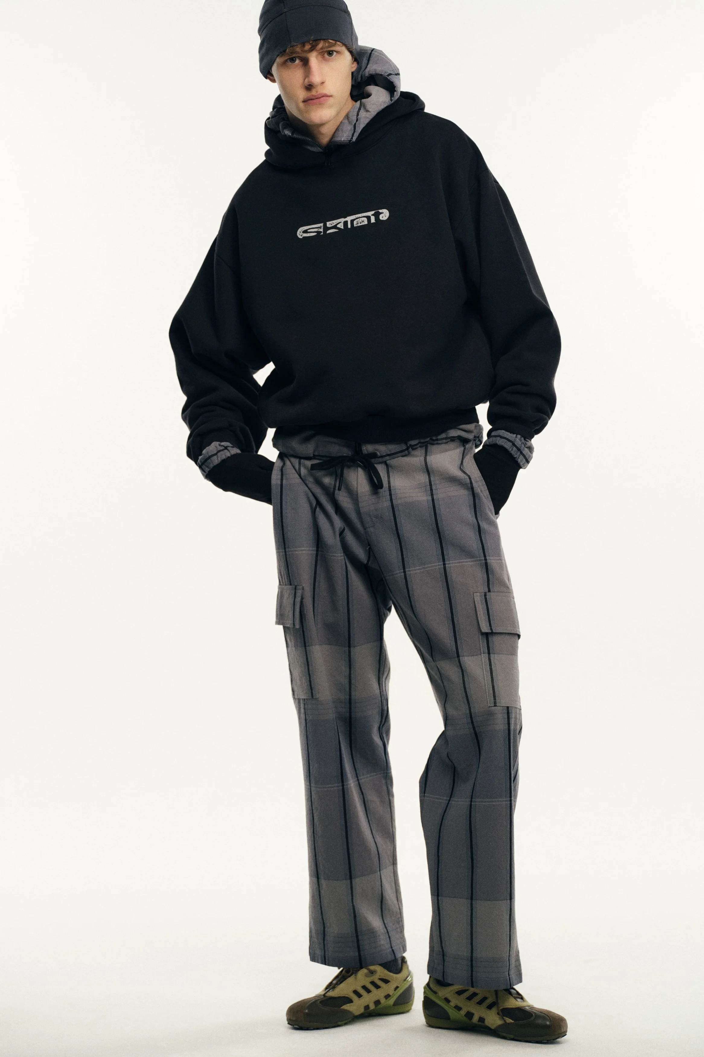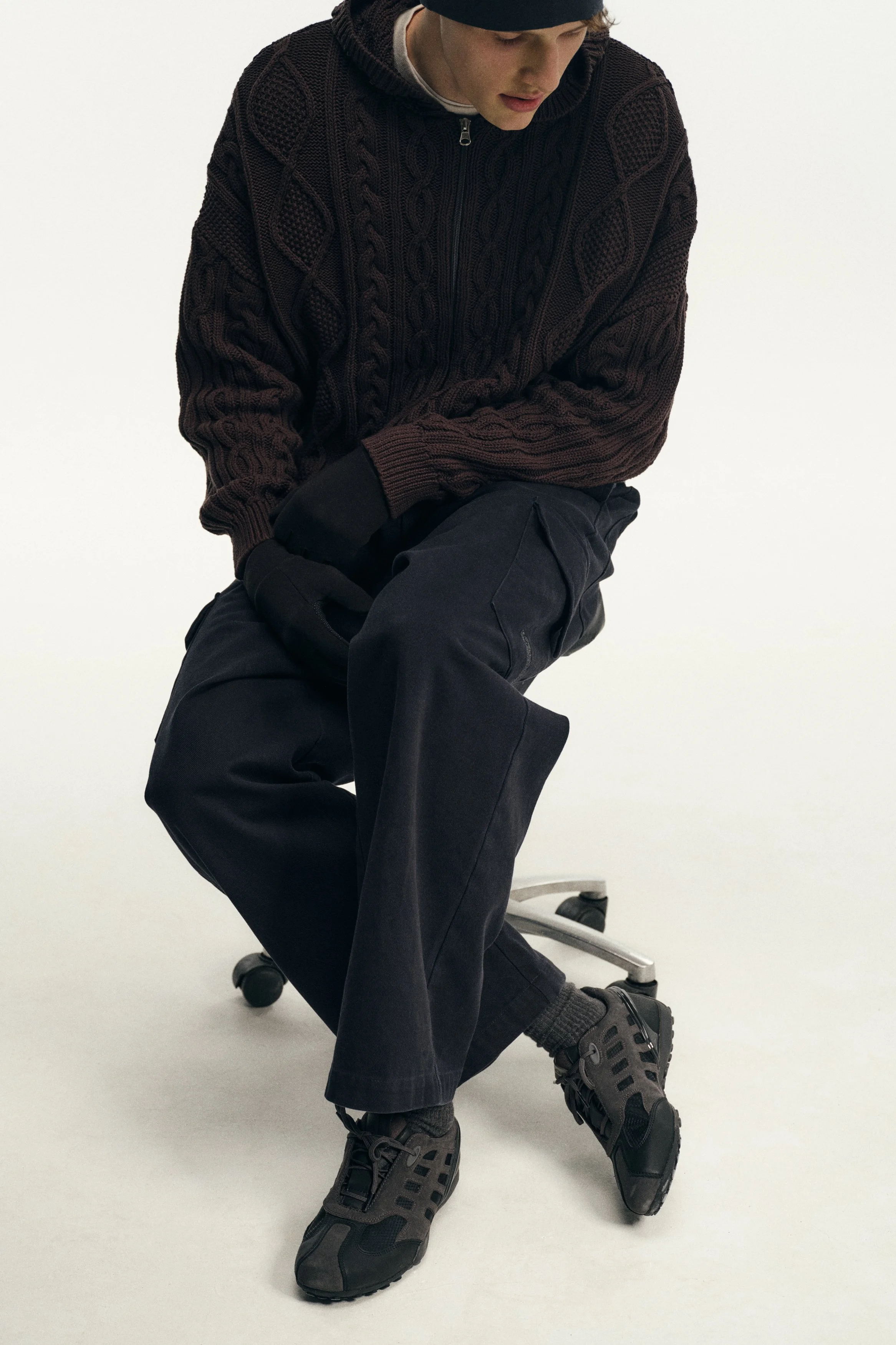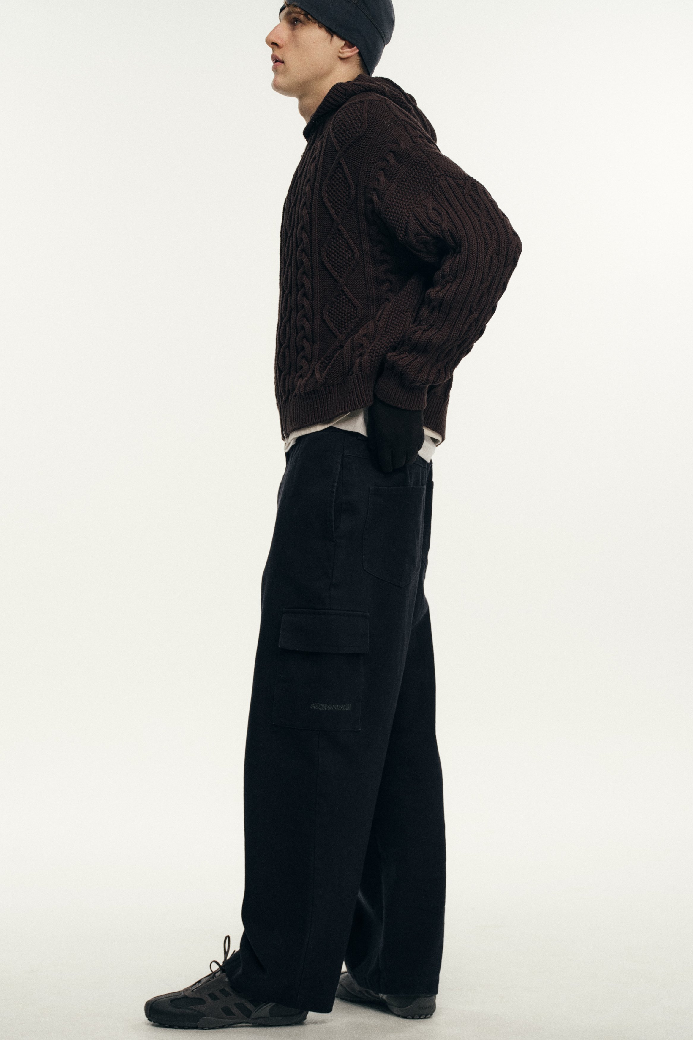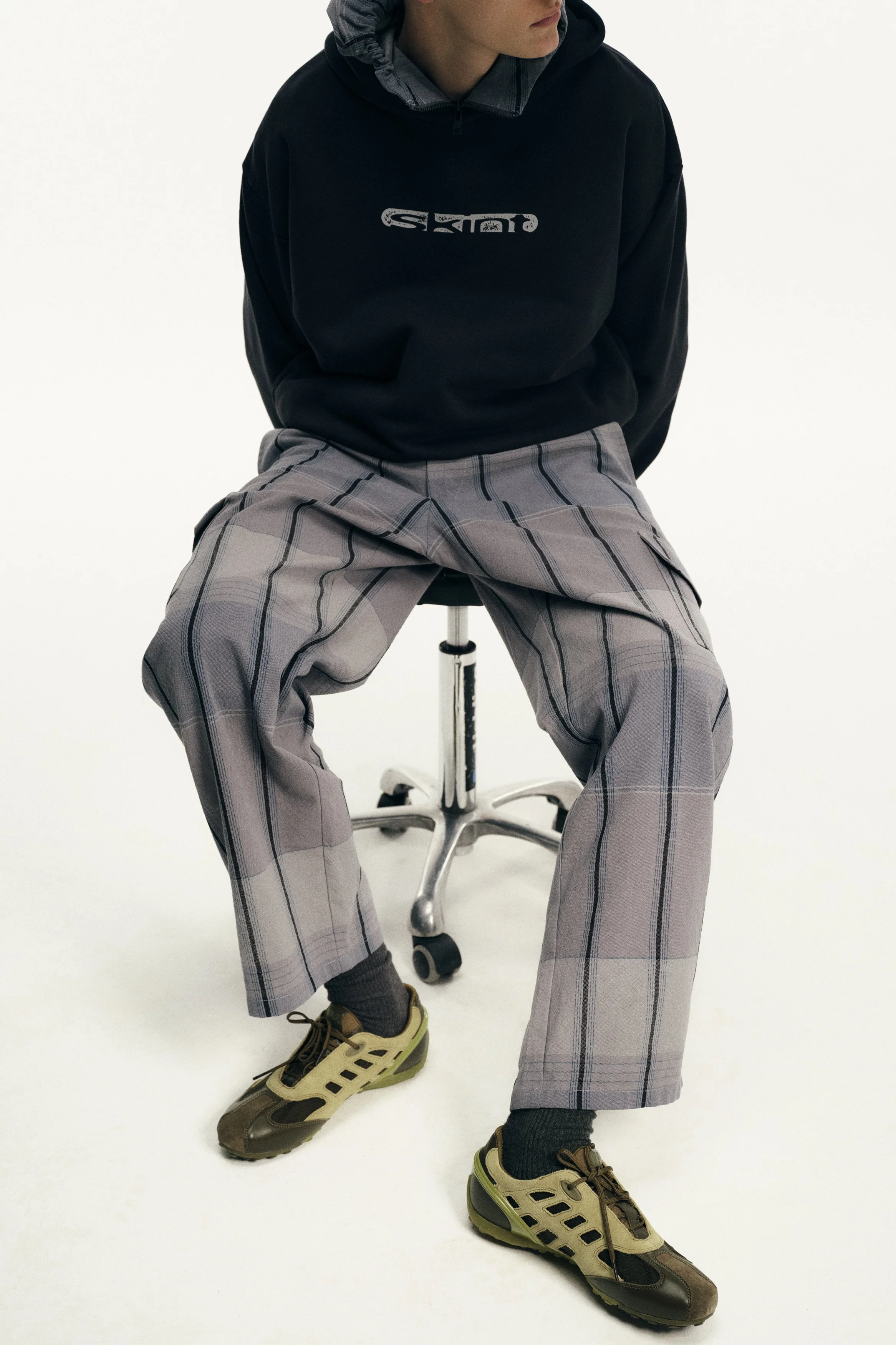Founded in 2018 by the Dublin-born designer who lends her name to the brand, Robyn Lynch explores themes of identity, community, and sport, distilling them into seasonal collections. Autumn/Winter ‘26 is built on the foundations of Lynch’s personal wardrobe, returning to familiar shapes and refining them through fabric, proportion, and detail. Here, the priority becomes comfort and versatility, shaping a collection that can be worn in the studio, to college, and for drinks with friends, while fitting into the Robyn Lynch universe. Sports jerseys, graphic tees, functional raincoats, cable knit jumpers, jeans, and footwear nod to the past while looking to the future. Graphics are reappropriated from vintage bootlegs, tourist merchandise, and subcultural references, such as ‘License to Kildare’ - a mash-up of License to Kill and Kildare, a county - and Dublin Vision, taking cues from souvenir shops around Temple Bar. Denim is treated with worn washes to give a sense of familiarity and age. Texture and rhythm emerge through stripe patterns inspired by vintage knitwear. Technical outerwear evolves through considered panel lines and practical construction. The collection is presented alongside the latest Geox collaboration, seamlessly integrating performance footwear into Robyn Lynch’s wardrobe.
