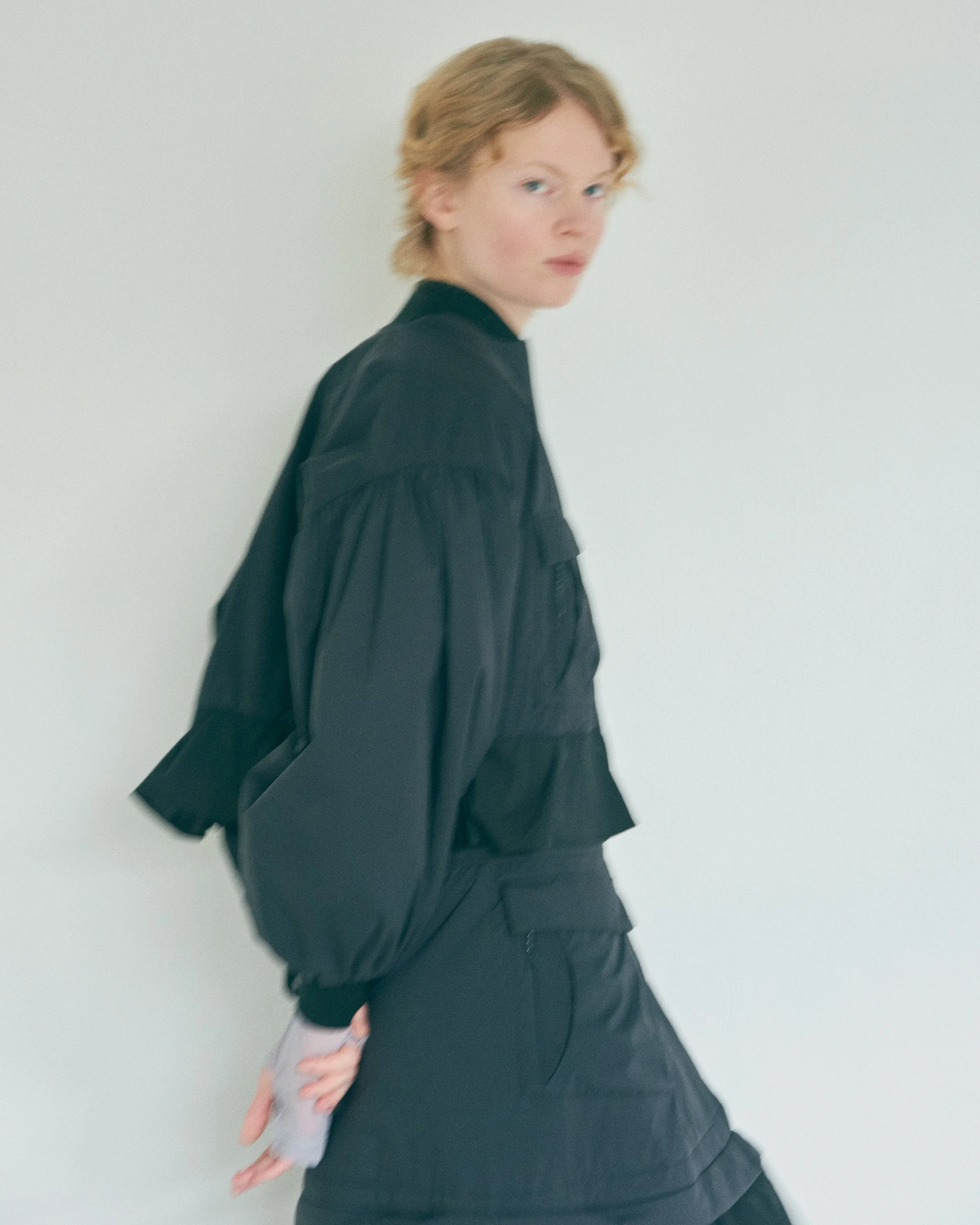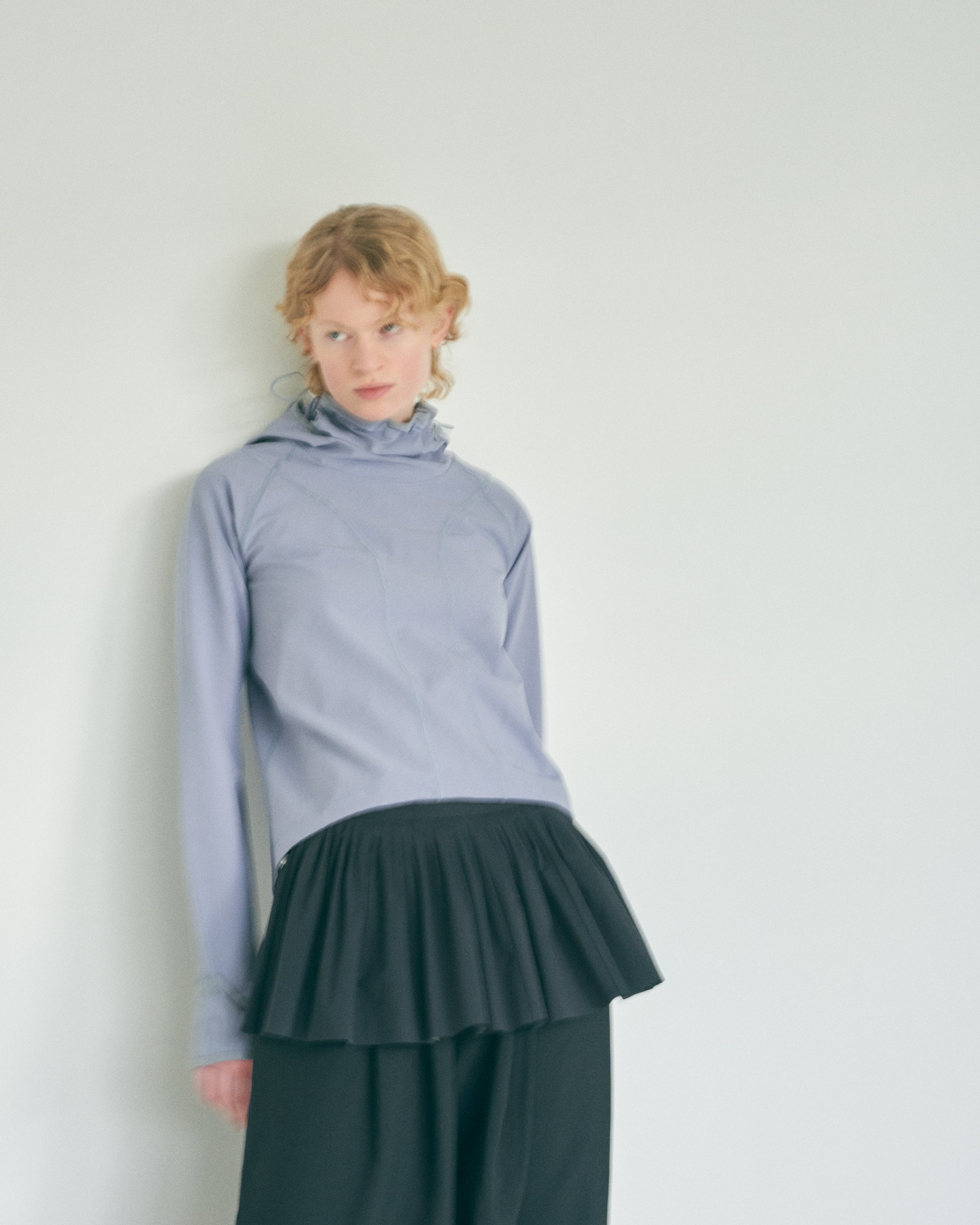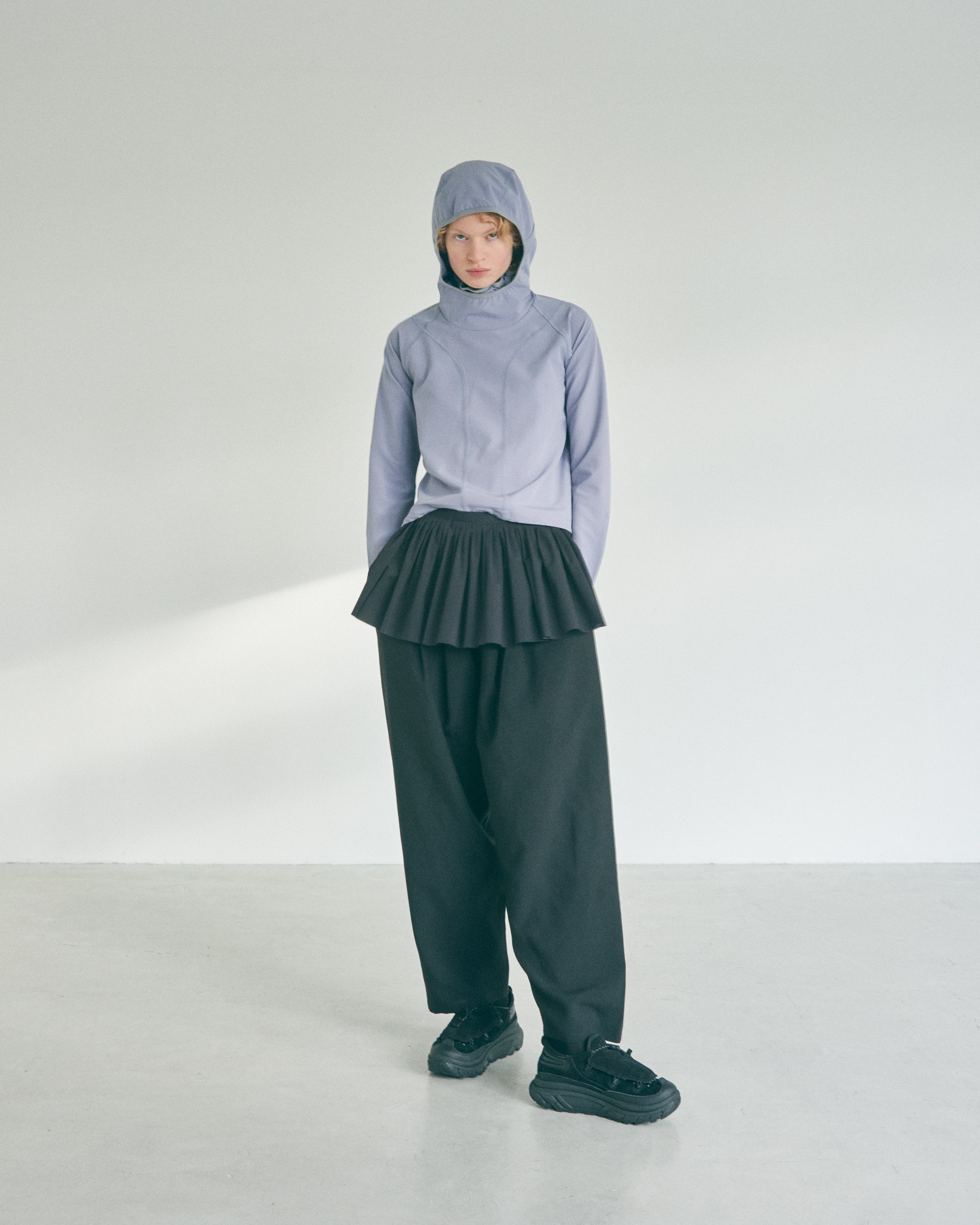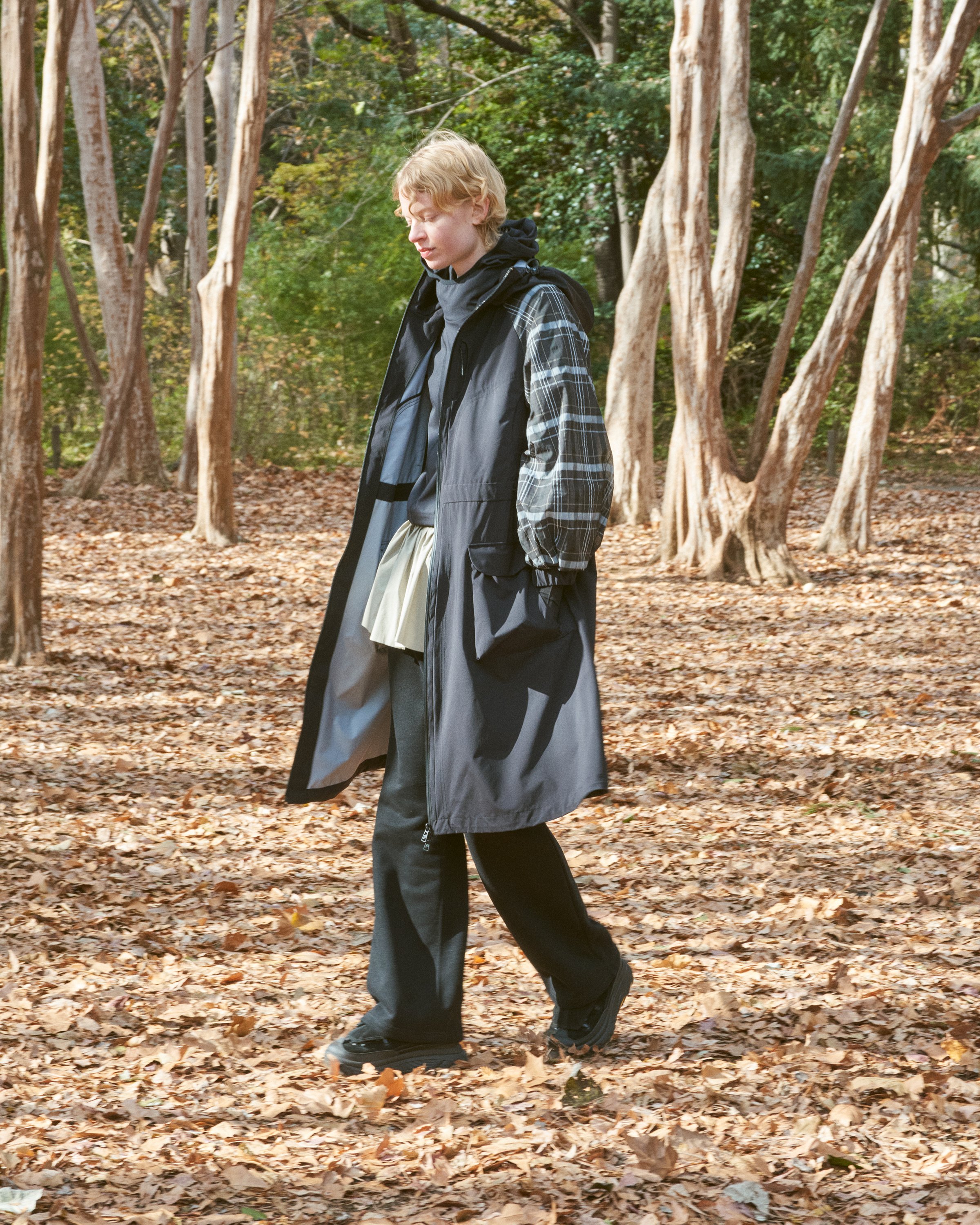 Following the same theme as its menswear line, ‘WREKONIZE’, a concept coined by F/CE. combining wreck and recognise, this philosophy finds vision in destruction and clarity in rebirth. Typically feminine silhouettes are reworked by F/CE’s principal designers, Satoshi Yamane and Asami Yamane, through a performance lens. Skirts, dresses, blouses, and jackets are built with the female body in mind, combining technical materials with daintier touches, like ruched edges and sheer fabrics. Movement is given great importance, allowing the modern woman to move through cities and outdoor areas as they choose - on foot or by bike.