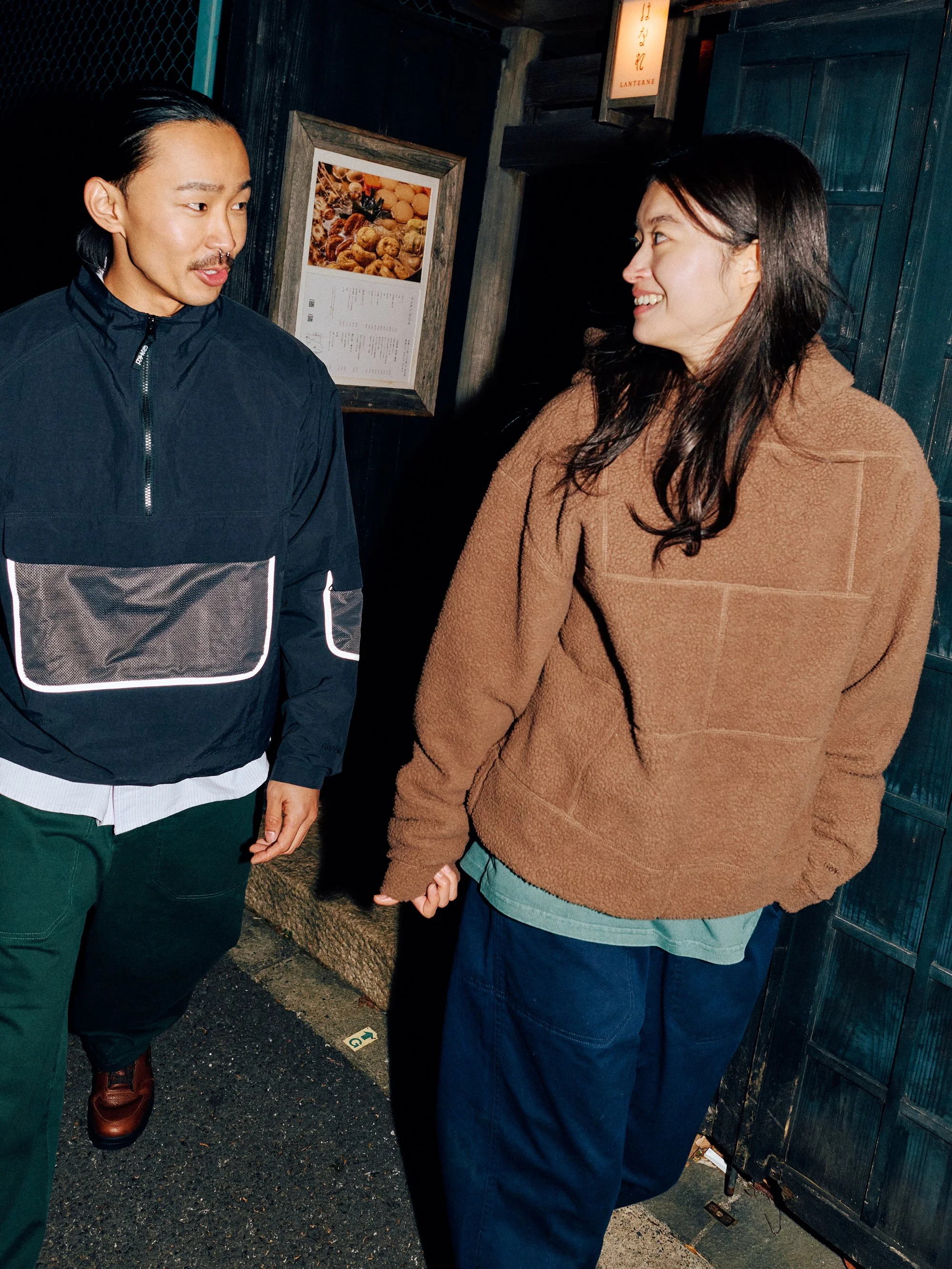 Together, the duo brings Gramicci’s iconic, long-standing silhouettes into alignment with the design language of all-weather brand ALWAYTH, resulting in a comprehensive lineup of eight styles. Co-branded sweatshirts, twill climbing trousers, fleece hoodies, and lightweight nylon jackets are just some of the headliners, followed by a cap, fleece pants, two graphic short-sleeved t-shirts and one long-sleeve. A whimsical and romantic campaign, shot in Tokyo, is produced to coincide with the collection.