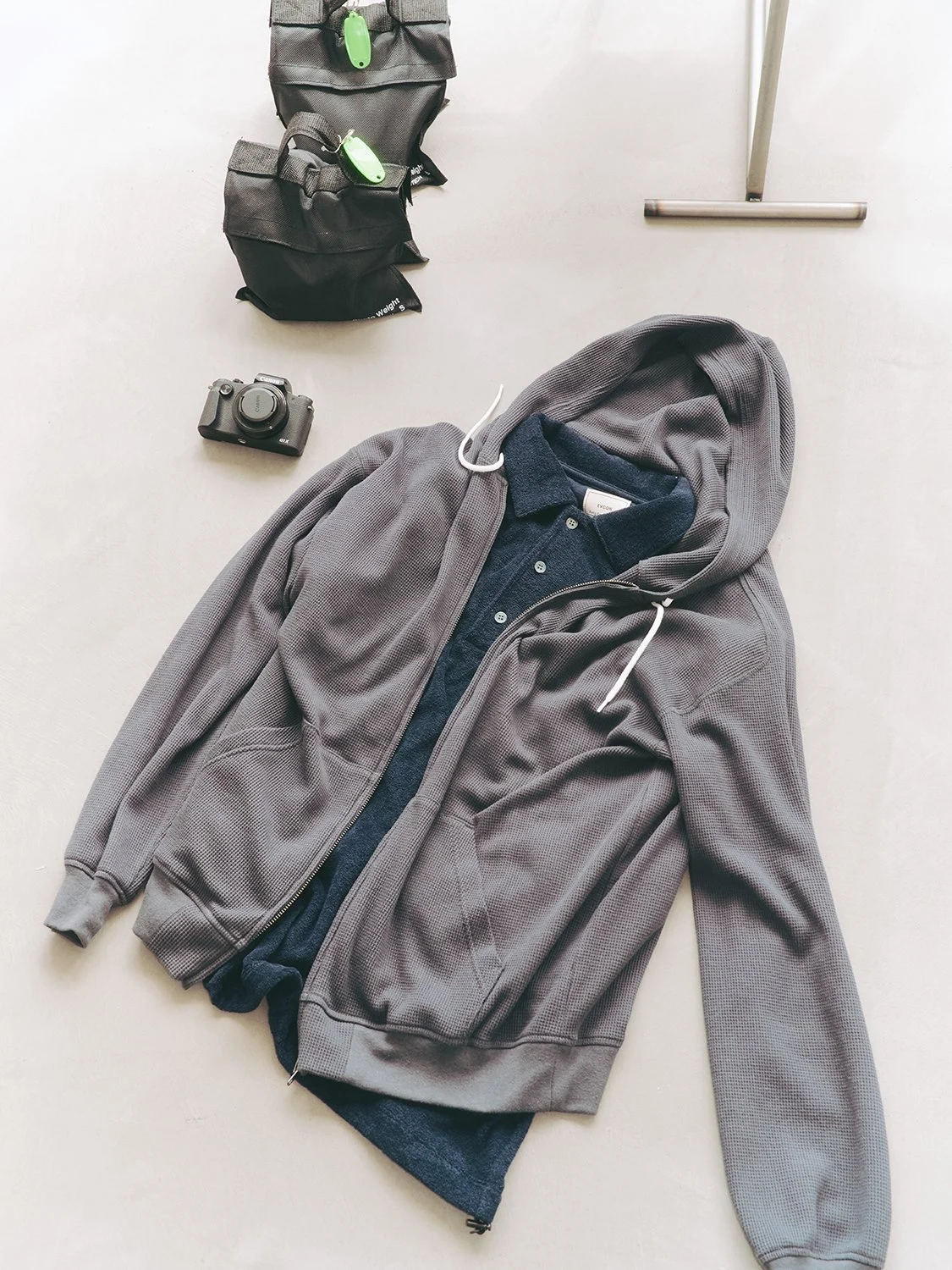 Defined by the idea of creating clothing for ‘everyday life’, EVCON offers an elevated take: versatile silhouettes reinvented with innovative materials, colours, and textures. The collection collates styles across outerwear, accessories, trousers, sweatshirts, shirting, and tops. Tailored to the season, garments are naturally lighter and airier in form, construction, and colour, with pastel-inspired hues of orange, pink, green, and blue. Favourites include the Seersucker Shirt, 1-Tuck Easy Slacks, Border Wide L/S Tee, and Nylon Drizzler Jacket.