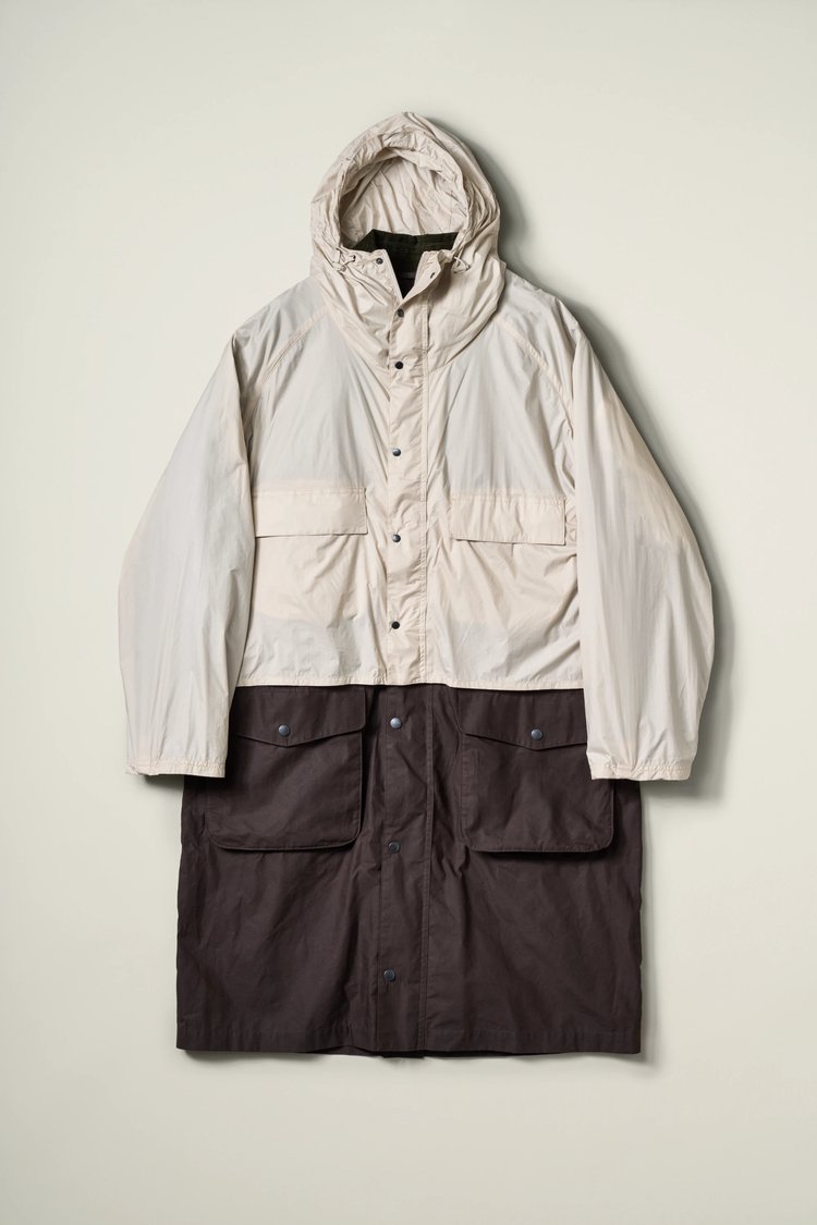 Marking the third time the duo has linked up, they have created two styles inspired by the practicality of maritime workwear, the very principles on which Barbour was built in 1894. Culminating in two outerwear styles, first we look at the Transport Smock - a pullover blouson made from dry wax cotton - inspired by the Transport Jacket from 2000, with a detachable vest. Next, the Endurance Coat is a reconstructed version of the same nomenclature from the early 90s, featuring a layered blouson that can be worn independently and propels the garment into the collaborative universe of Barbour and KAPTAIN SUNSHINE. Despite their heritage-indebted origins, care has been taken to ensure they are useful every day while maintaining character through archive-inspired details and materiality.